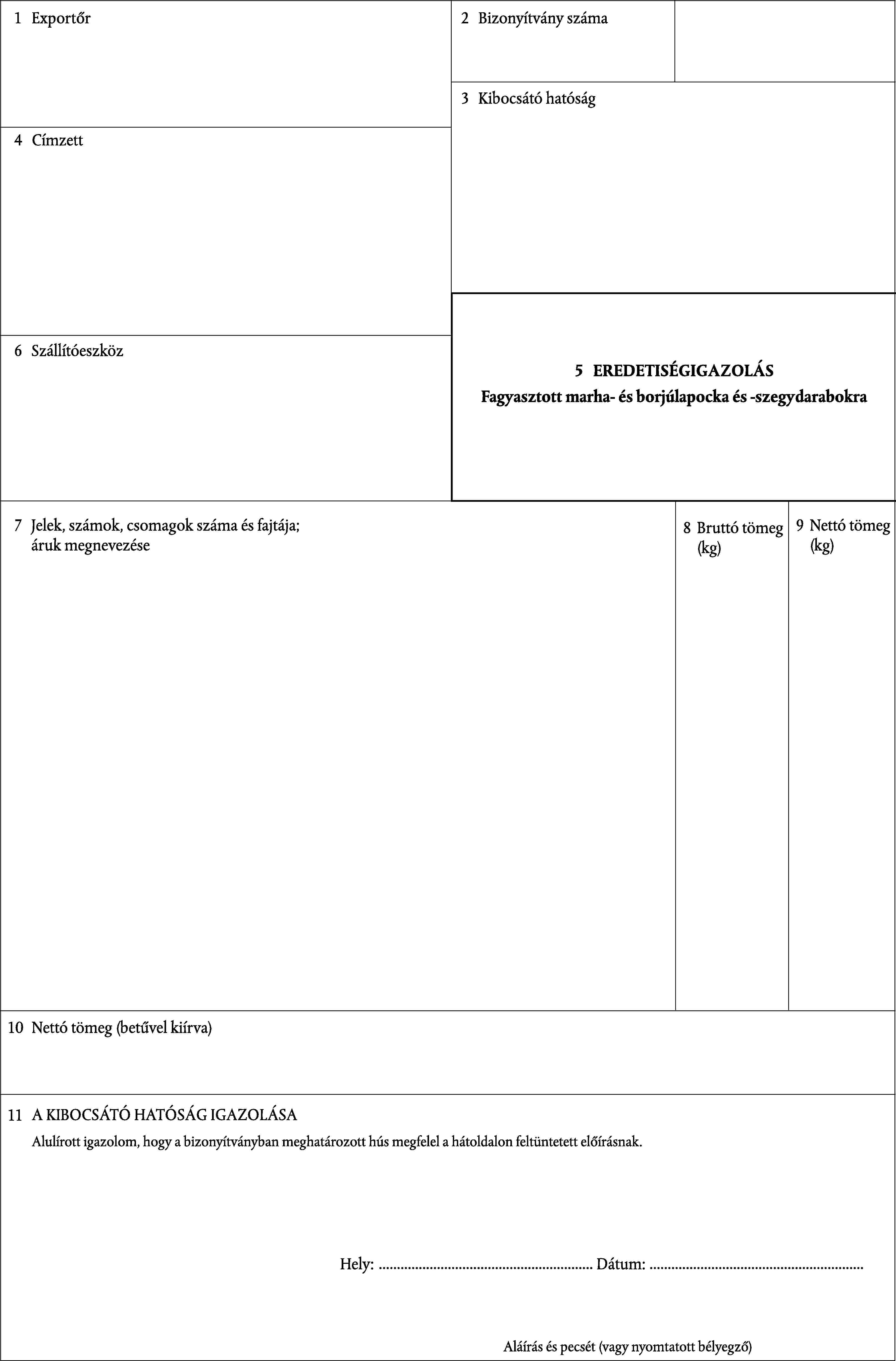 (1) Az eredetiségigazolást egy űrlapon kell kiállítani, amelynek mintáját az I. melléklet tartalmazza.