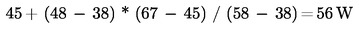 Például, ha egy 1. kategóriába tartozó fénycsőelőtétet egy 50 Hz-en 48 wattos izzólámpához számítanak, az előtétes fénycsöves áramkör bemenő teljesítményének legnagyobb értékét a következőképpen kell kiszámítani: