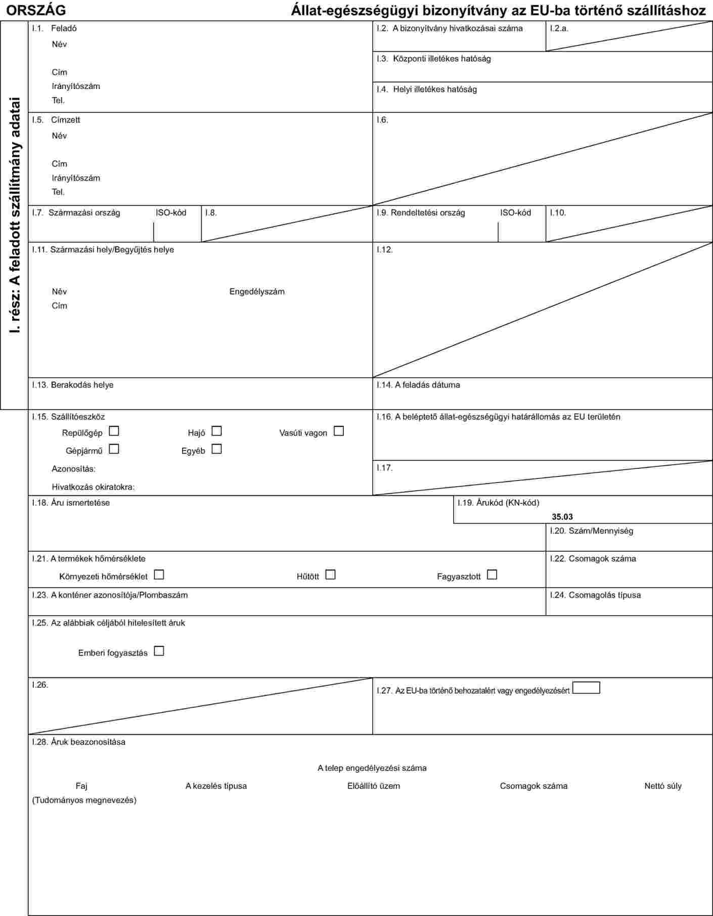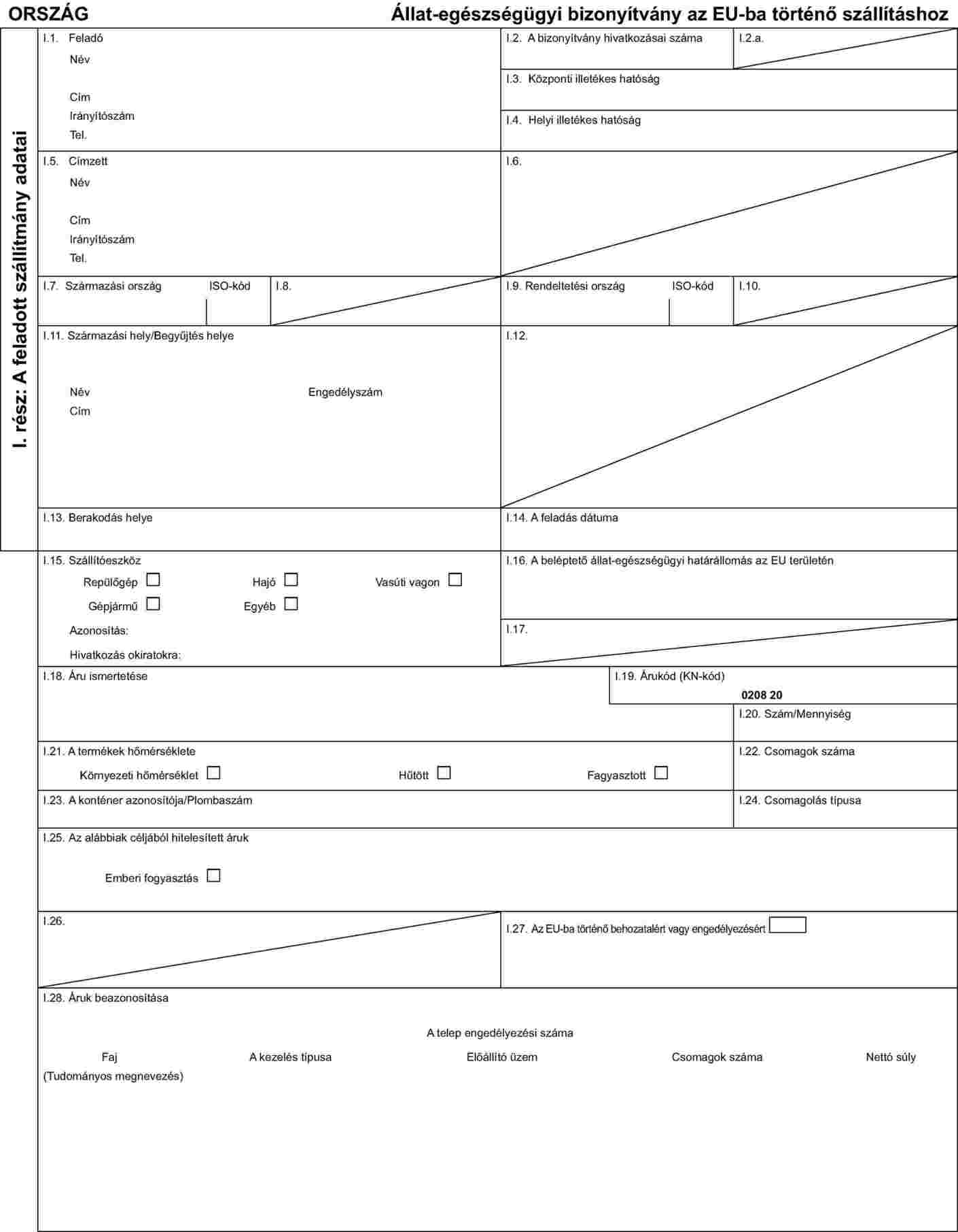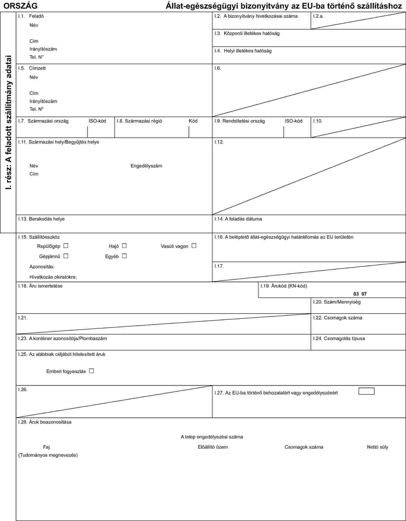 I. MELLÉKLET