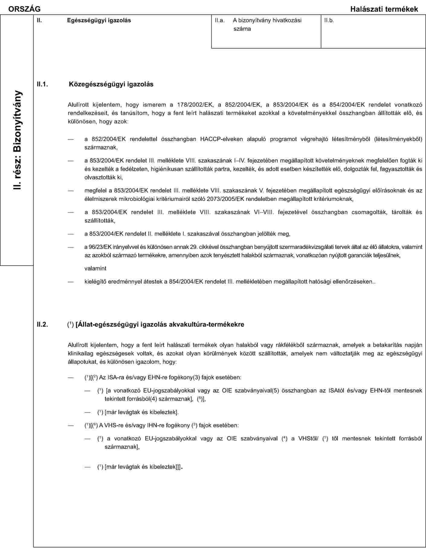 AZ EMBERI FOGYASZTÁSRA SZÁNT HALÁSZATI TERMÉKEK BEHOZATALÁRA VONATKOZÓ EGÉSZSÉGÜGYI BIZONYÍTVÁNYMINTA