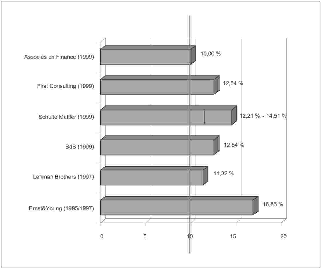 (47) Ezt beruházási bankok és tanácsadó cégek a tőke után járó tényleges és várható hozamokról szóló kijelentései és tanulmányai is alátámasztják. A Salomon Brothers a legtöbb európai bank esetében 10 és 14 %-ra becsüli a sajáttőke-hozamot, a Merryl Lynch különböző német bankok vonatkozásában 11,8 %-ra, míg a WestLB Panmure mintegy 11,8-12,3 %-ra.