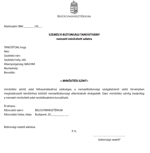 2. A Belügyminisztérium Biztonsági Szabályzatáról szóló 26/2014. (XII. 23.) BM utasítás 1. melléklet Függelékében foglalt 2. iratminta helyébe a következő iratminta lép: