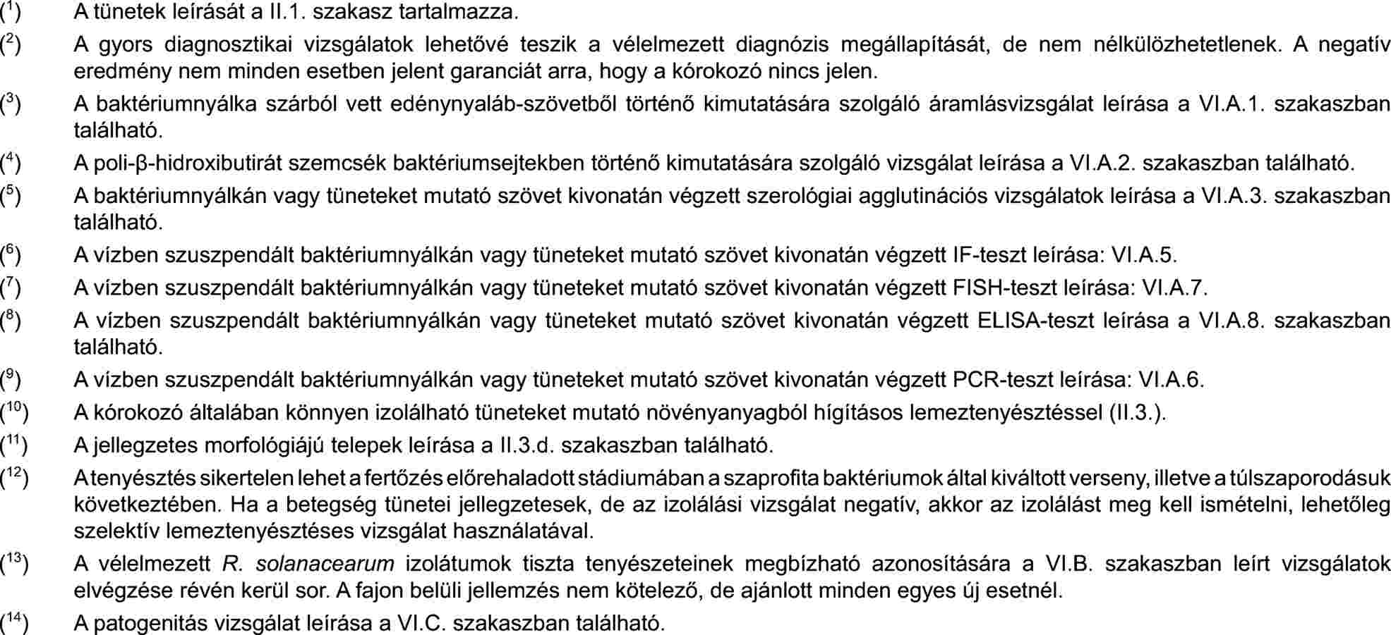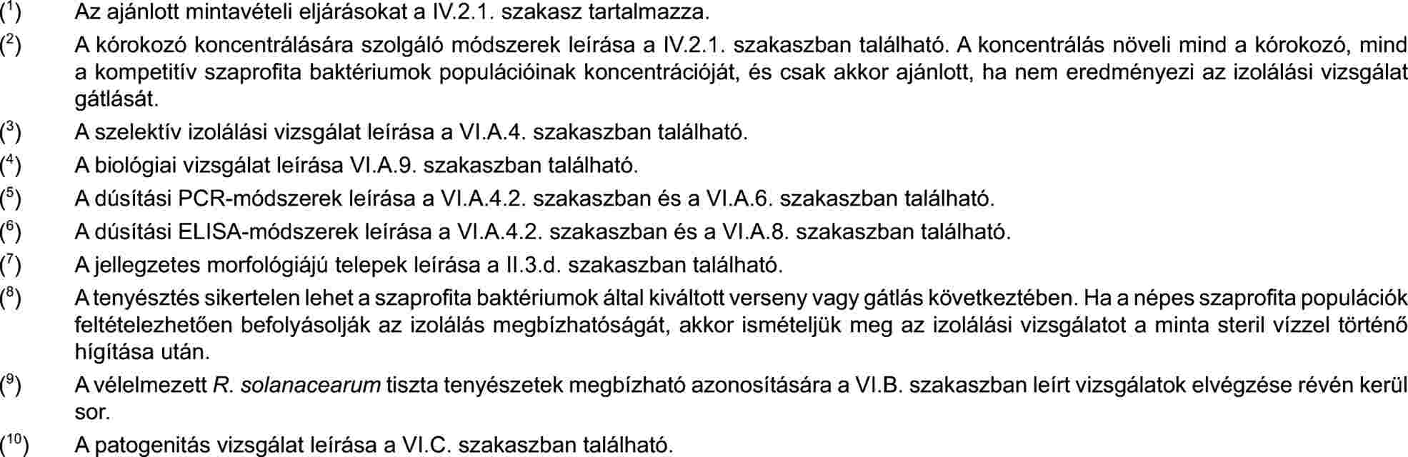 II. SZAKASZ: | Részletes módszerek az R. solanacearum kimutatására burgonyagumókban, valamint a barna rothadás vagy a baktériumos hervadás tüneteit mutató burgonya-, paradicsom- vagy egyéb gazdanövényekben | 48 | ||||