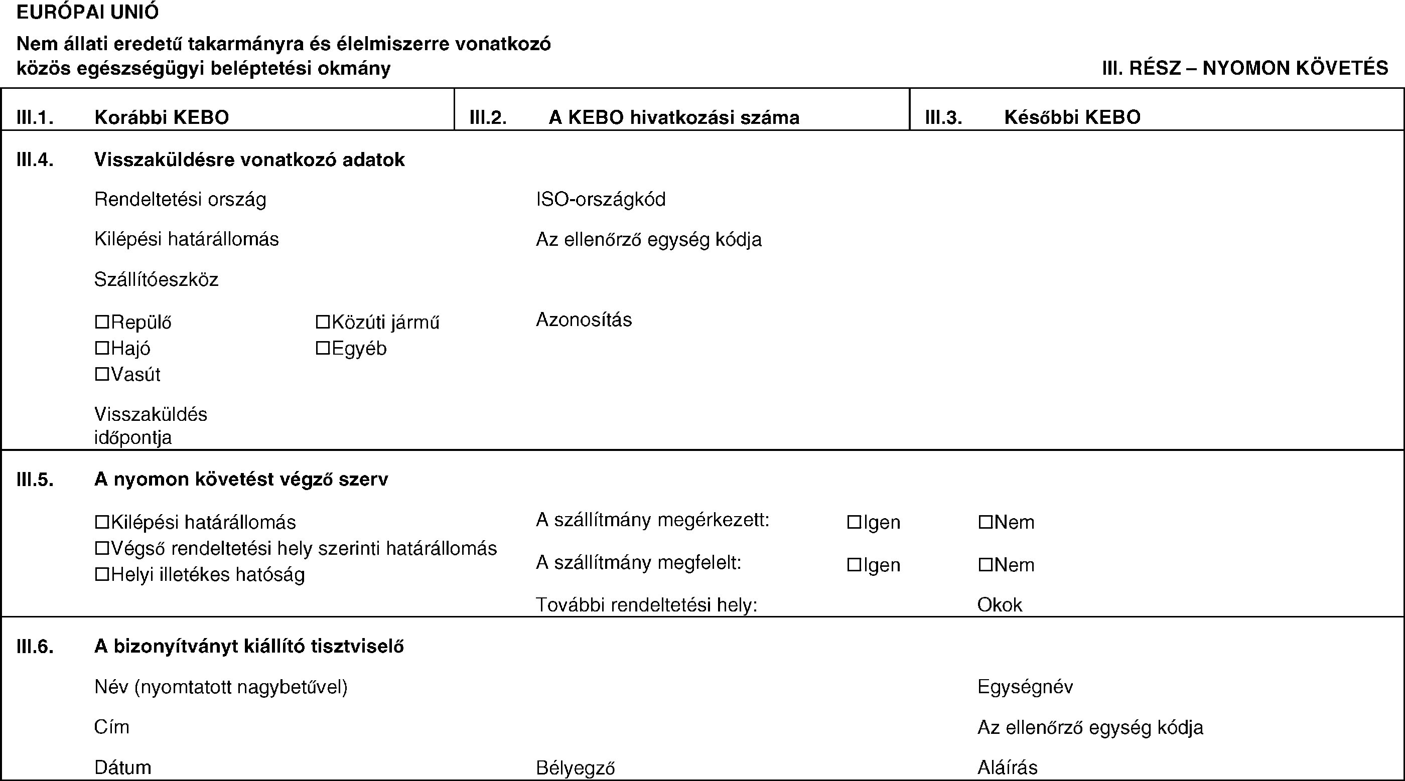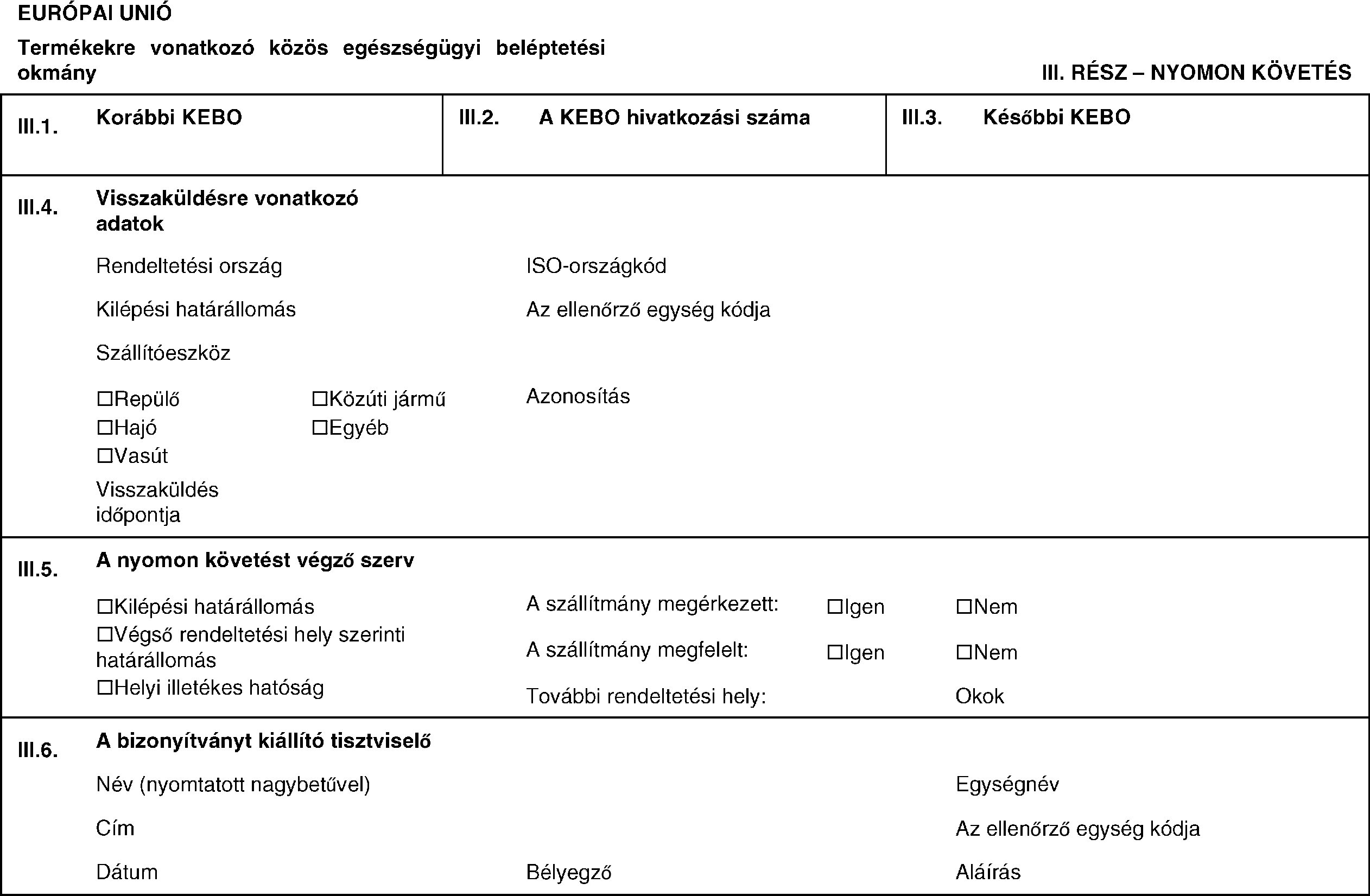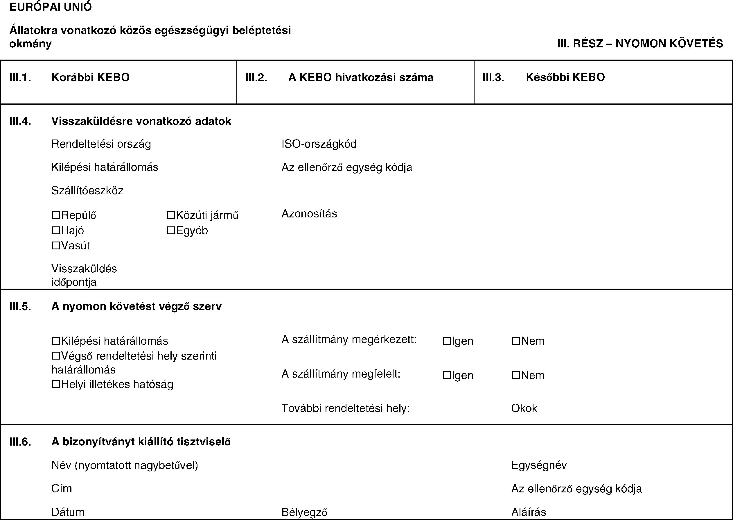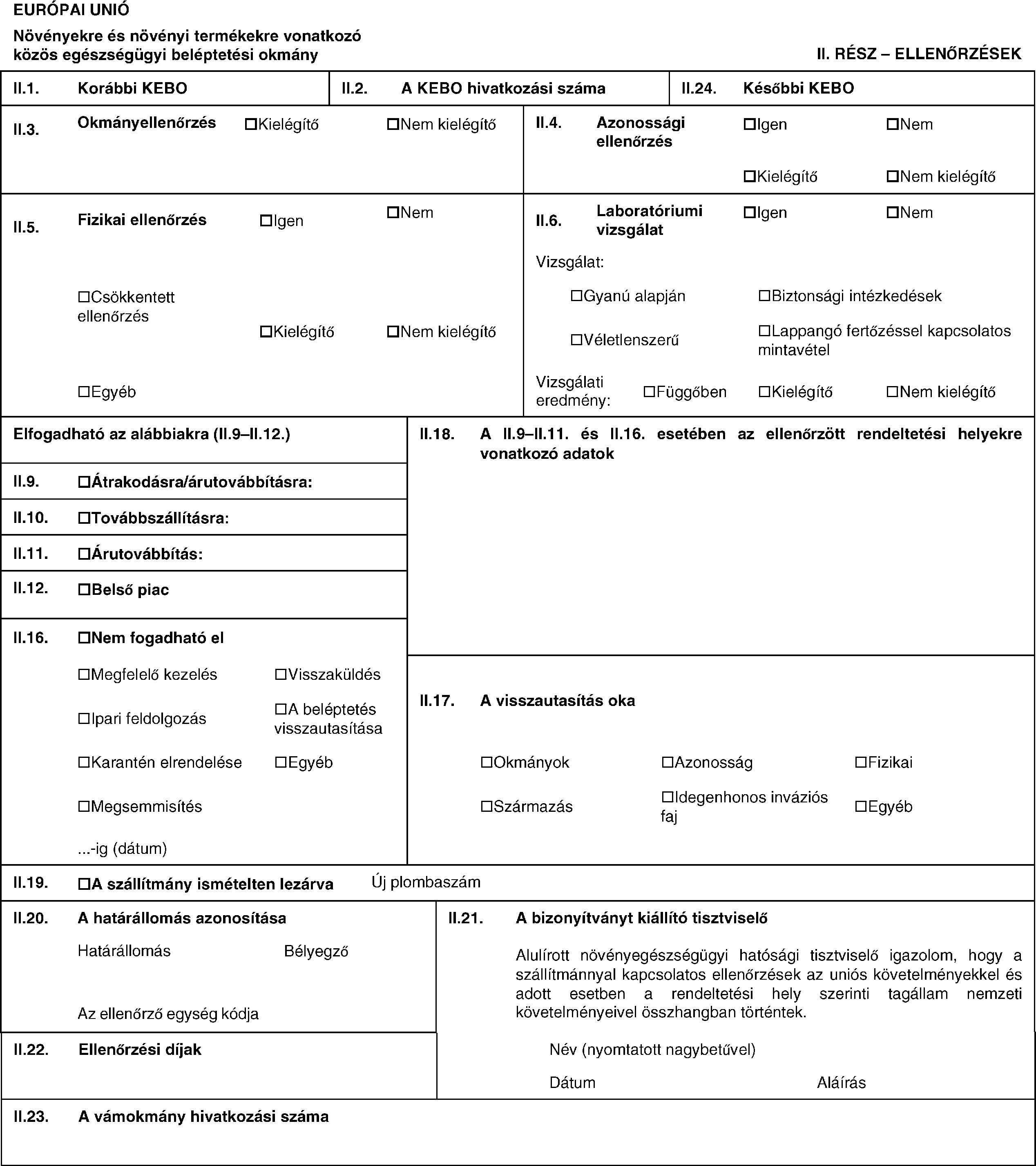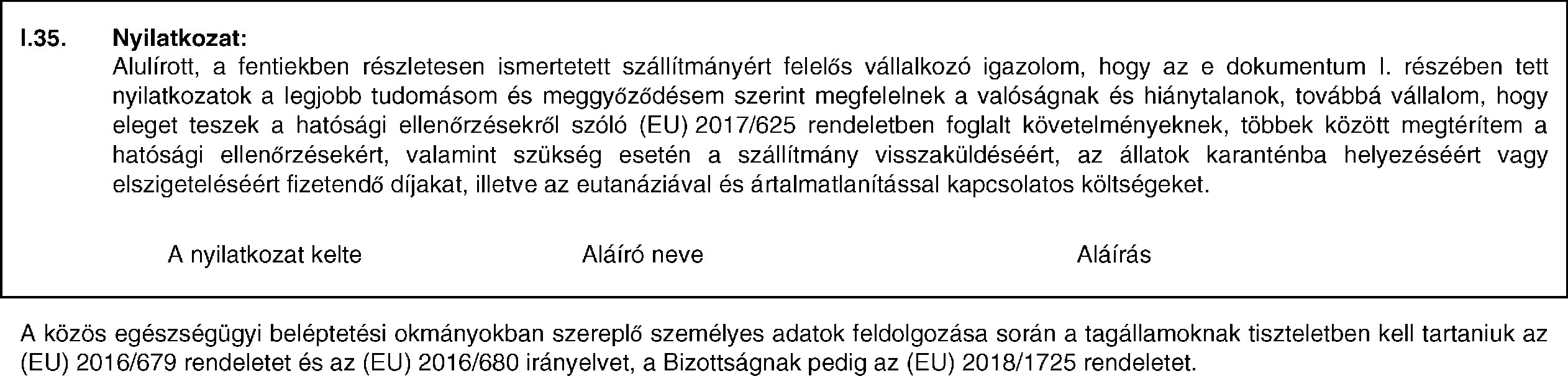 i. az (EU) 2017/625 rendelet 56. cikkében említett közös egészségügyi beléptetési okmány, illetve elektronikus megfelelőjének formátuma, valamint a benyújtására és használatára vonatkozó utasítások;