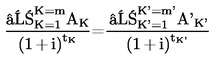 tK′ az 1. számú kölcsön időpontjától az 1-től m'-ig terjedő időpontig terjedő hiteltörlesztések és díjfizetések közötti időtartam években vagy egy év töredékében kifejezve