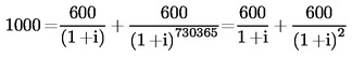 A kölcsön összege most: S = 1 000 ECU, de a hitelező adminisztratív kiadások fejében visszatart belőle 50 ECU-t, így tehát a ténylegesen átadott kölcsön összege 950 ECU; az 1 200 ECU-s törlesztés most is egy összegben történik, dátuma ismét 1995. július 1.