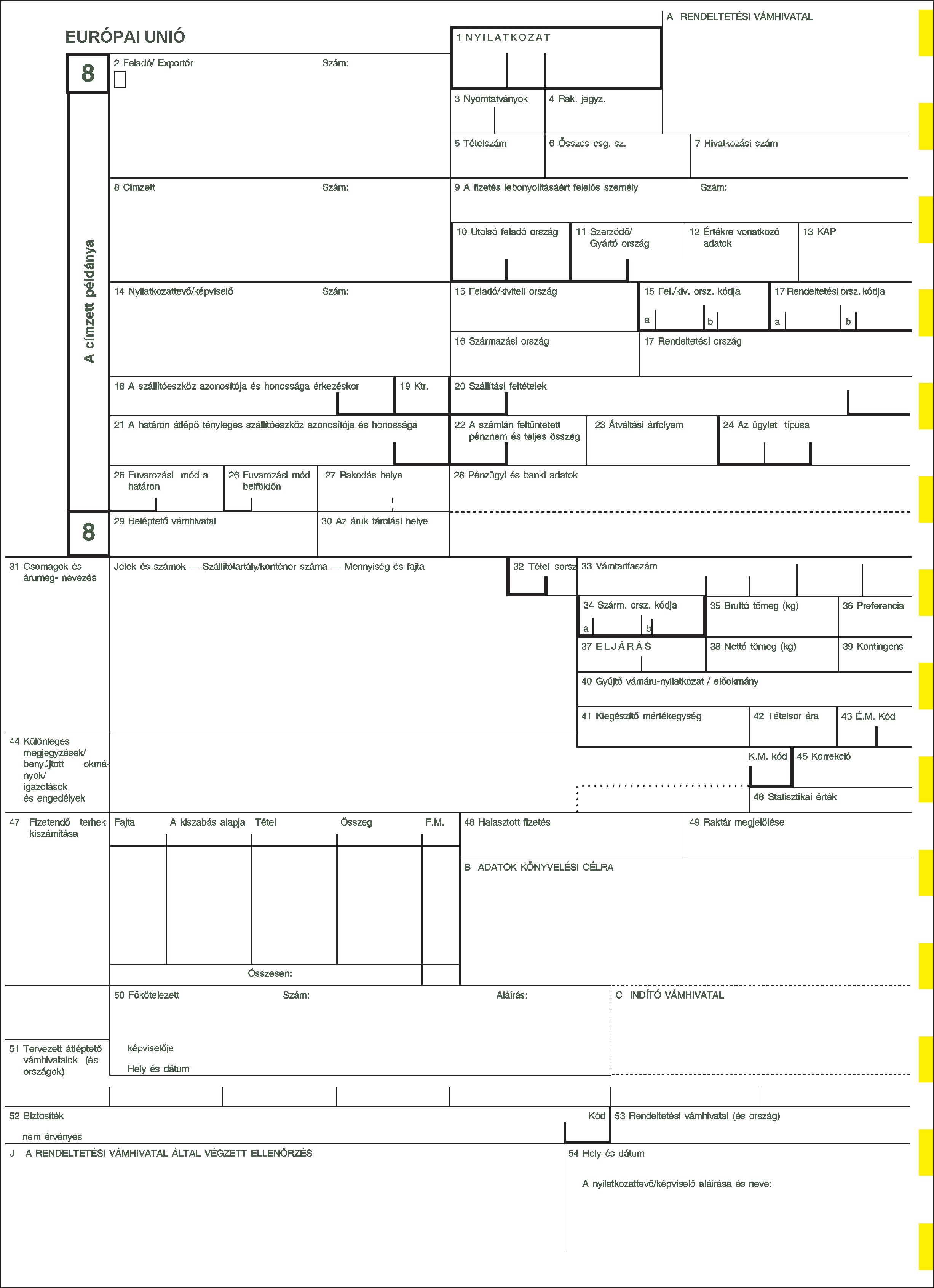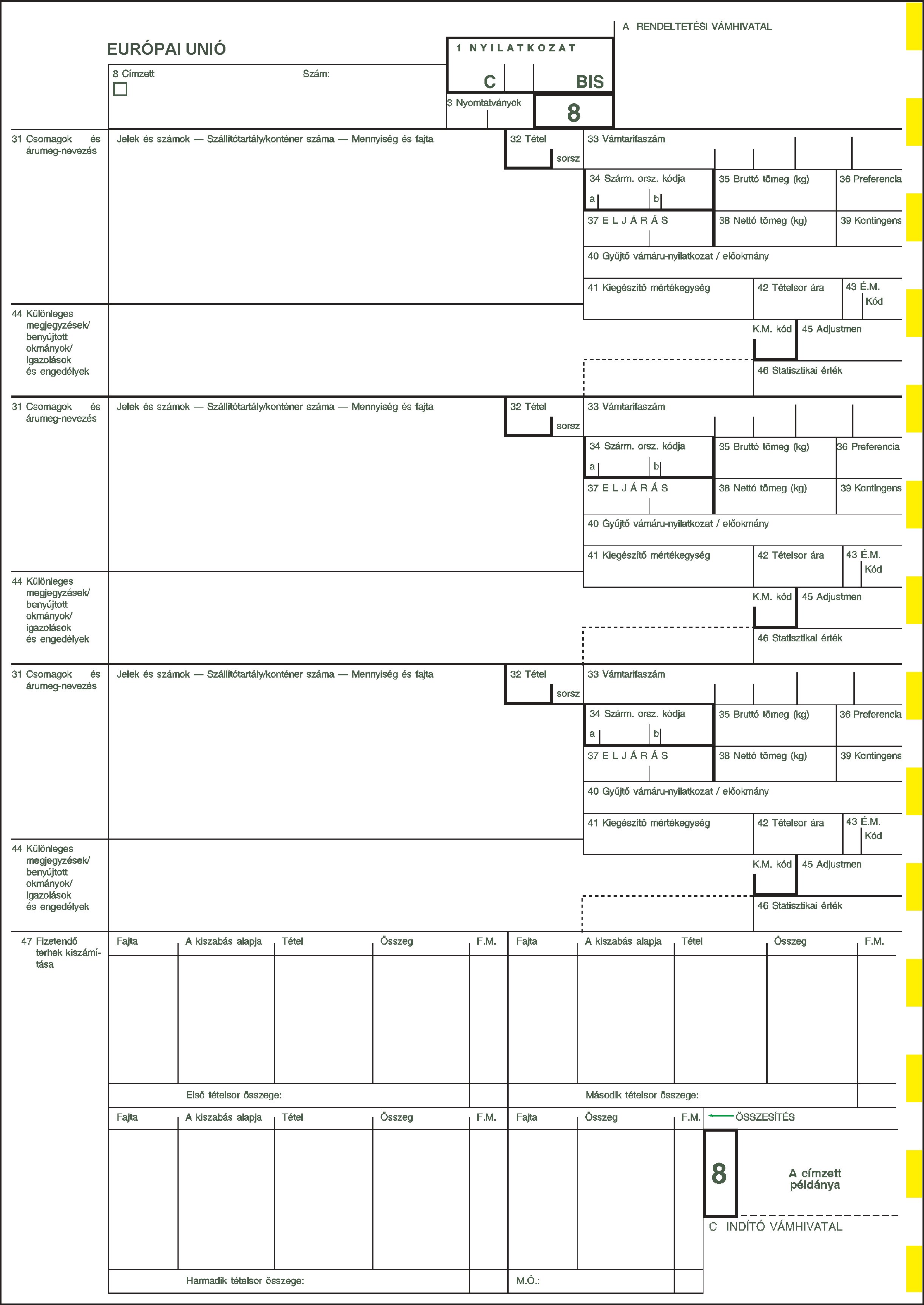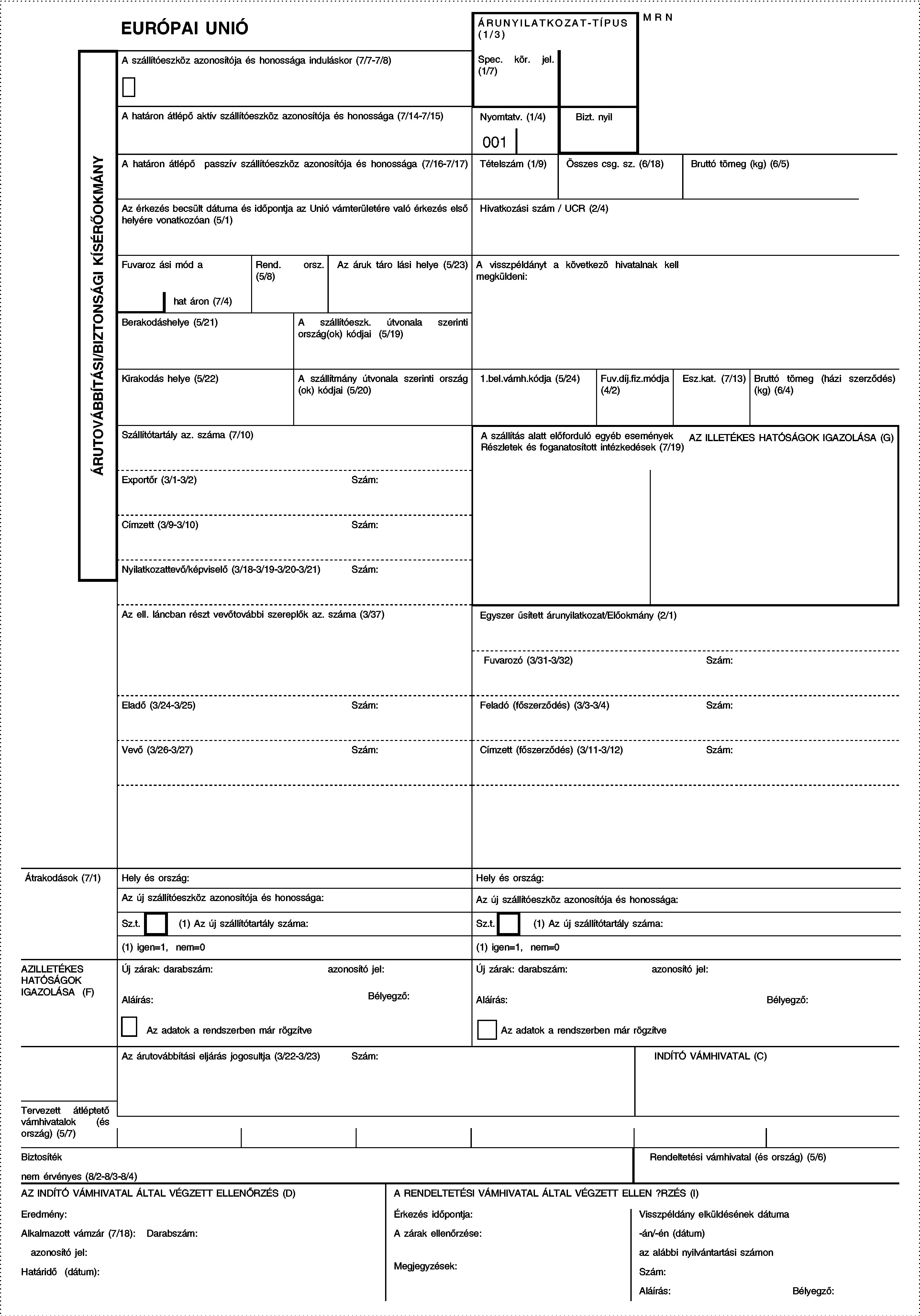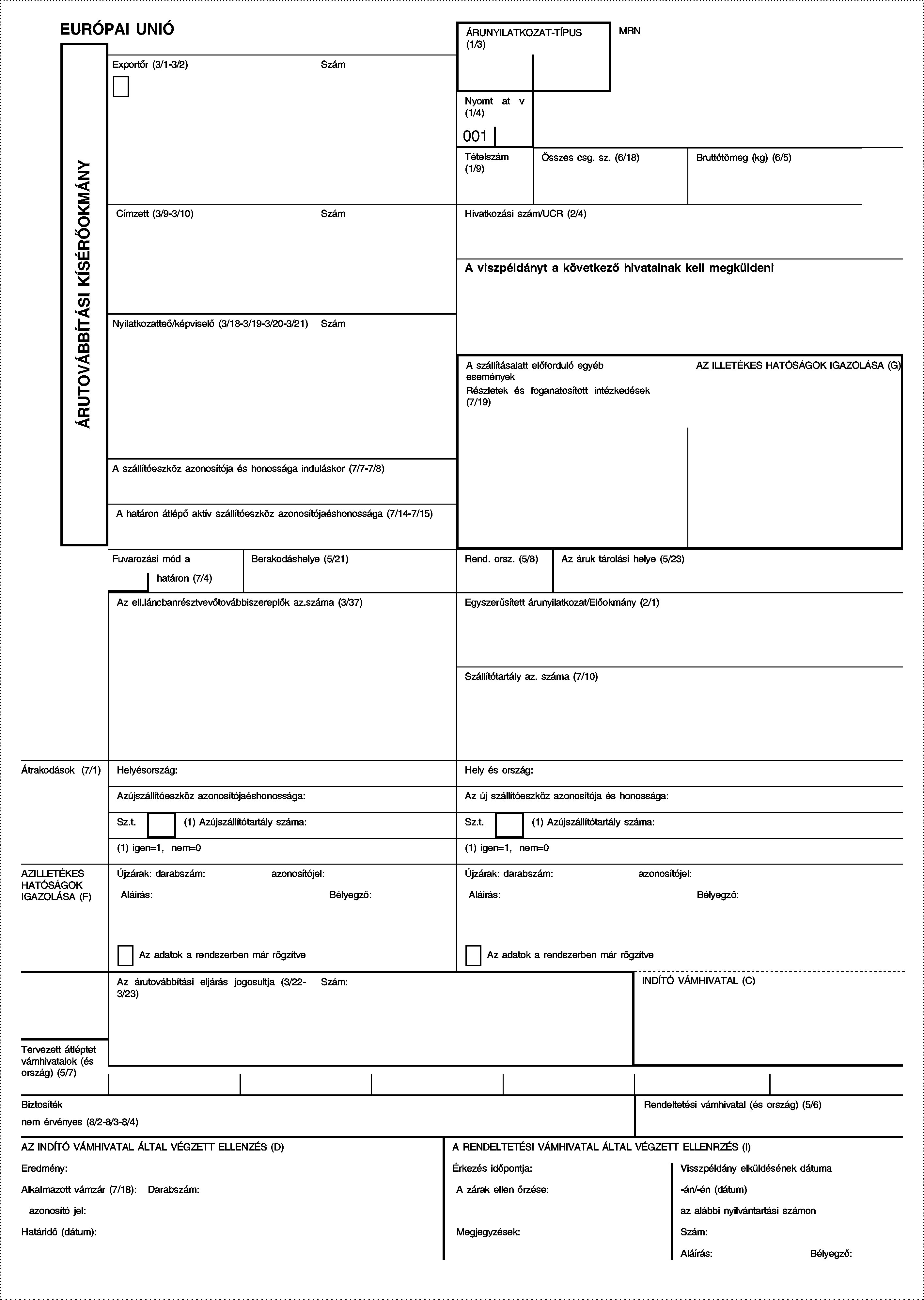 (1) A rendeltetési vámhivatal helye, neve és hivatkozási száma