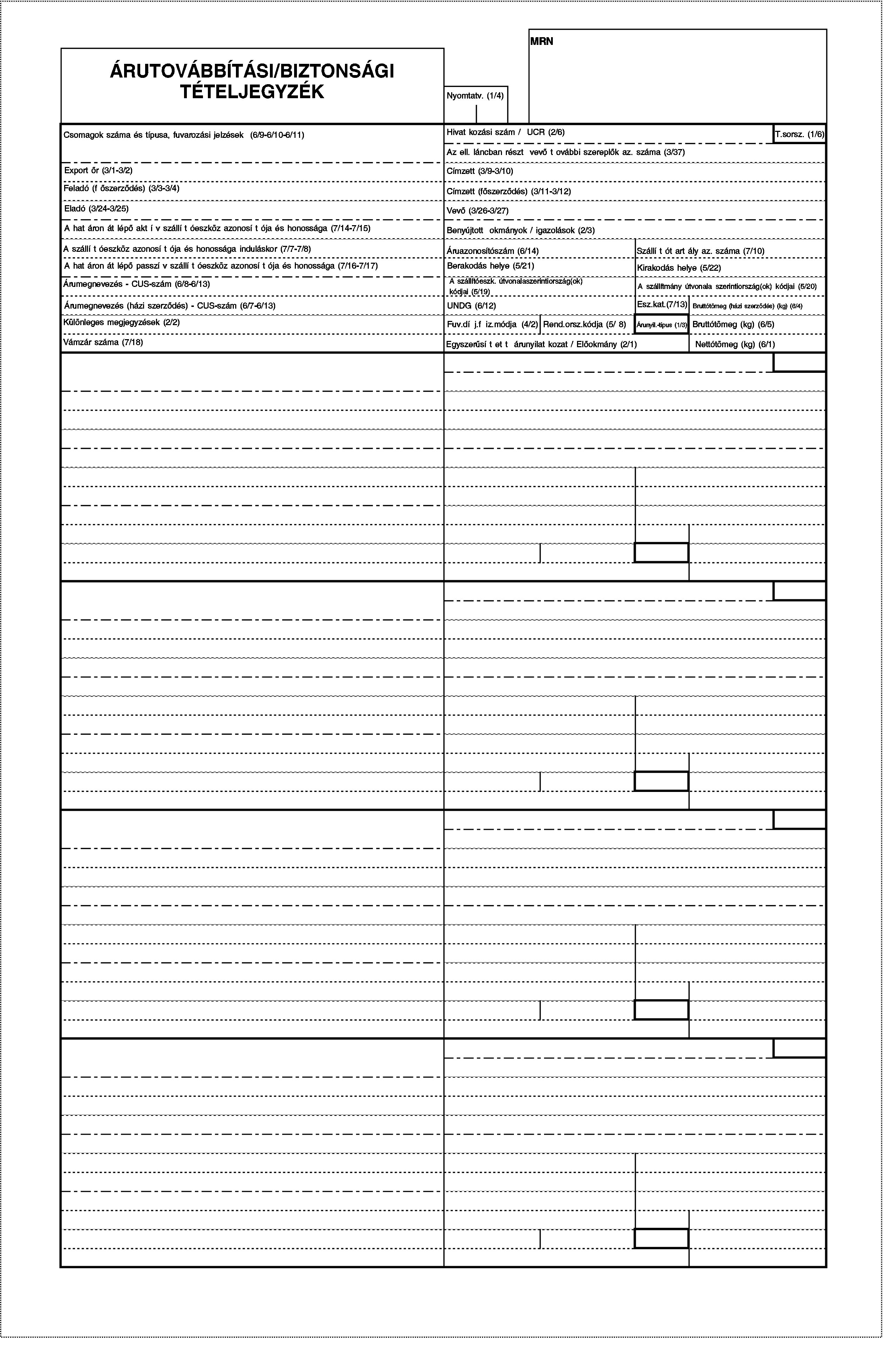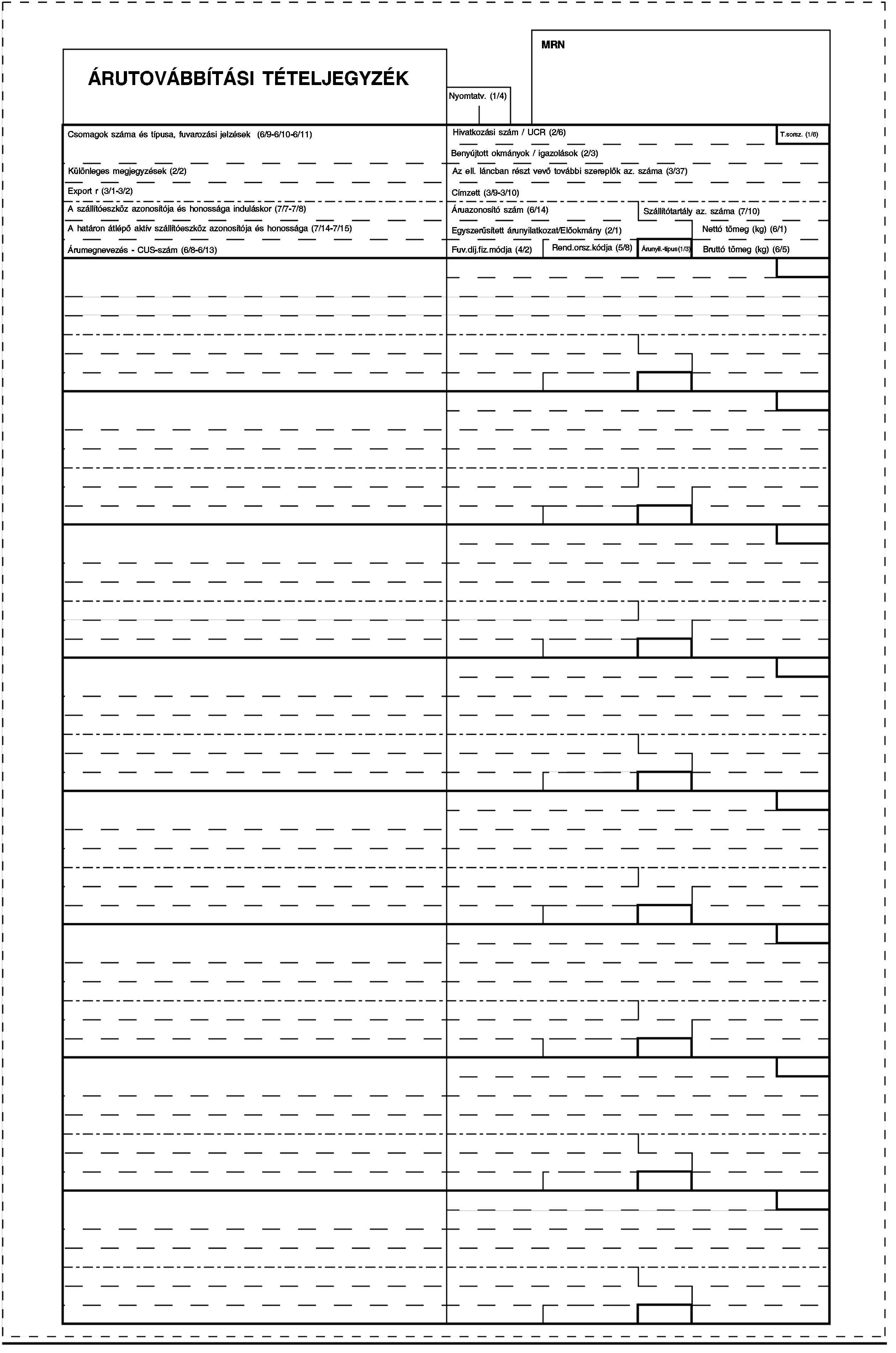22. "fő hivatkozási szám", "MRN": az illetékes vámhatóság által a Vámkódex 5. cikkének 9-14. pontjában meghatározott árunyilatkozatokhoz és értesítésekhez, a TIR-műveletekhez, valamint az áruk uniós vámjogi státusát igazoló okmányokhoz rendelt nyilvántartási szám;