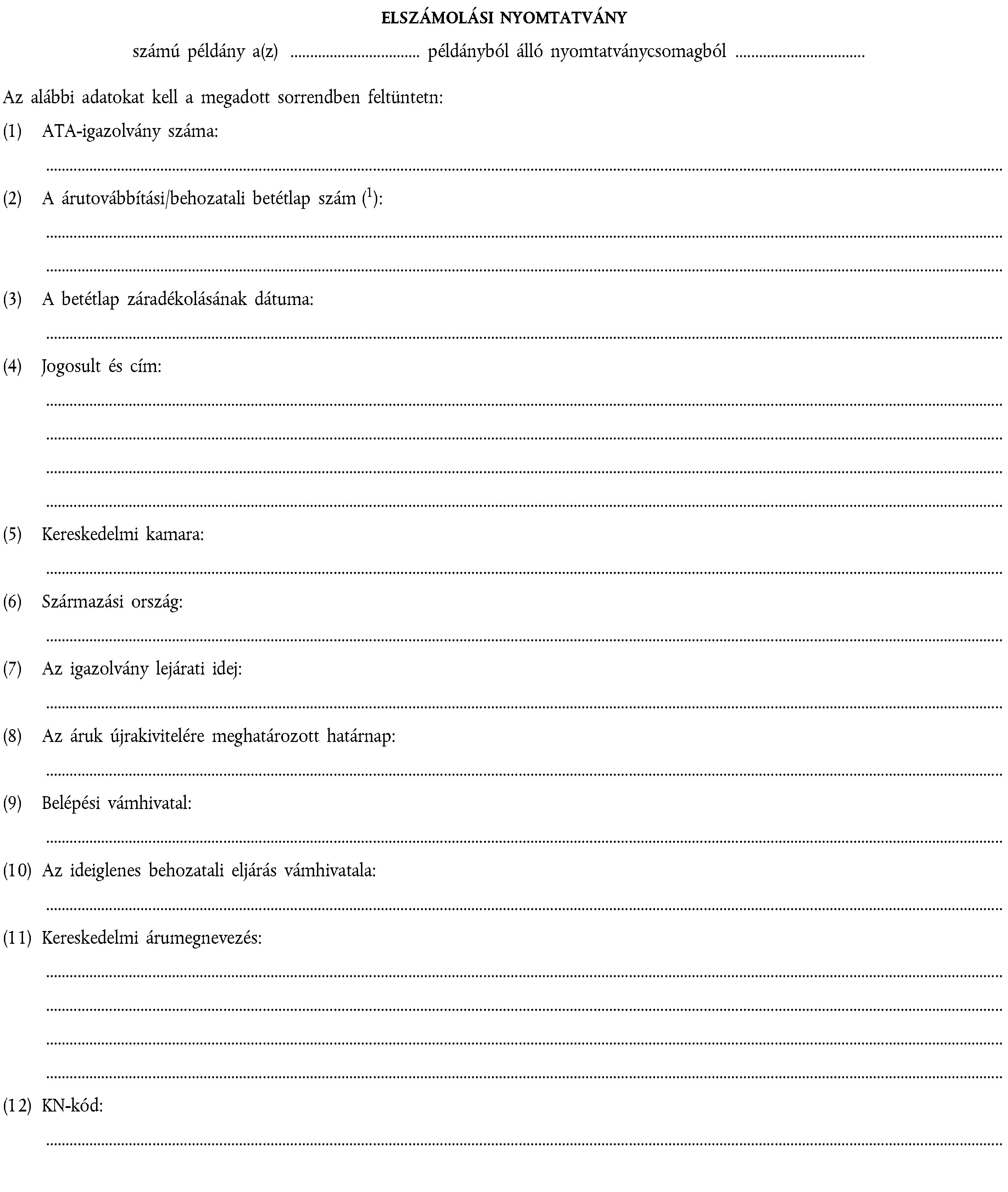 A vámeljárás lezárásáról szóló igazoláson megadandó információk