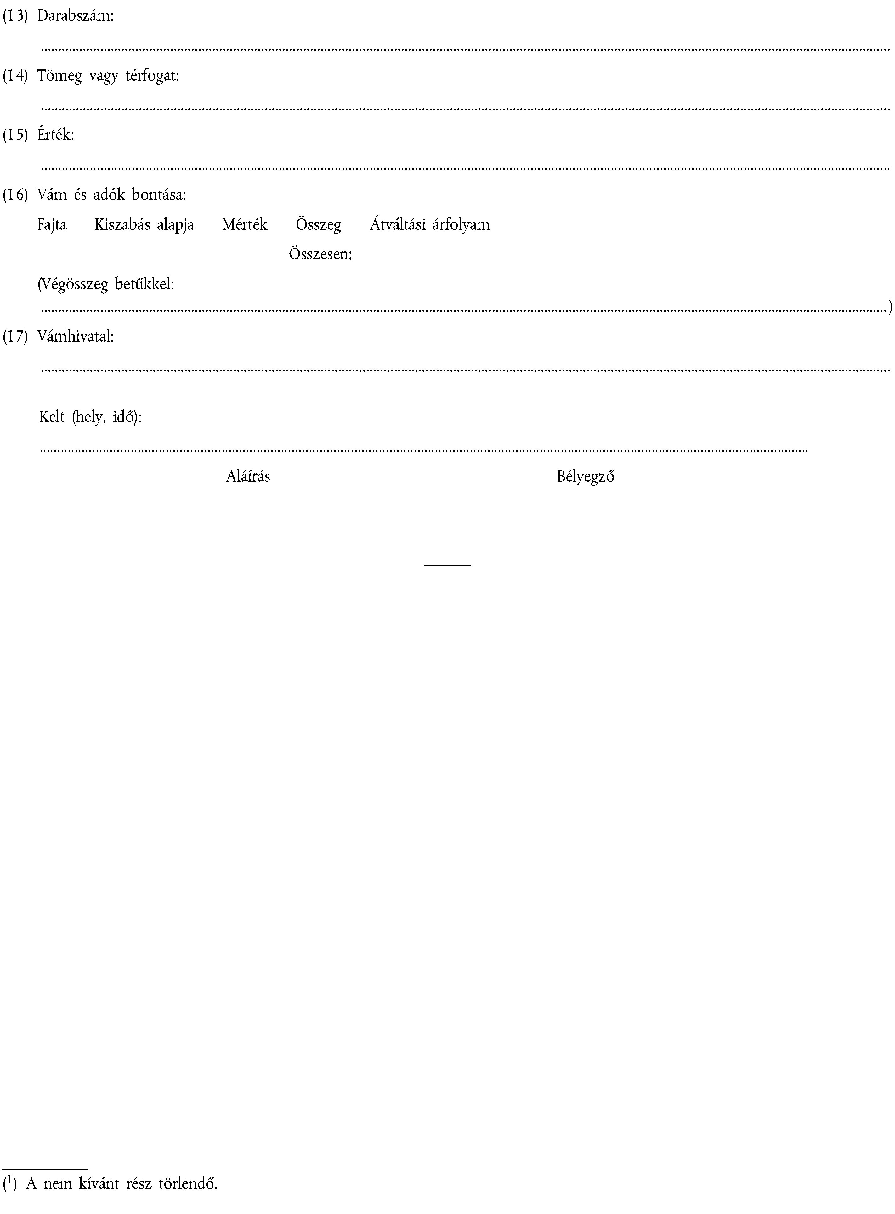 (7) A rendeltetési vámhivatal aláírása és hivatalos bélyegzője