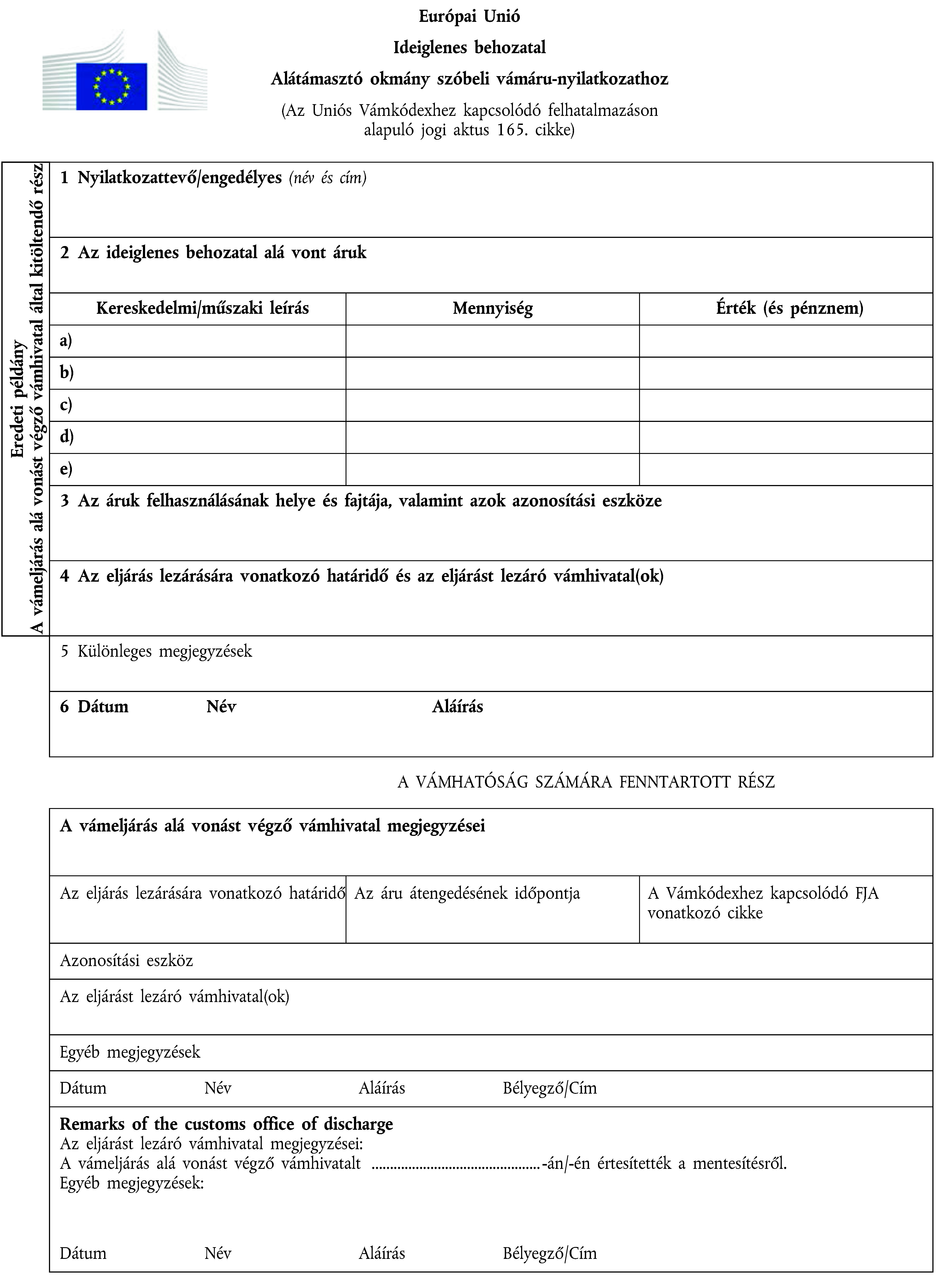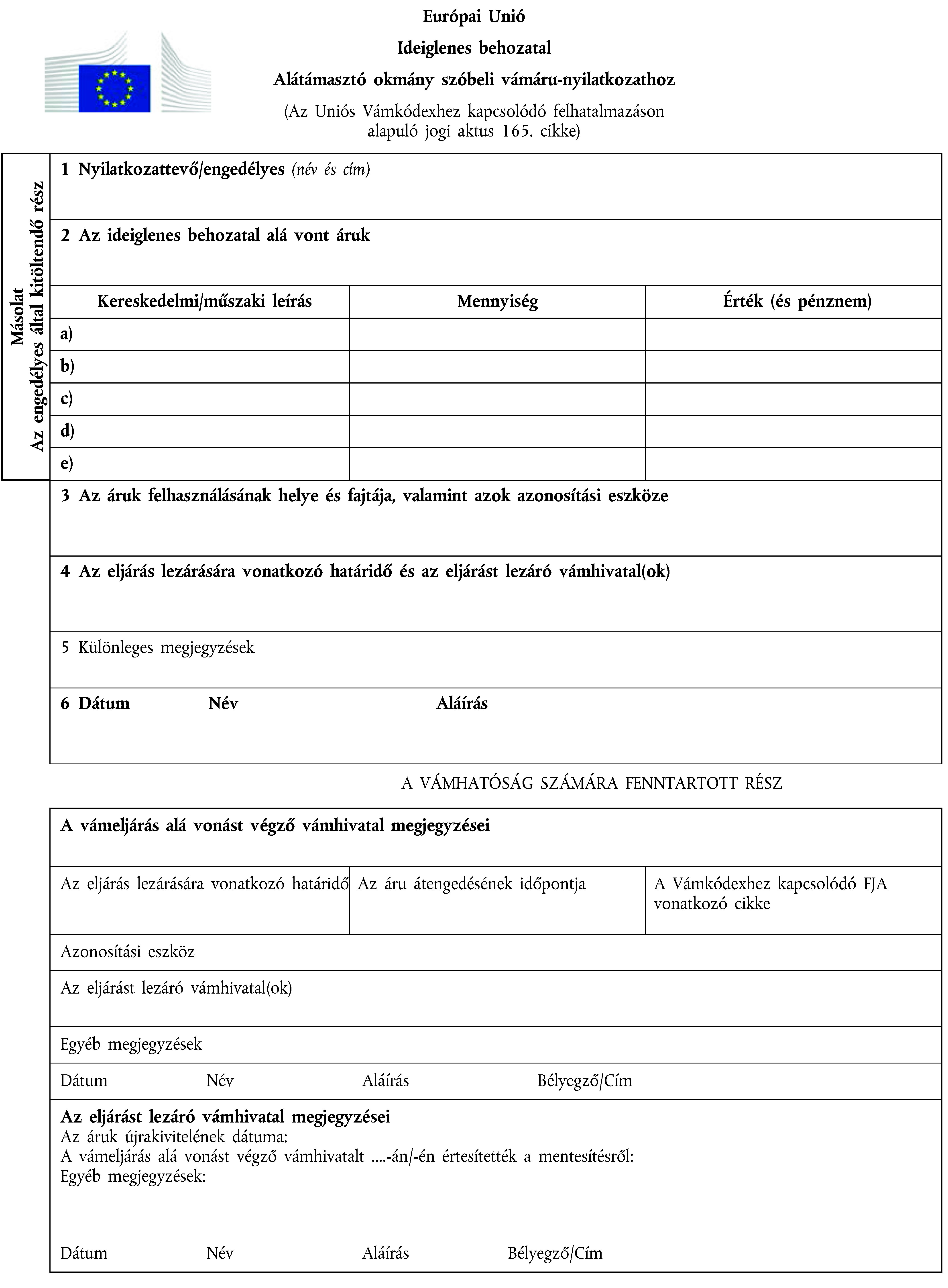 (A Vámkódex 6. cikkének (2) bekezdése)