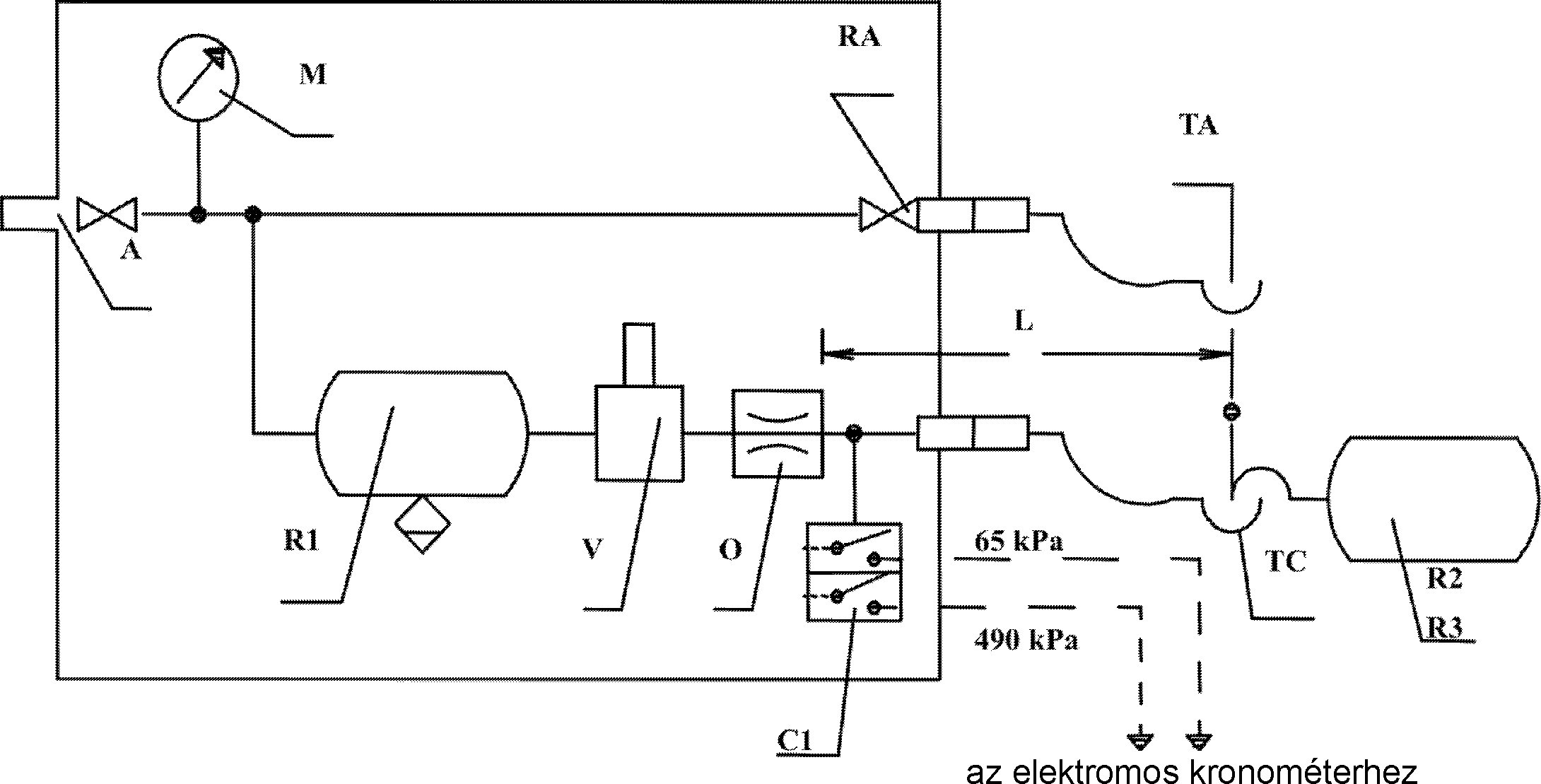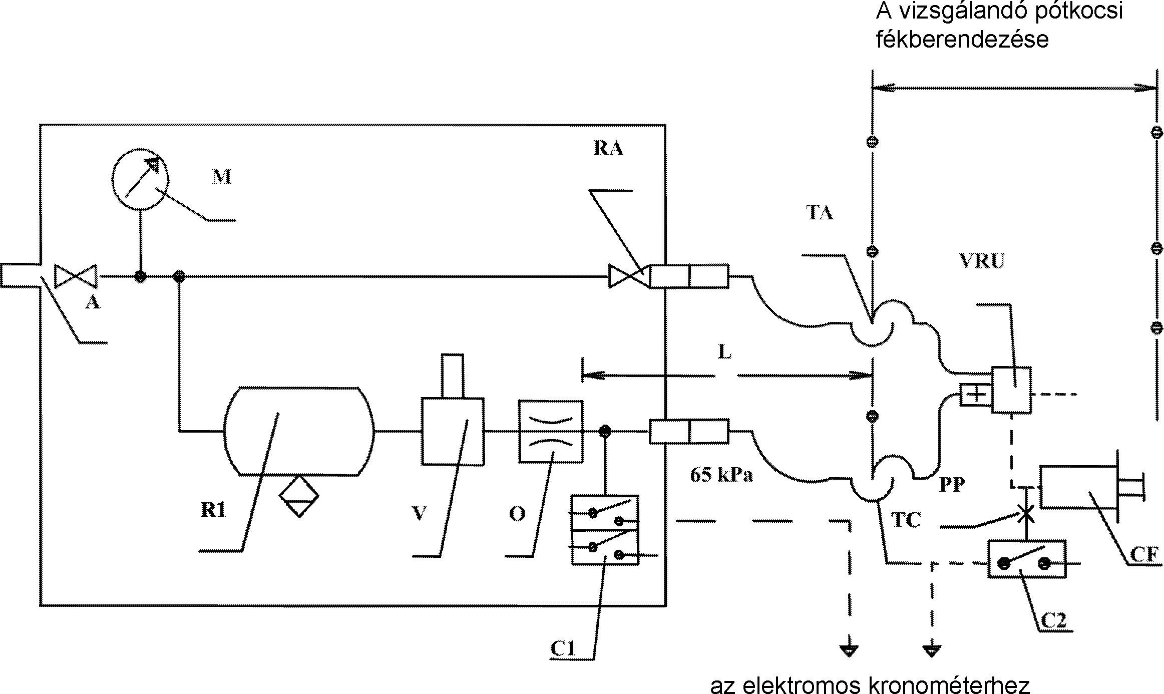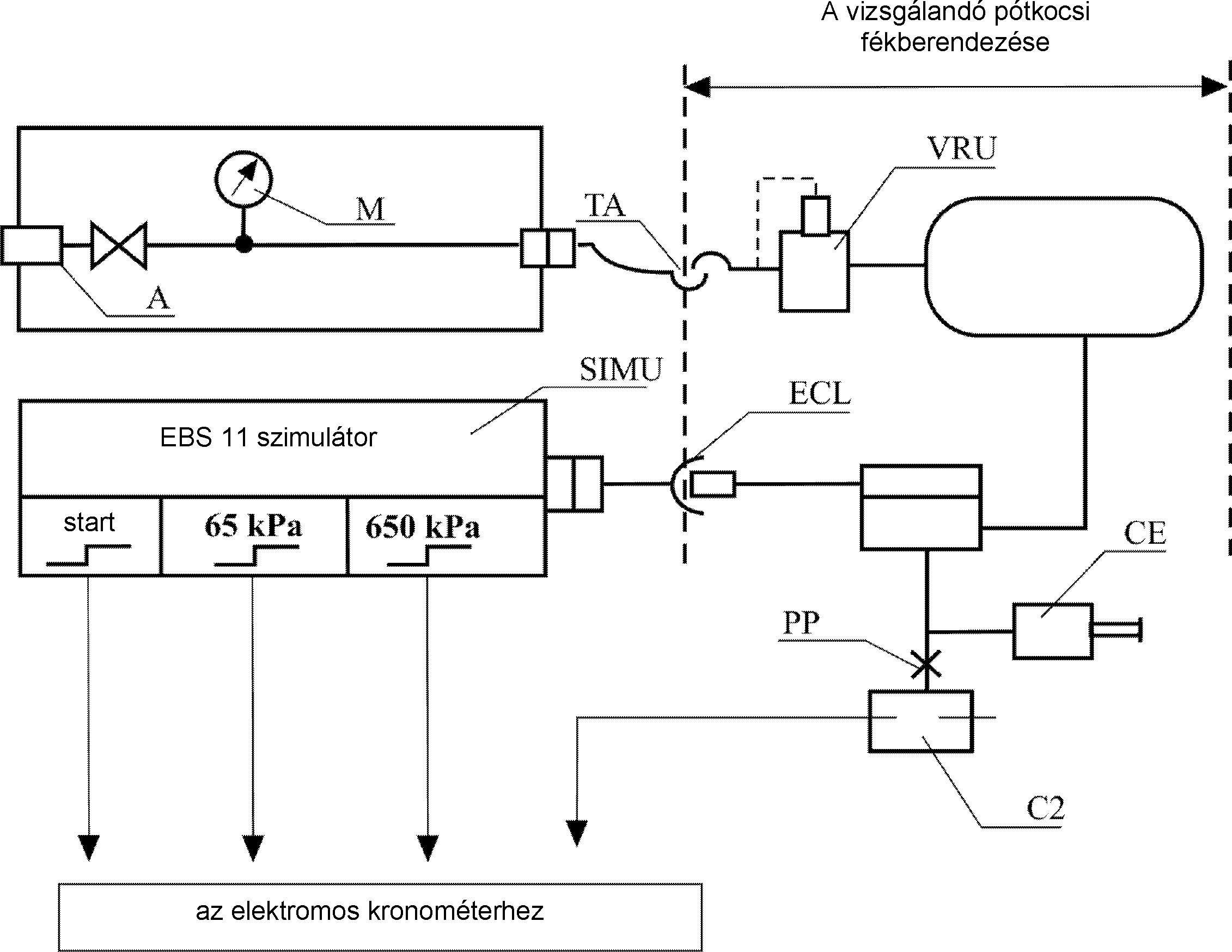Minden egyes vizsgálat kezdetén a pneumatikus töltővezeték nyomásának ≥ 700 kPa-nak kell lennie.