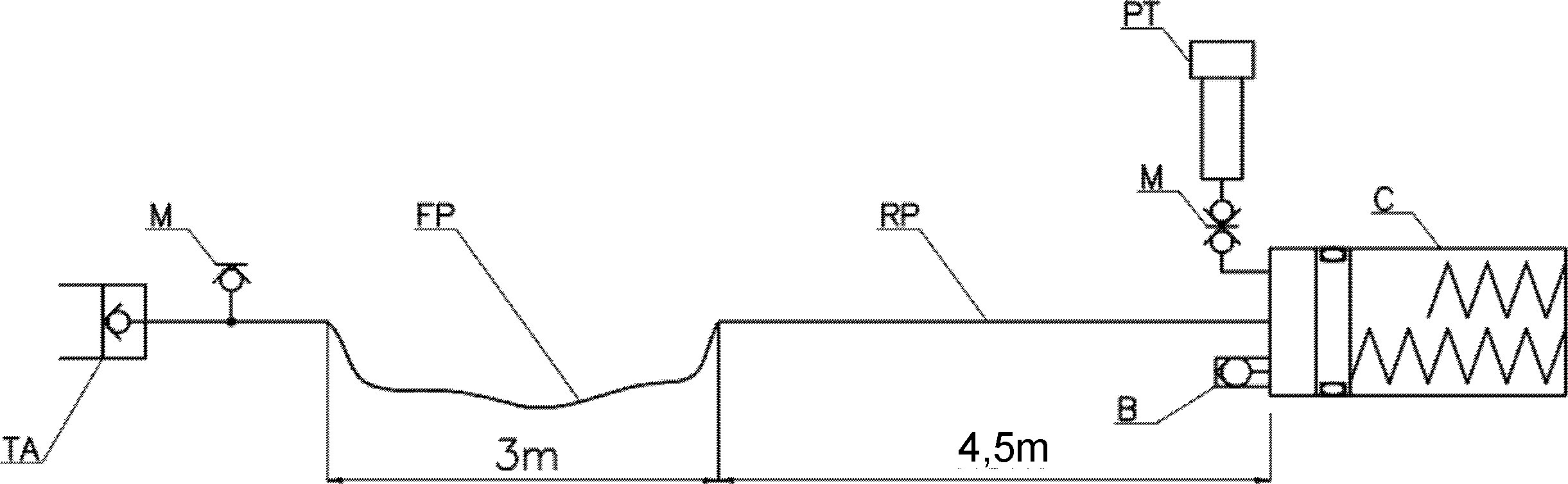 3.10. Vontatottjármű-szimulátor: A vontatott jármű fékrendszerét szimuláló berendezésnek az ISO 5676-1983 szerinti csatlakozóaljzattal ellátott hidraulikus kört és két egyforma, rugós elemekkel felszerelt és a 2. ábrán bemutatott követelményeket teljesítő hidraulikus energiatároló berendezést kell tartalmaznia. A szimulátort a 3. ábra rendelkezései szerint kell legyártani.