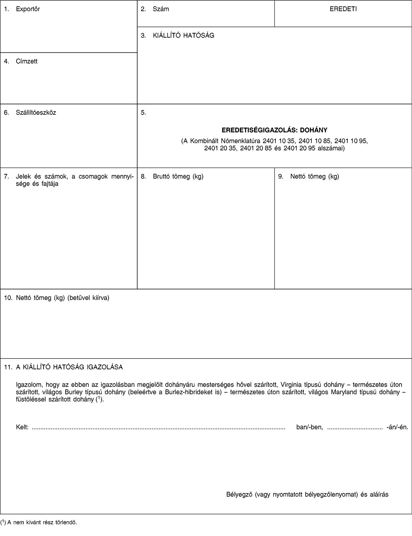 (103) Autonóm vámtétel: 16 + 1,4 €/100 kg/net.
