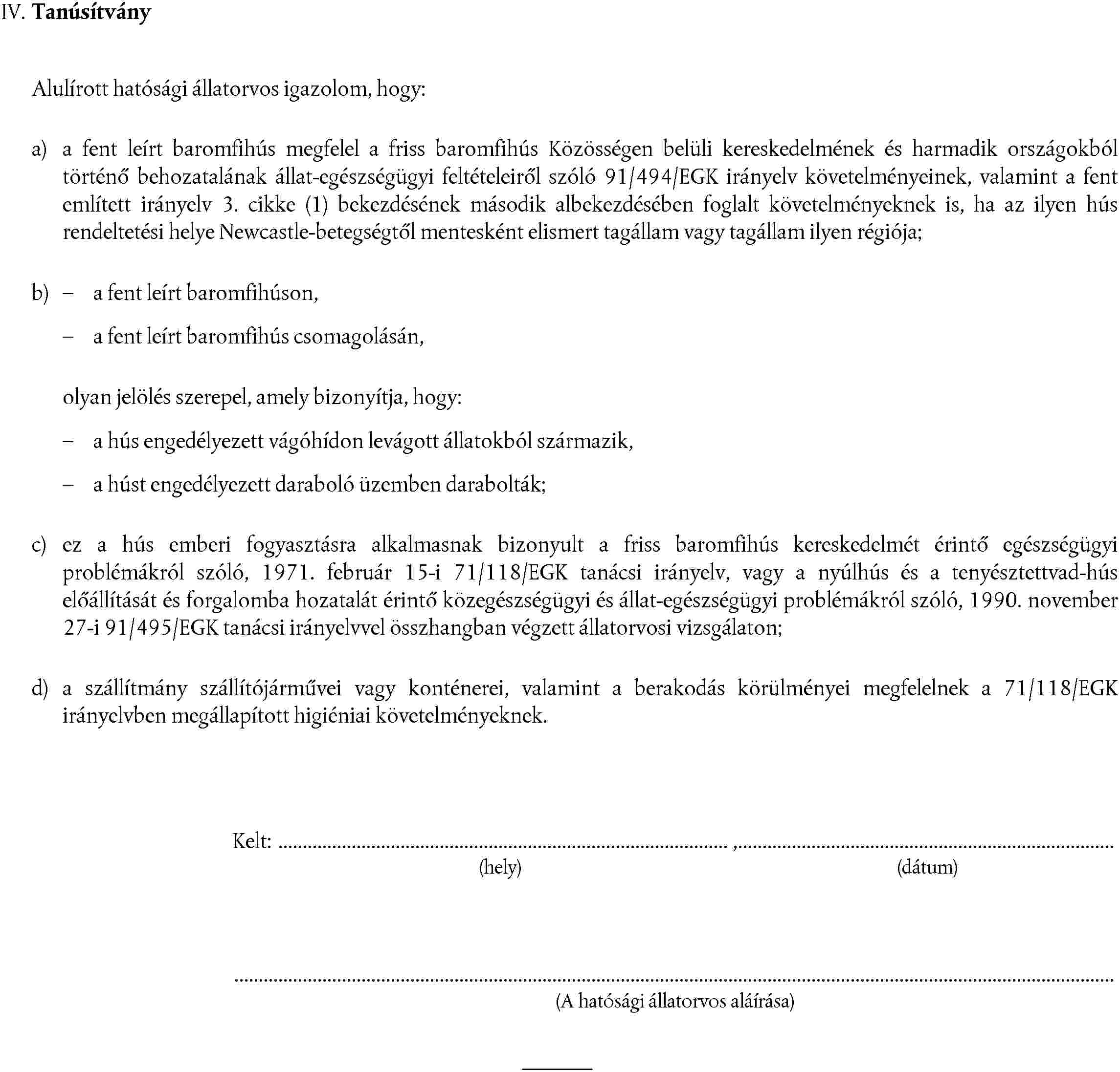 "Az apróvadak húsára a 71/118/EGK irányelv XII. fejezetének a nagy kiszerelésű csomagok egészségügyi jelöléséről szóló 68. pontját kell megfelelően alkalmazni;."