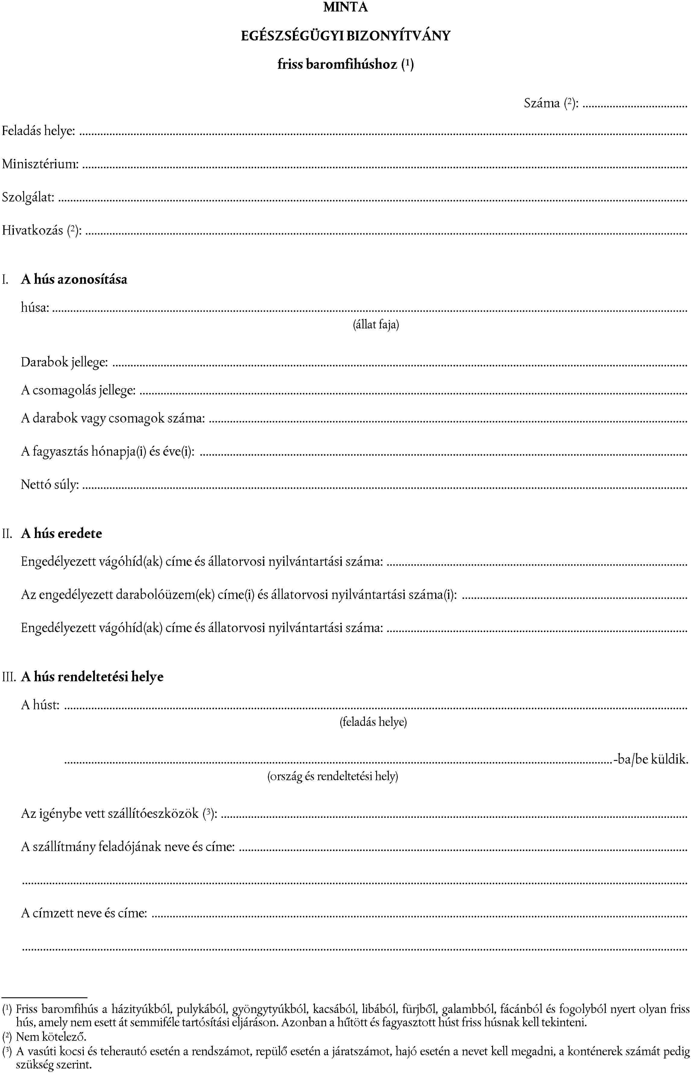 I. A friss baromfihúsnak az alábbi feltételeknek kell megfelelnie: