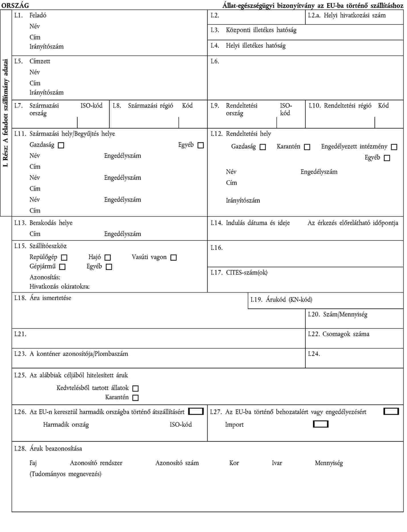 I. MELLÉKLET