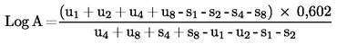 Ha a vonalak párhuzamosnak tekinthetőek, akkor számoljuk ki a relatív aktivitás logaritmusát (log A) a következő képletek egyikének felhasználásával, attól függően, hogy három vagy négy tényezőből történt-e a párhuzamosság megállapítása.