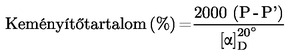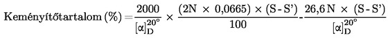 A keményítőtartalmat ( %) a következőképpen számítjuk ki:
