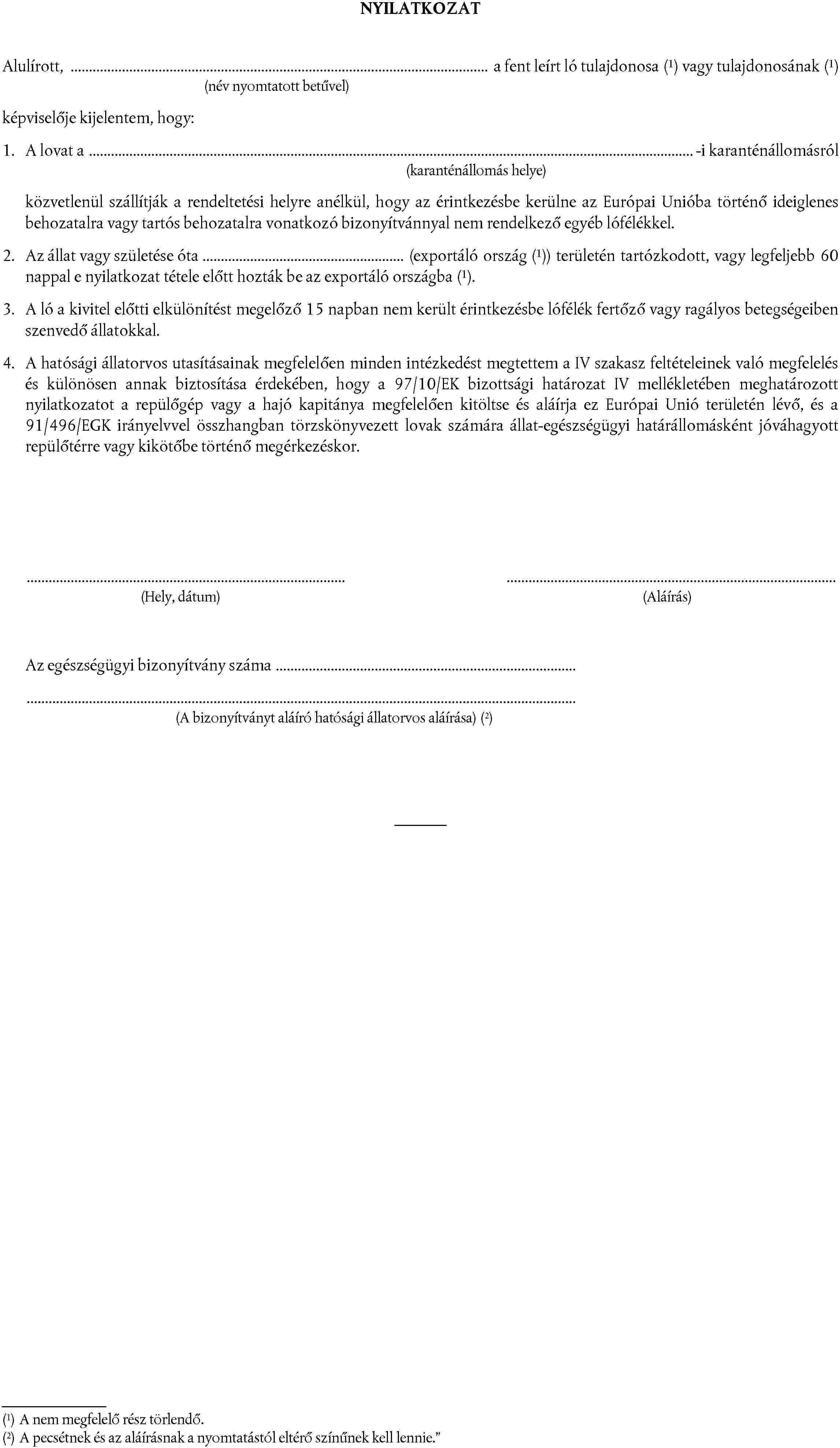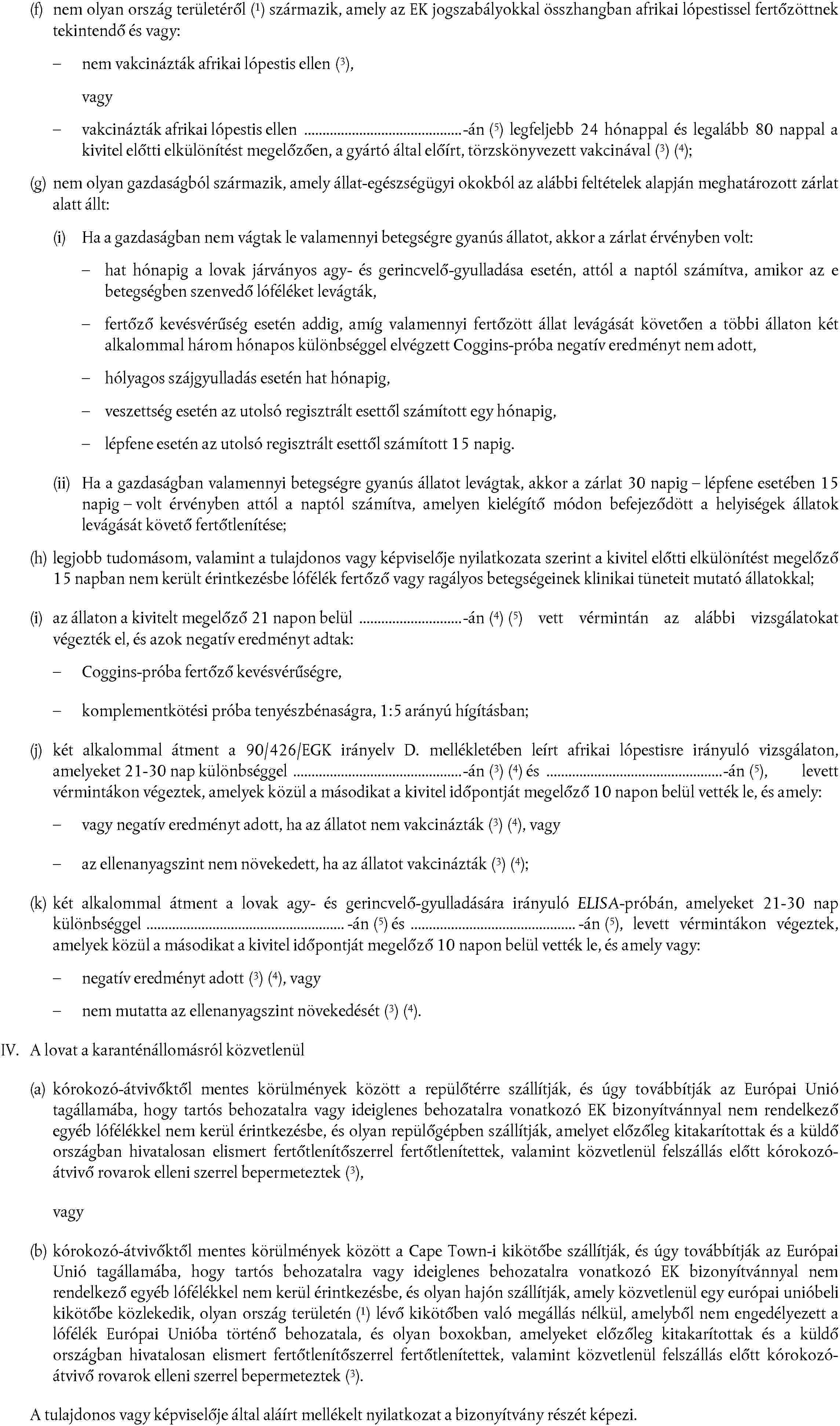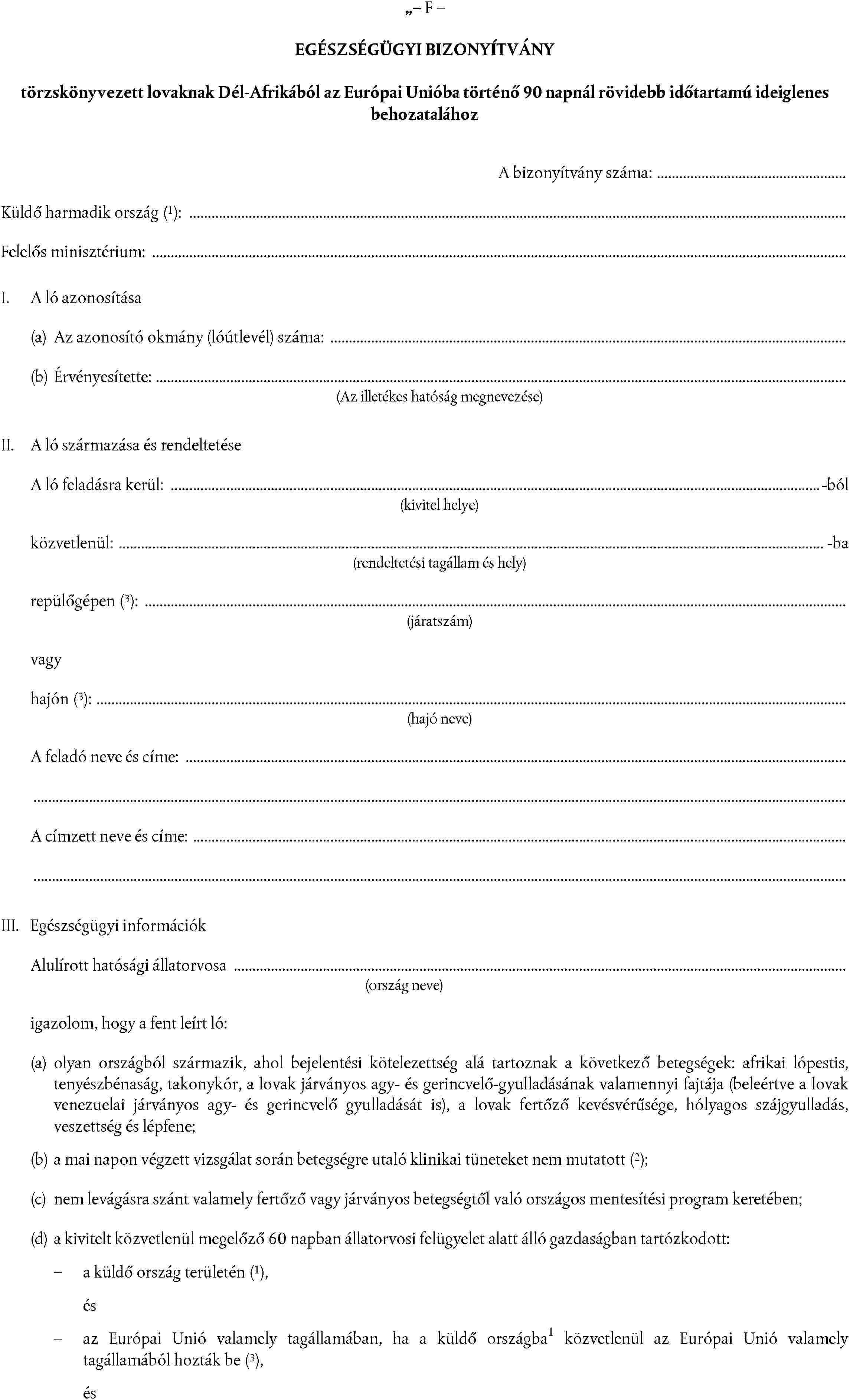 A 92/260/EGK határozat II. mellékletében az F. állat-egészségügyi bizonyítványminta helyébe az e határozat I. mellékletében foglalt szöveg lép.