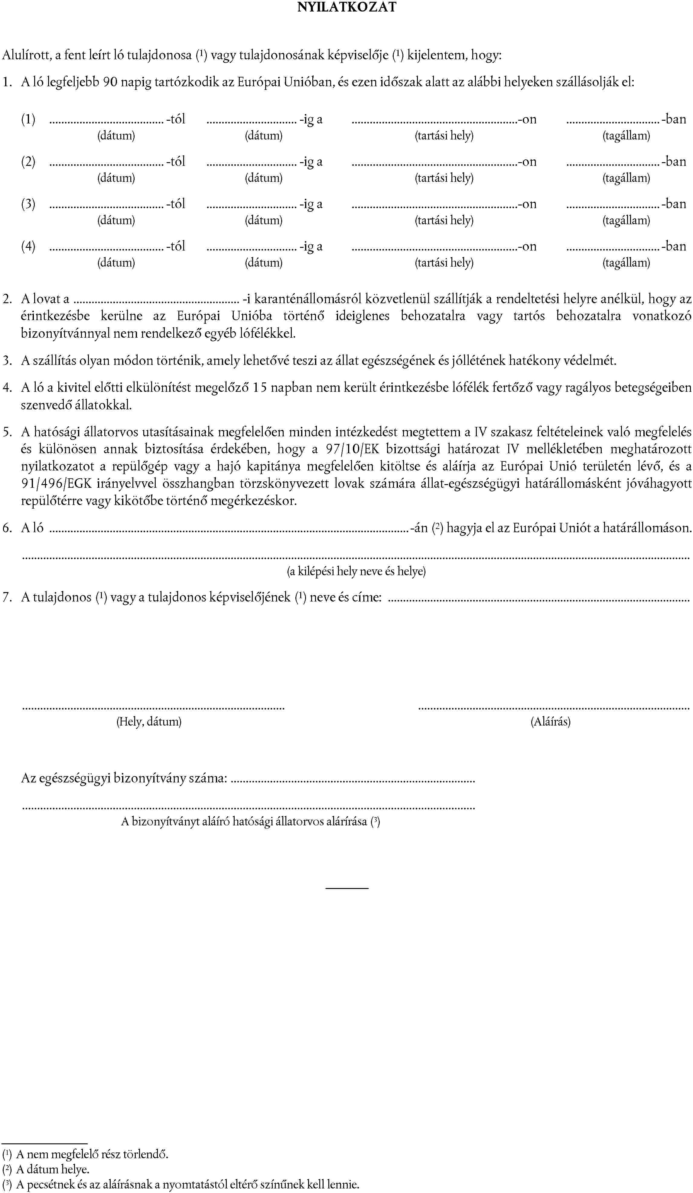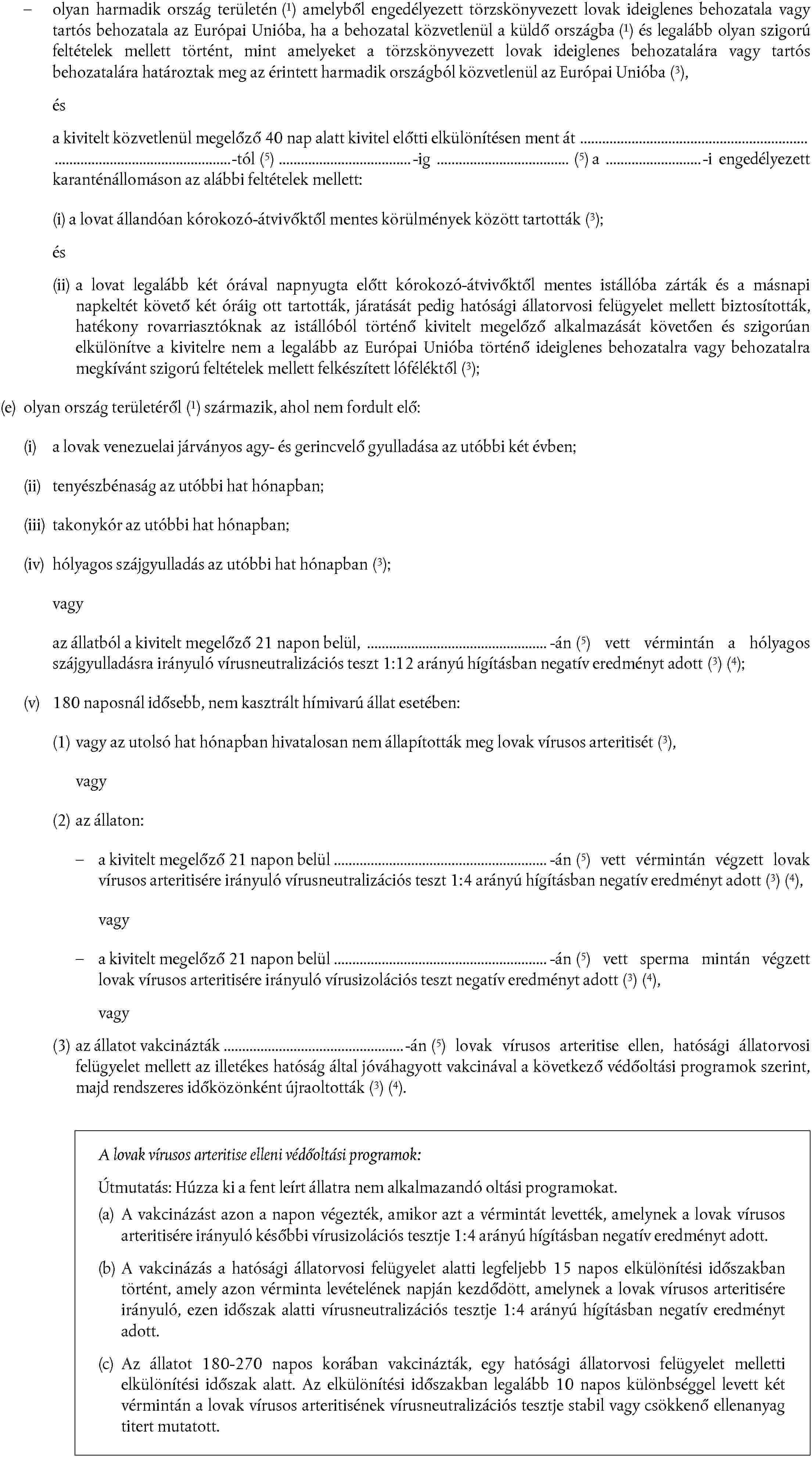 (2) A legutóbb a 2002/841/EK határozattal ( 5 ) módosított 93/197/EGK bizottsági határozat ( 6 ) megállapítja a törzskönyvezett valamint a tenyésztési és termelési célú lófélék behozatalára vonatkozó állat-egészségügyi feltételeket és a szükséges állatorvosi bizonyítványokat.