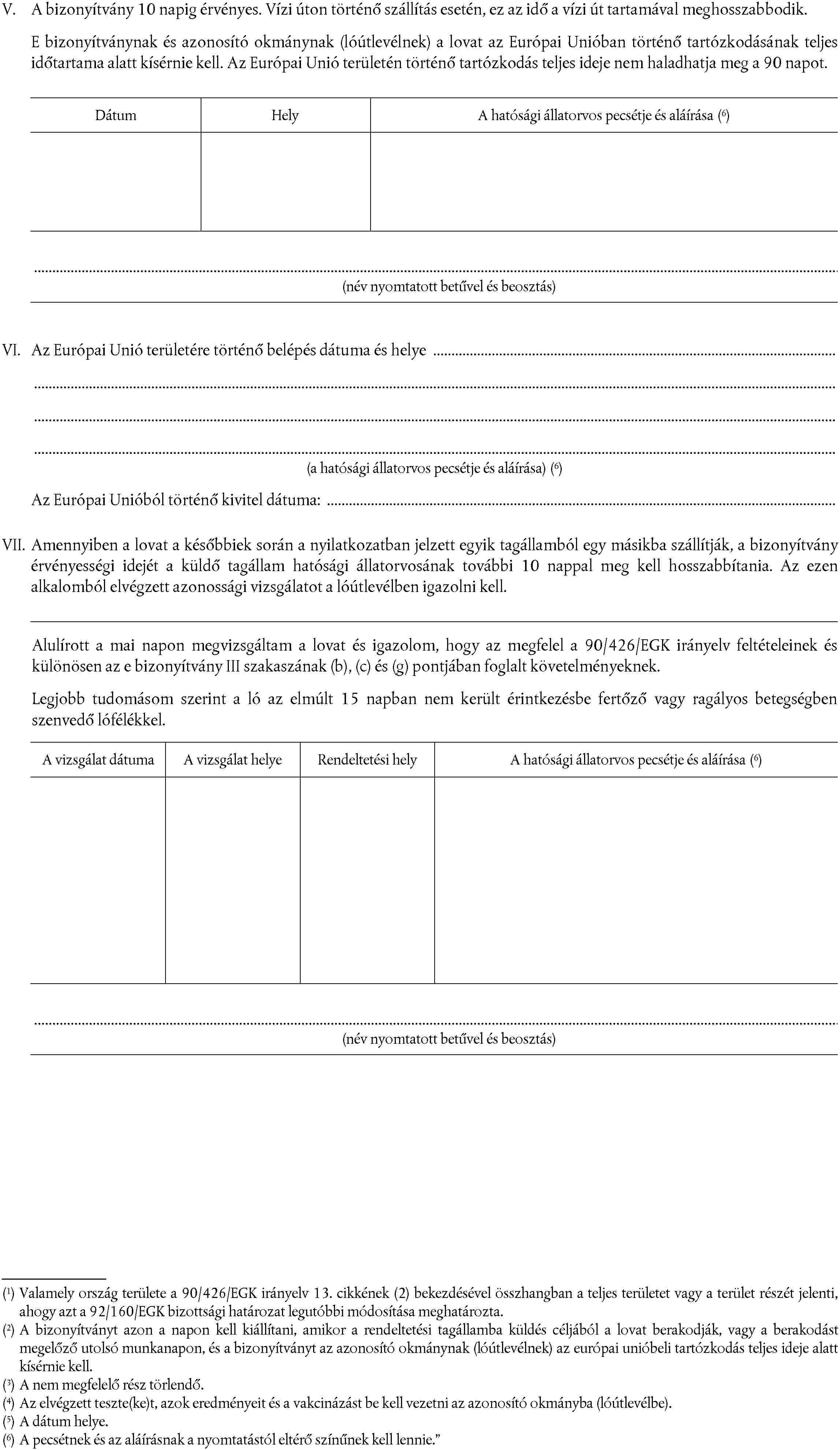 tekintettel a legutóbb a 2002/160/EK bizottsági határozattal ( 1 ) módosított, a lófélék mozgására és harmadik országból történő behozatalára irányadó állat-egészségügyi feltételekről szóló, 1990. június 26-i 90/426/EGK tanácsi irányelvre ( 2 ), és különösen annak 12. cikke (2) bekezdésére, 13. cikke (3) bekezdésére, 14., 15., 16. cikkére, valamint 19. cikkének i. pontjára,