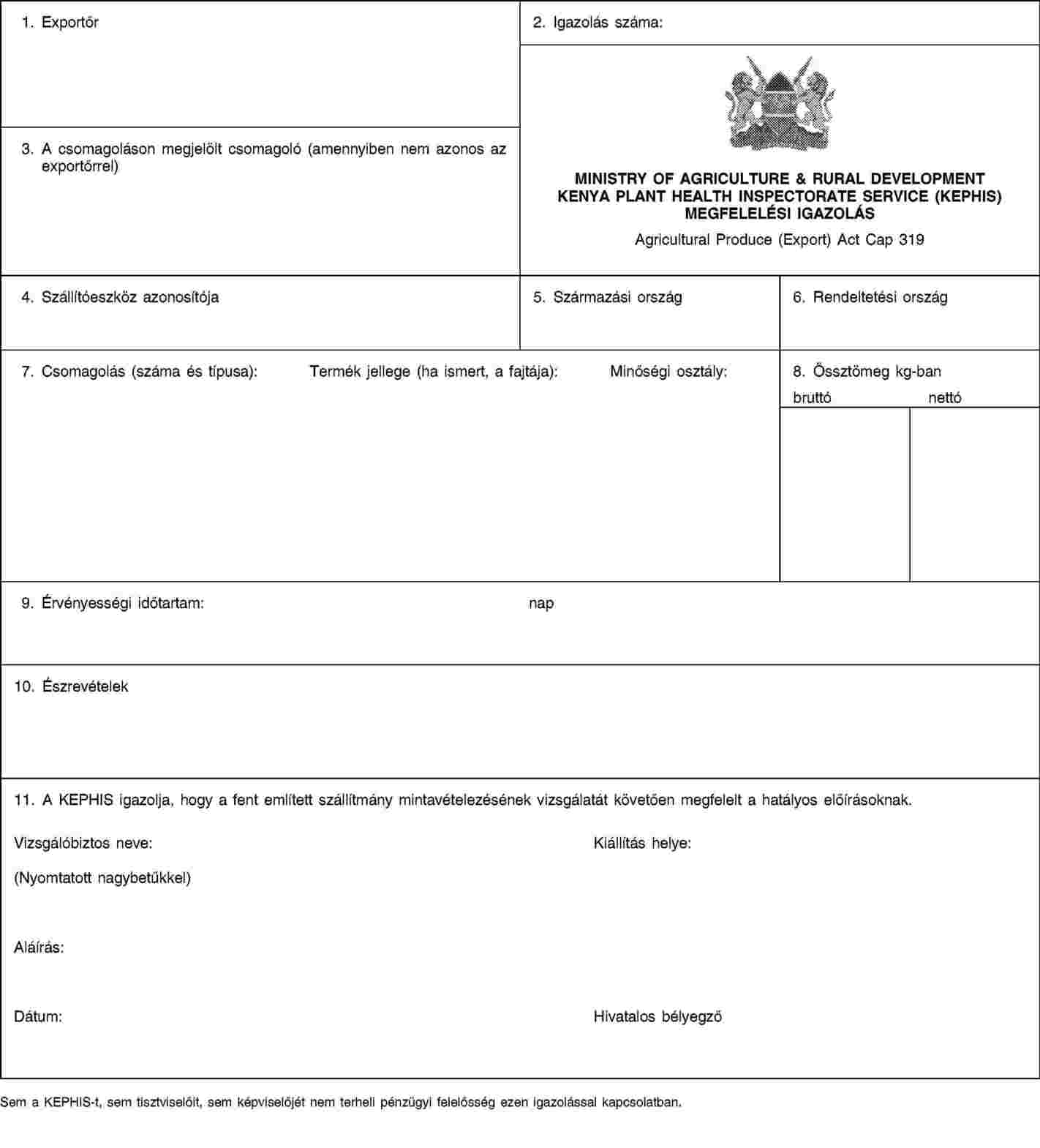 Az 1148/2001/EK rendelet 7. cikke (2) bekezdésének második albekezdésében foglaltak szerinti kenyai hivatalos szerv és ellenőrző szerv adatait e rendelet I. melléklete tartalmazza.