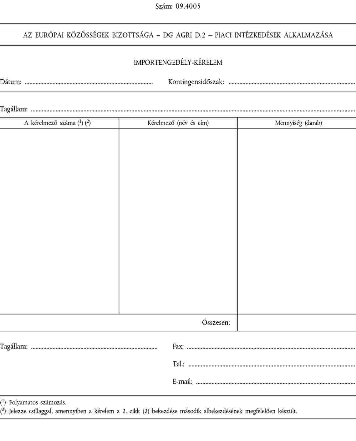 (3) Az importengedélyre vonatkozó biztosíték darabonként 15 euró, azt a kérelmezőnek az engedélykérelemmel együtt kell benyújtania.