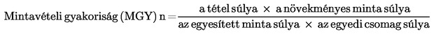 - mintavételi gyakoriság (MGY): minden "n"-edik zsák vagy zacskó, amelyből egy növekményes mintát kell venni (a törtszámokat a legközelebbi egész számra kell kerekíteni).