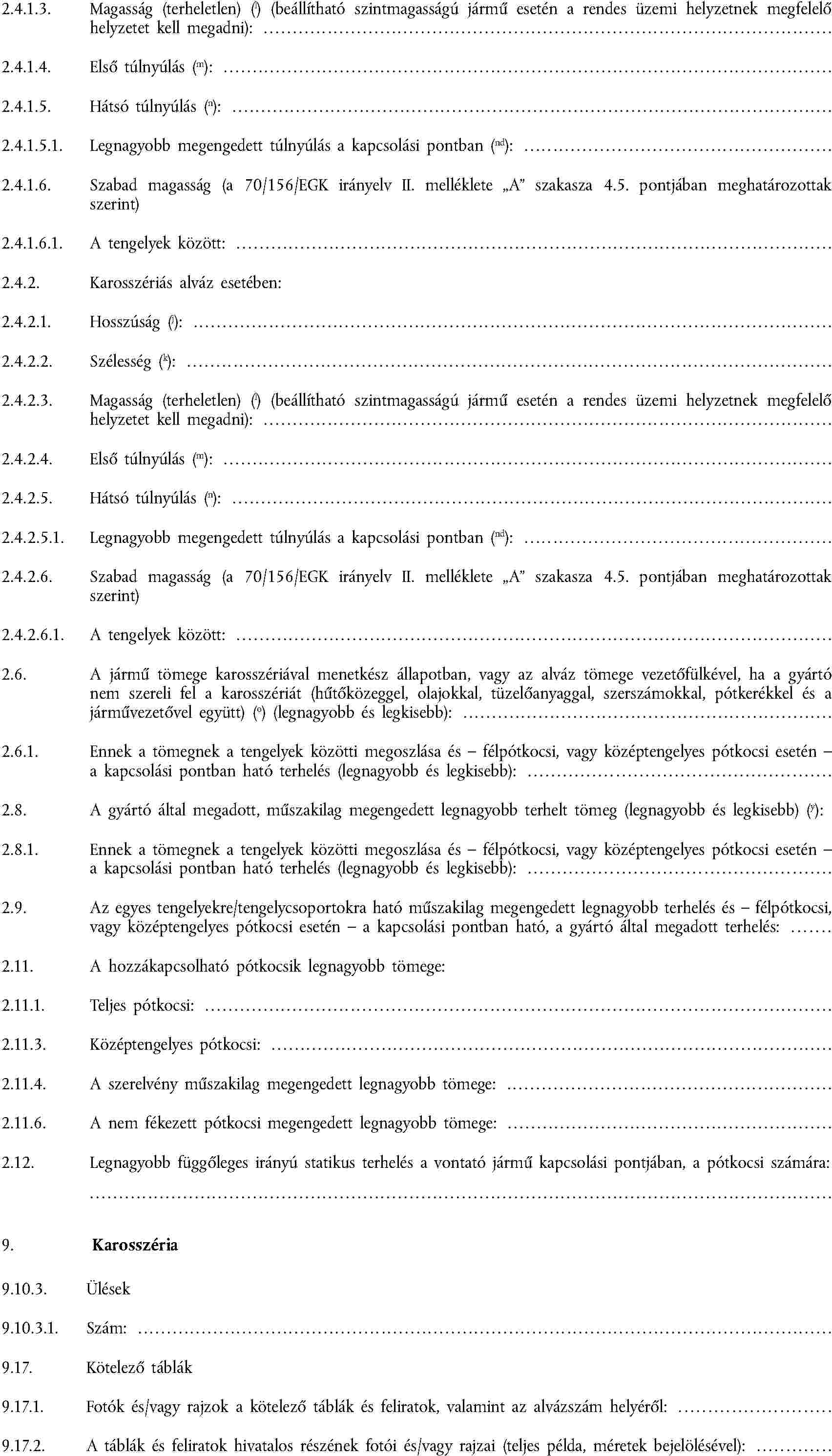 - a b) illetve c) oszlopban említett feltételek alapján ellenőrzött tömeg, és tengelyterhelések nem haladhatják meg a gyártó által meghatározott engedélyezett legnagyobb tömegadatokat,