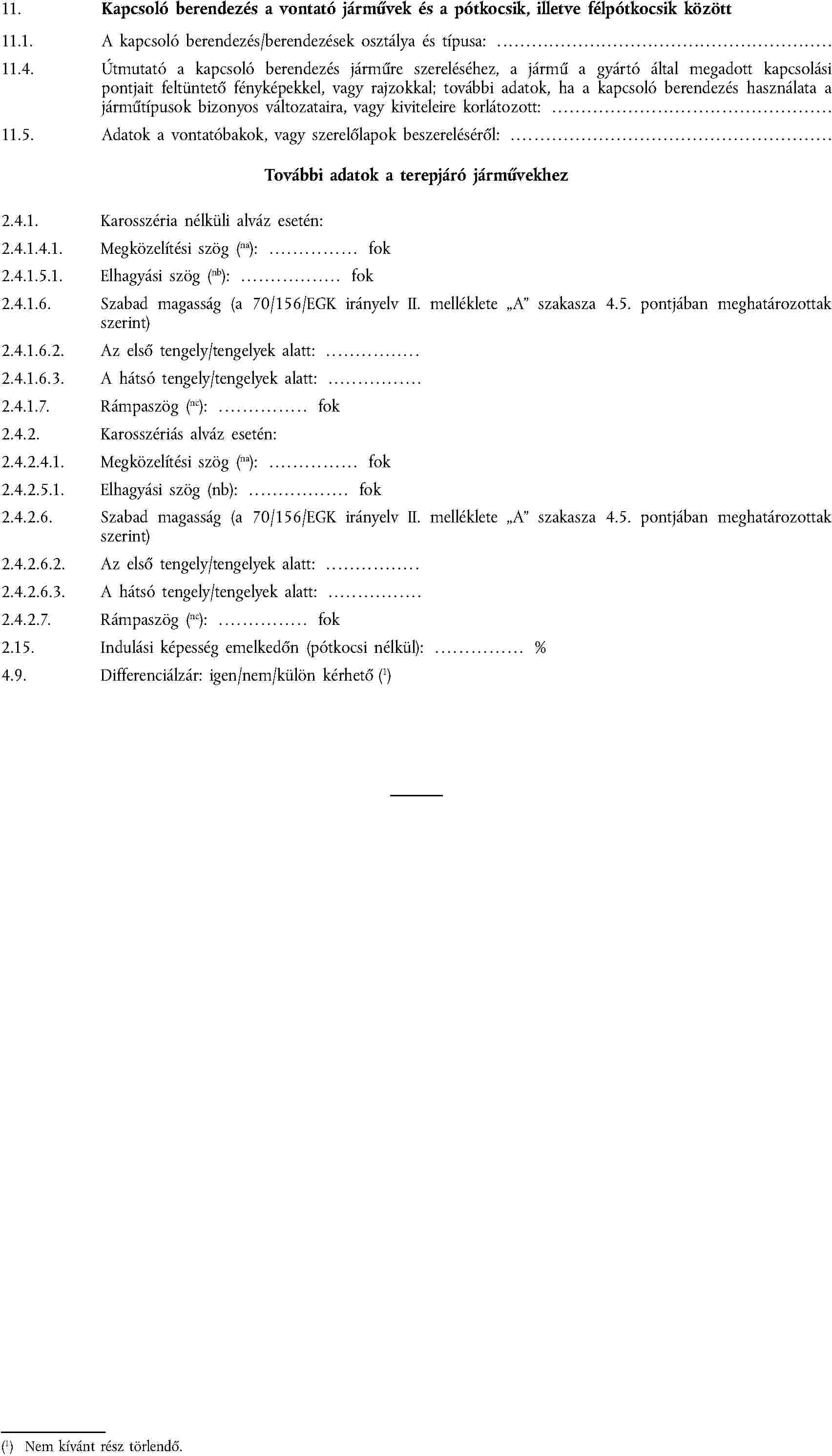 3.2.4. Ha a jármű gyártója a járművet kapcsoló berendezéssel szereli fel, akkor a berendezésen, vagy annak közelében a járművön fel kell tüntetnie a kapcsolási pontnál fellépő legnagyobb statikus függőleges irányú terhelés értékét.
