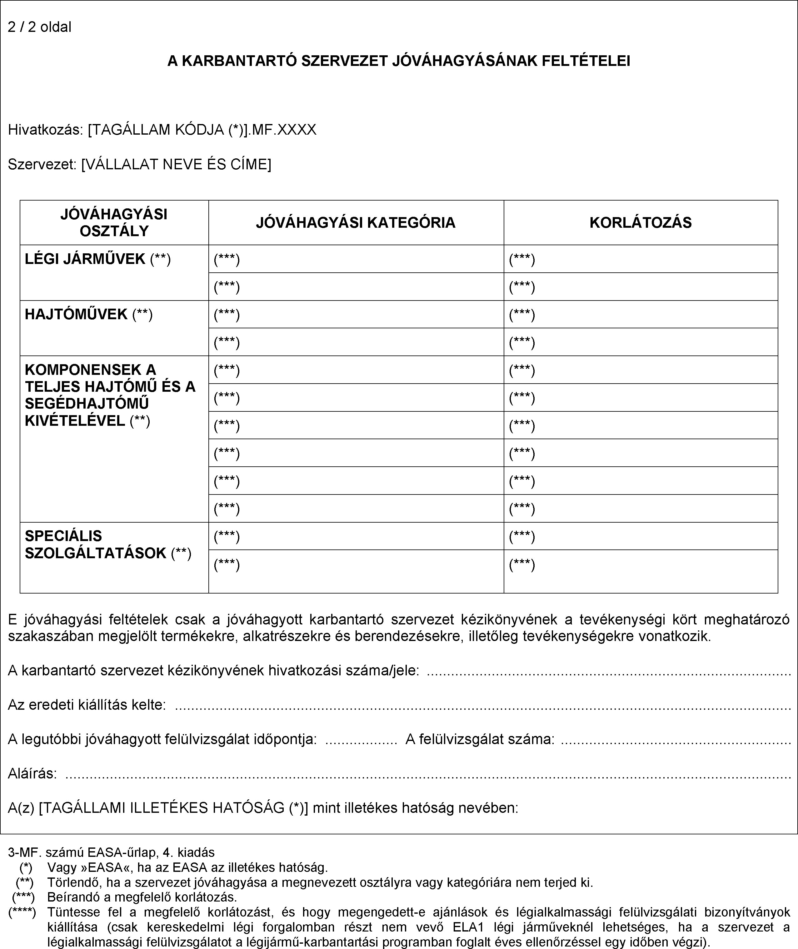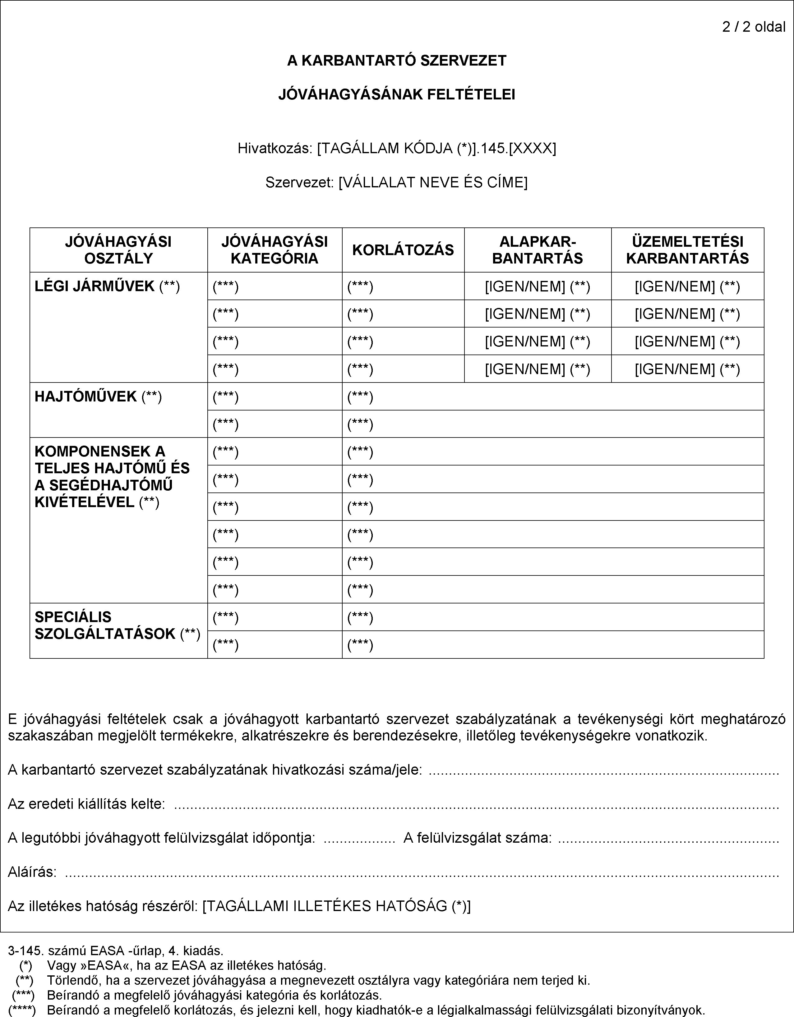 Kombinált légialkalmassági szervezet (CAO) részére kiállított bizonyítvány - 3. EASA-űrlap (CAO)
