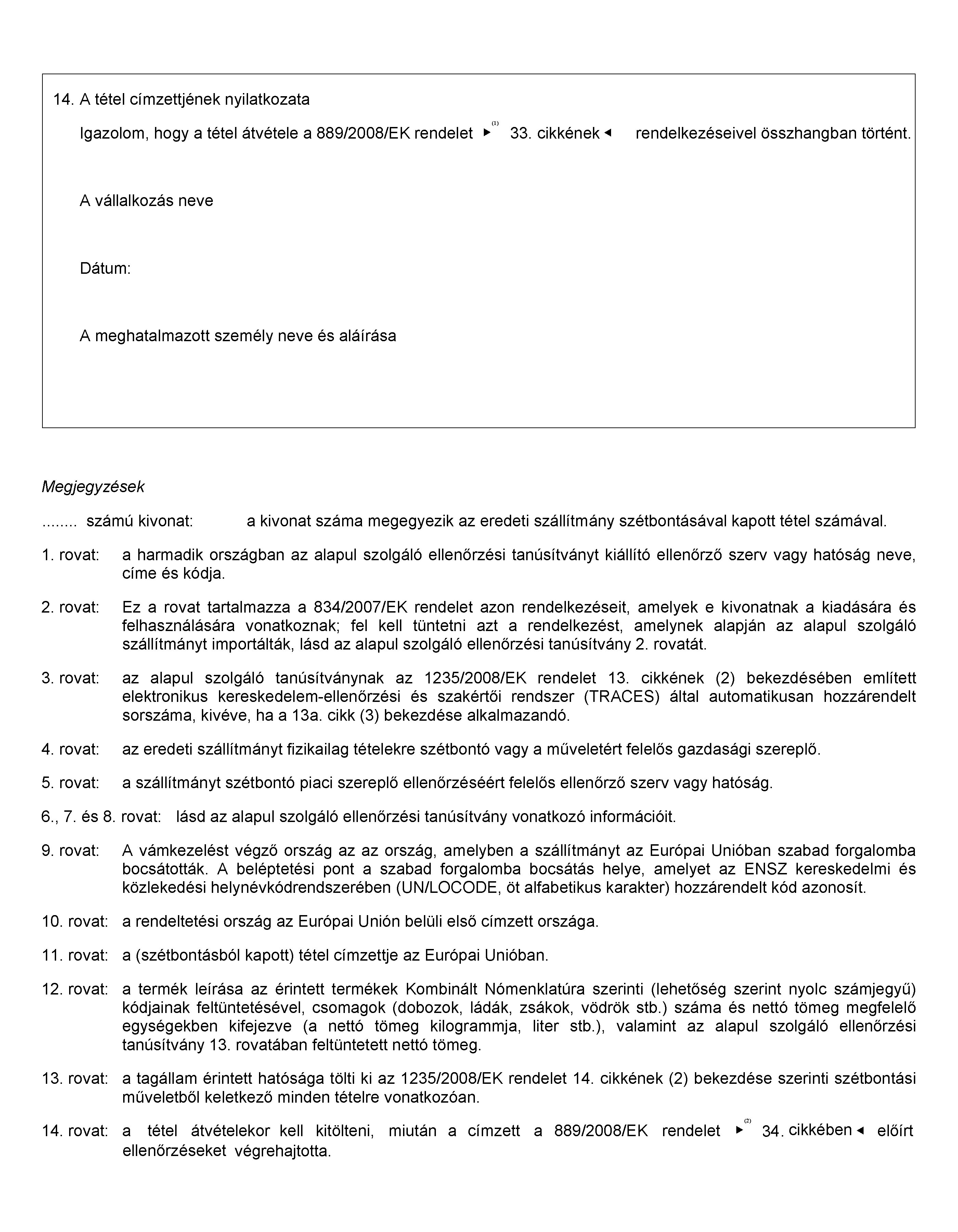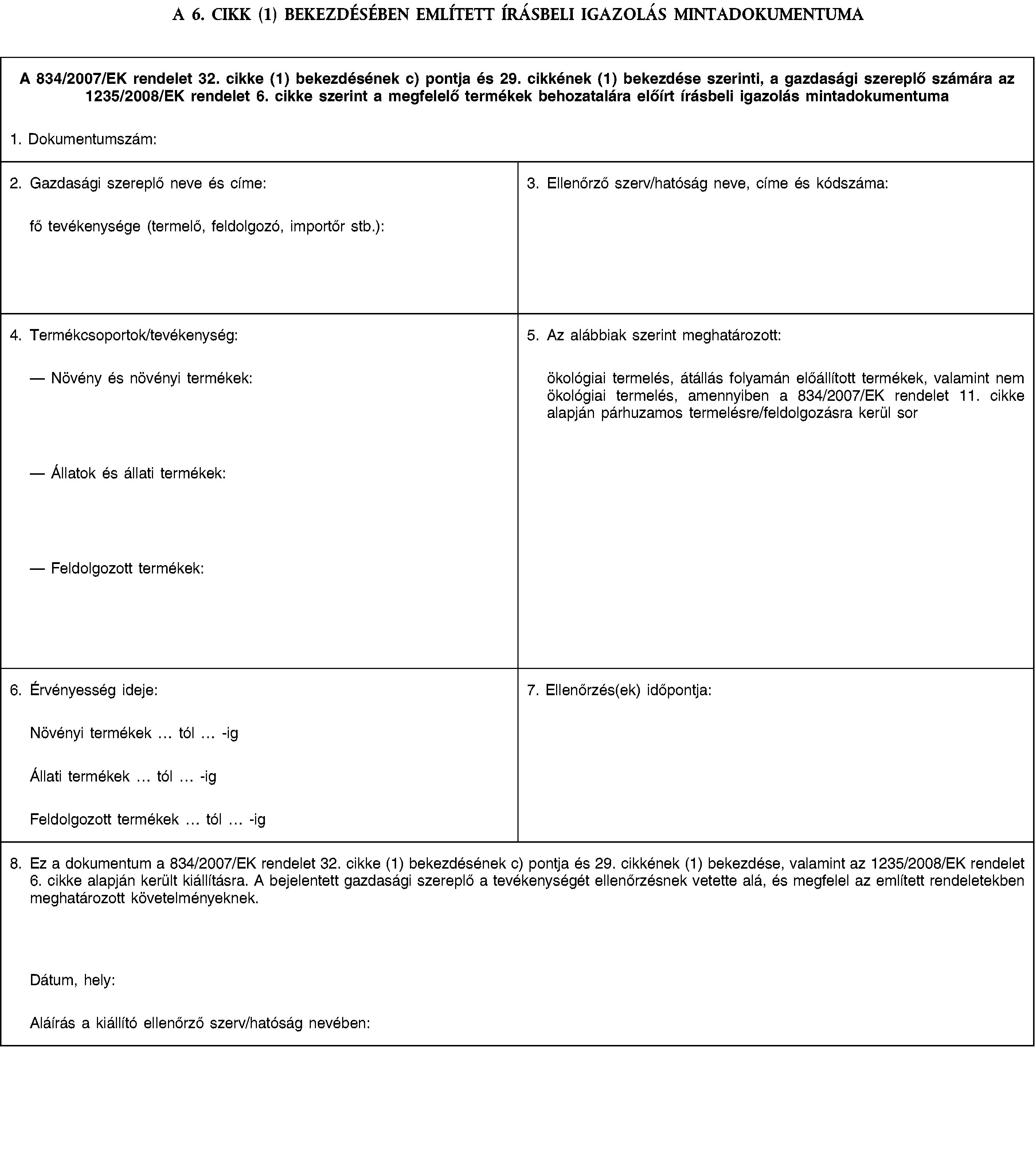 2. "írásbeli igazolás": a 889/2008/EK bizottsági rendelet ( 1 ) 68. cikkében és e rendelet 6. cikkében említett dokumentum, amelynek mintája e rendelet II. mellékletében található;