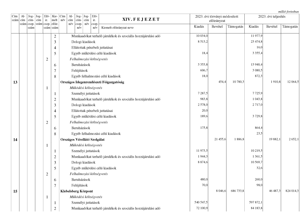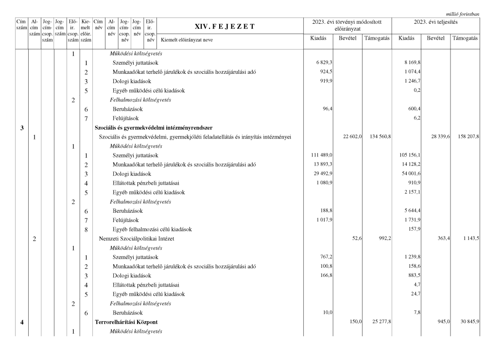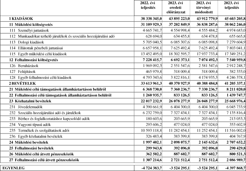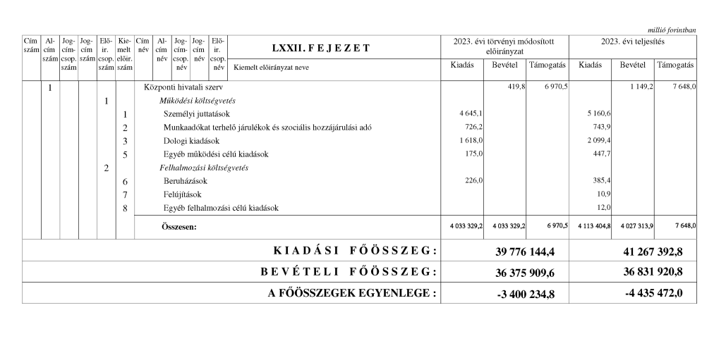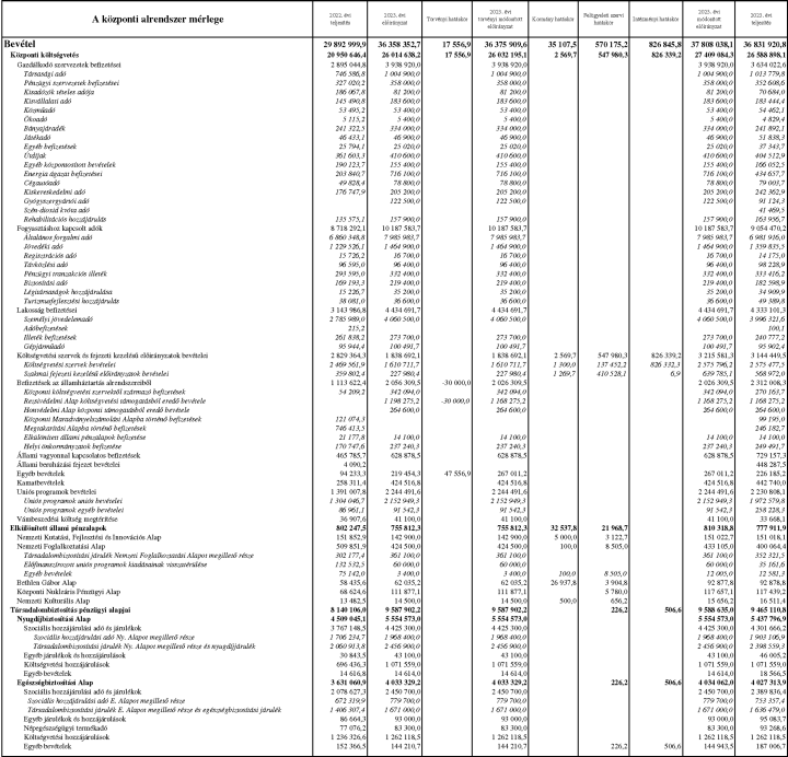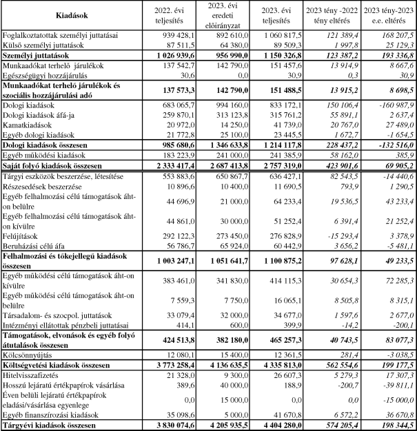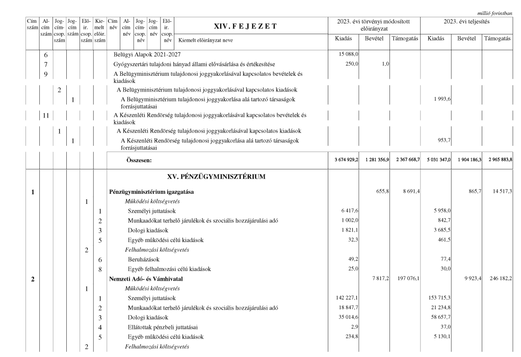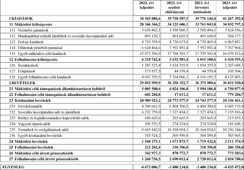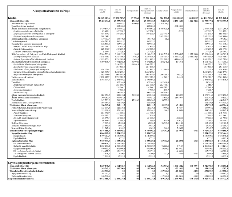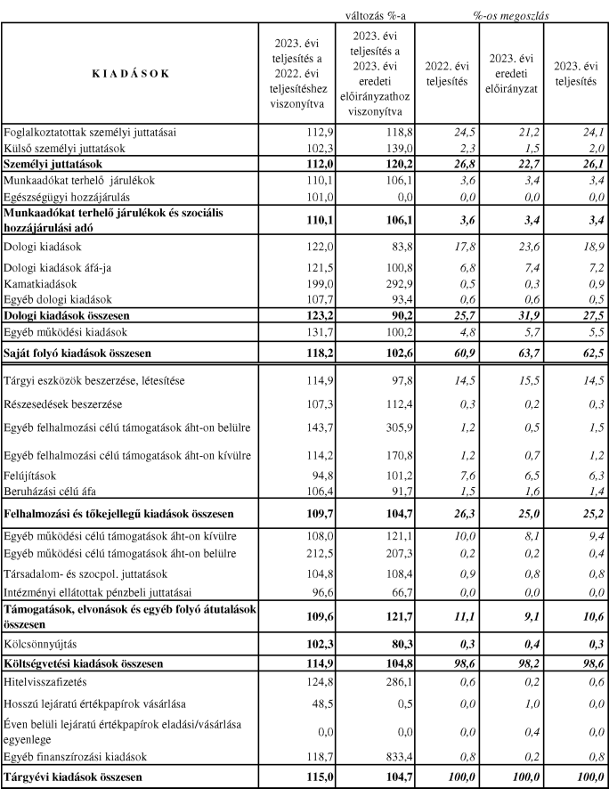 A 2023. ÉVI KÖZPONTI KÖLTSÉGVETÉS VÉGREHAJTÁSA