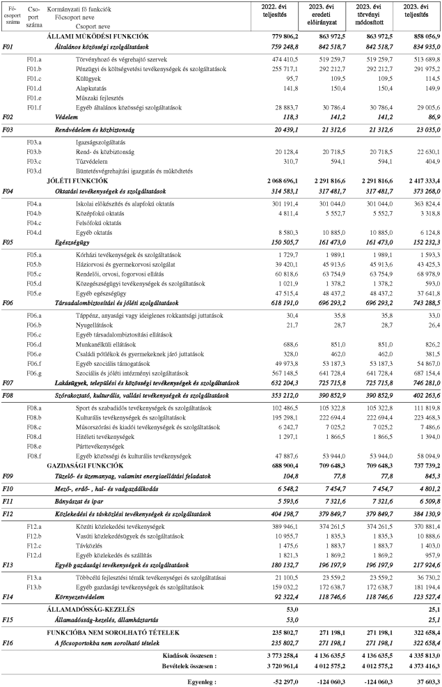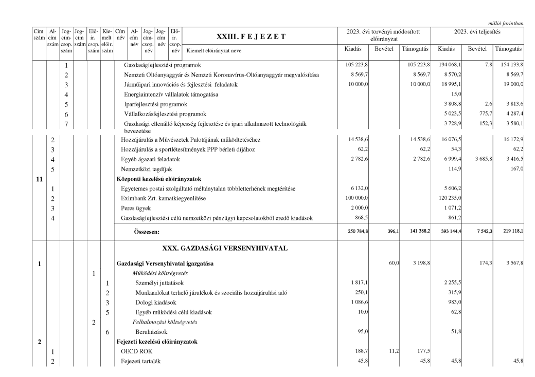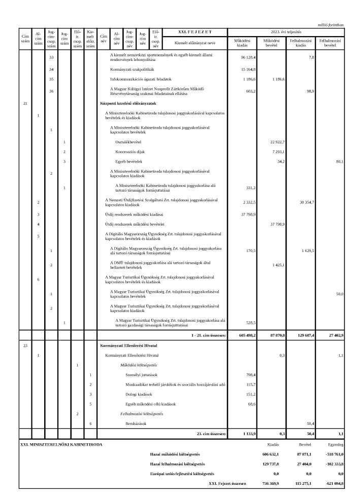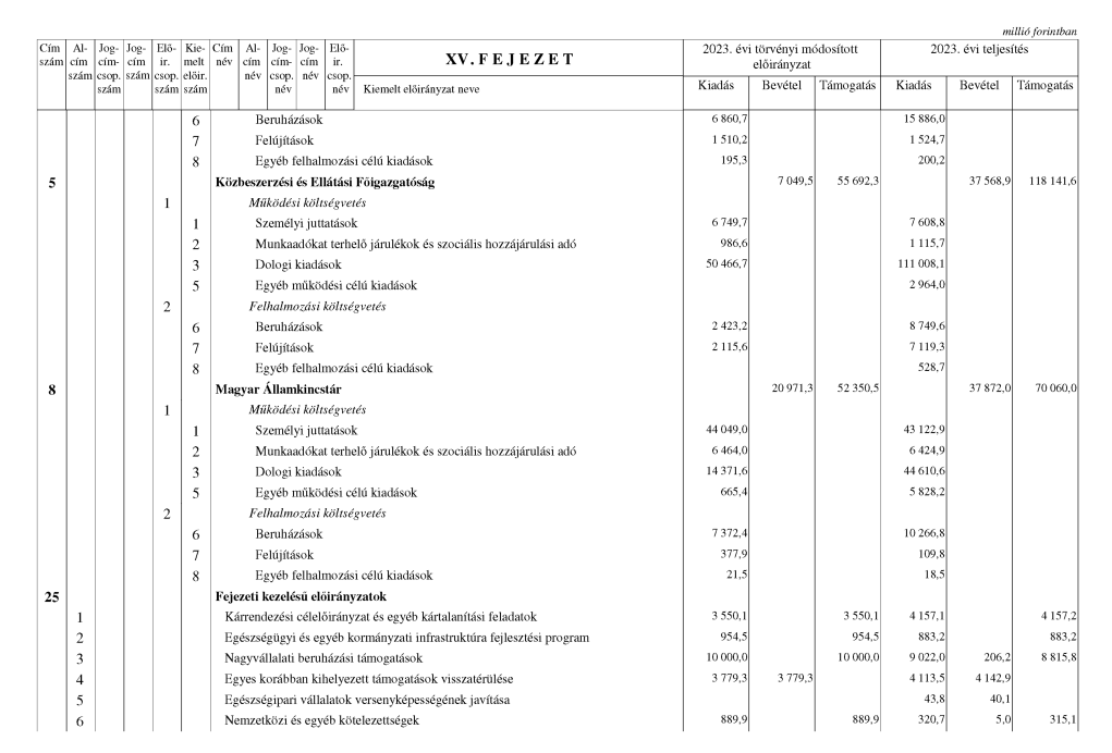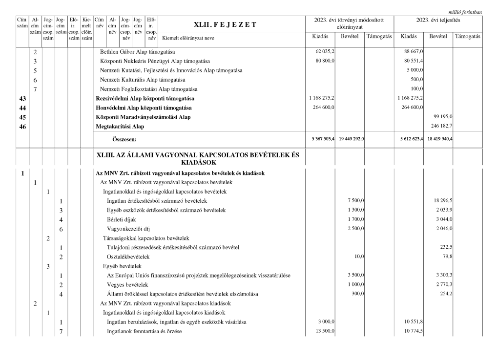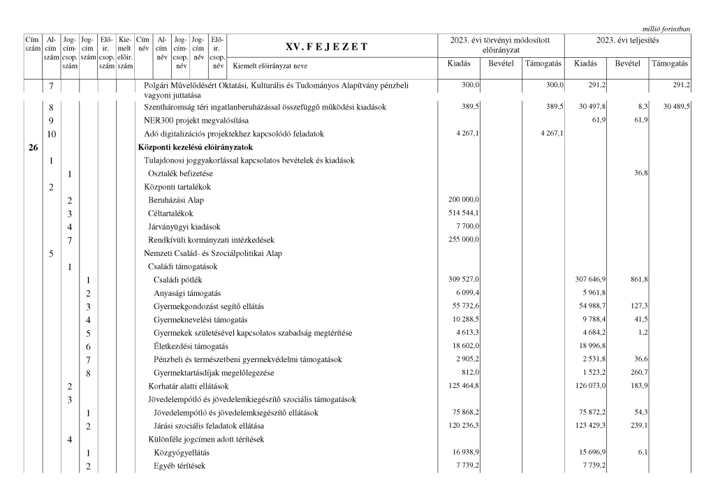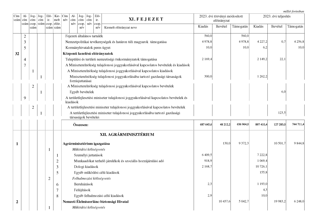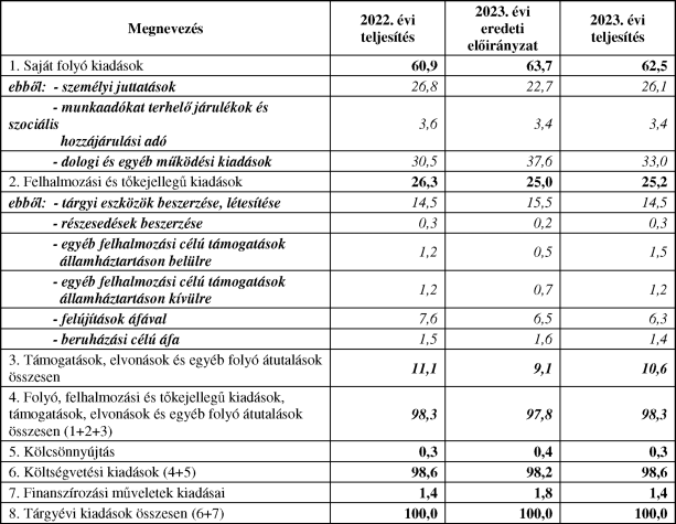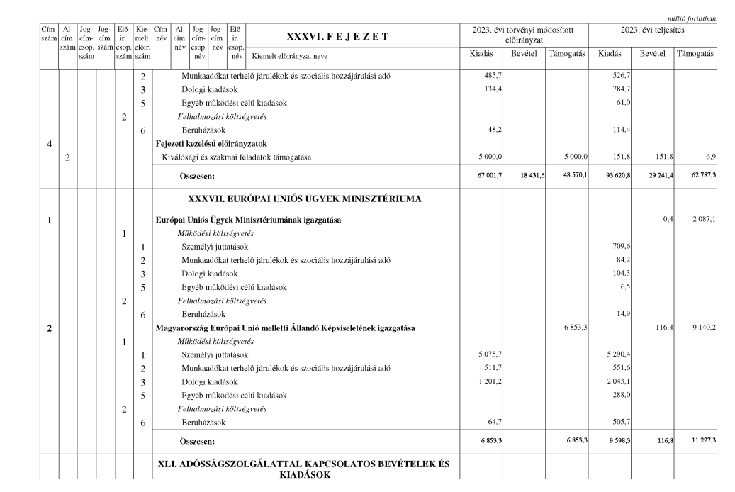 A 2023. ÉVI KÖZPONTI KÖLTSÉGVETÉS VÉGREHAJTÁSA