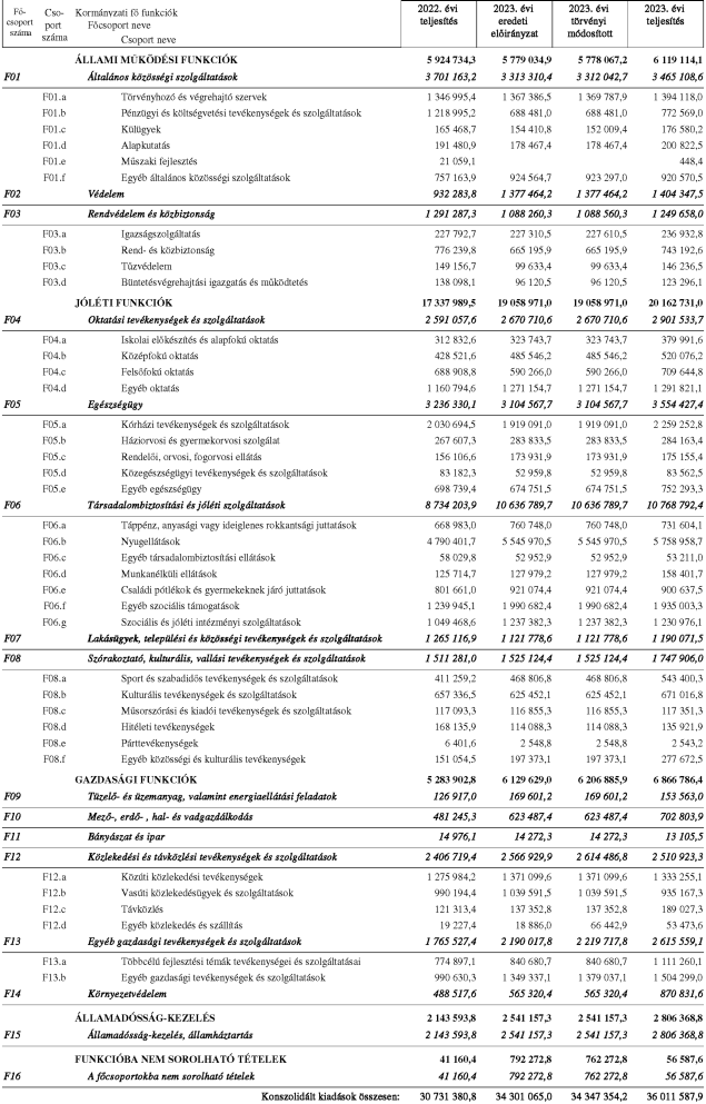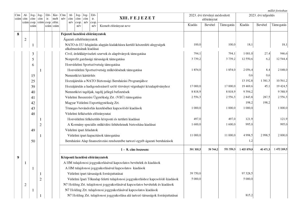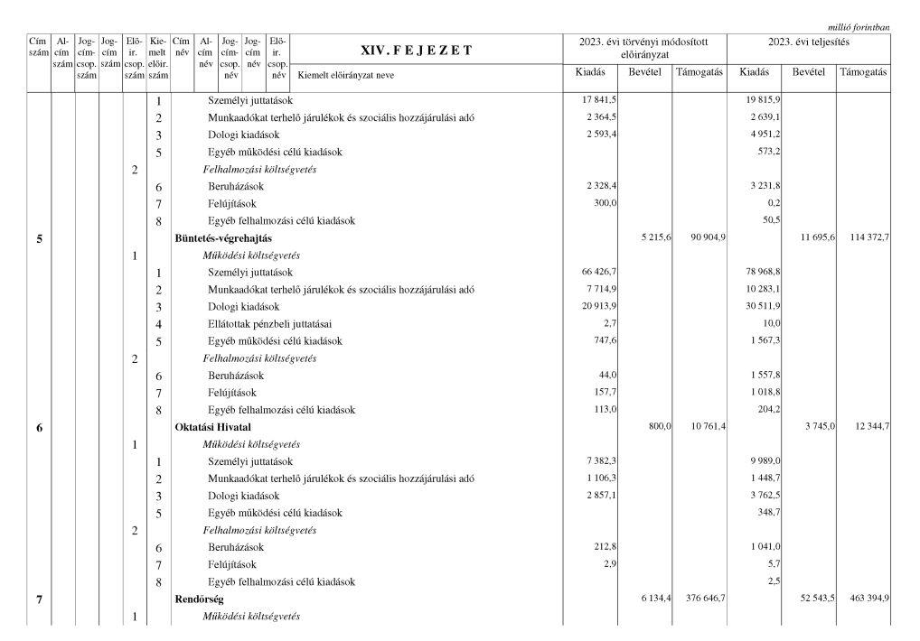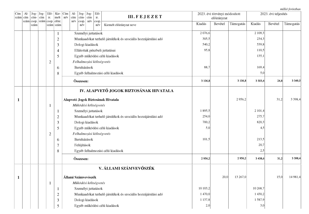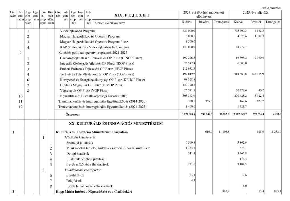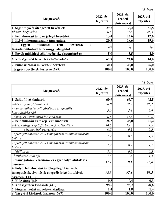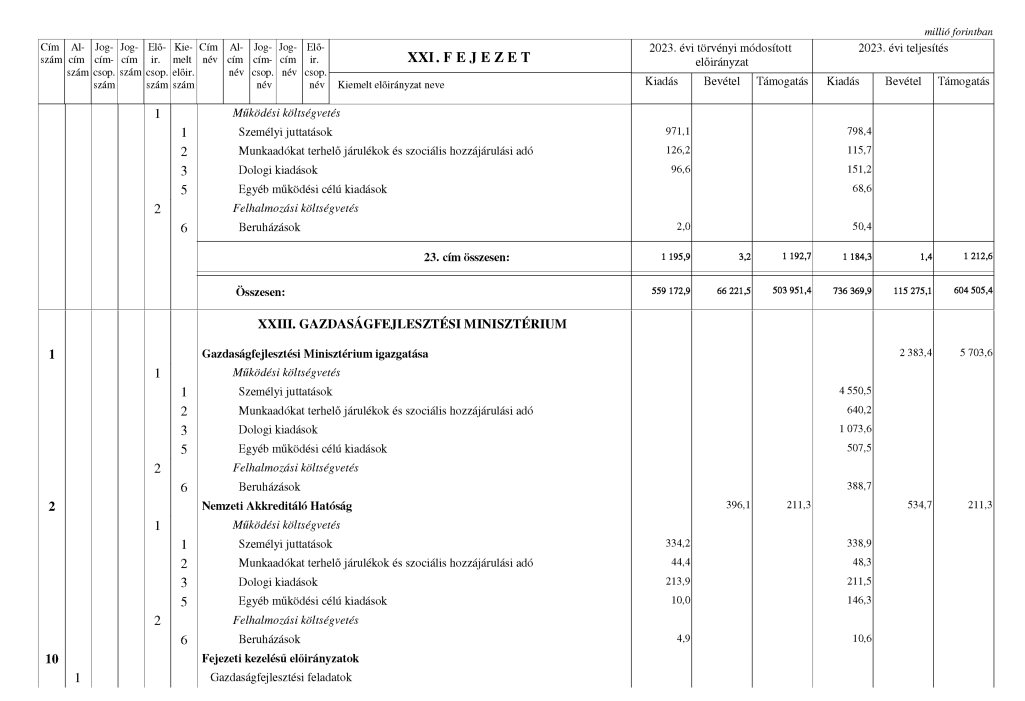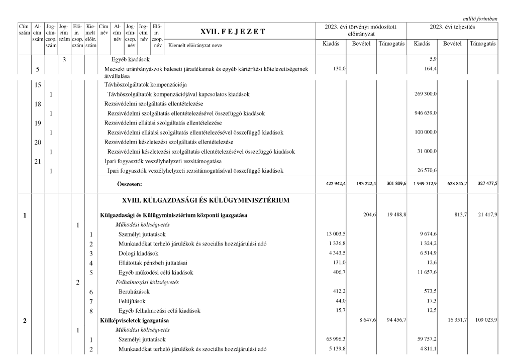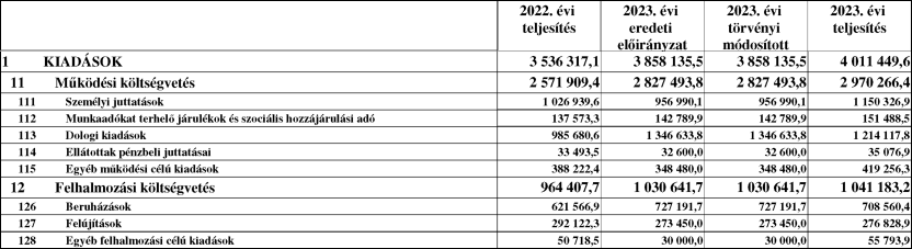 A 2023. ÉVI KÖZPONTI KÖLTSÉGVETÉS VÉGREHAJTÁSA