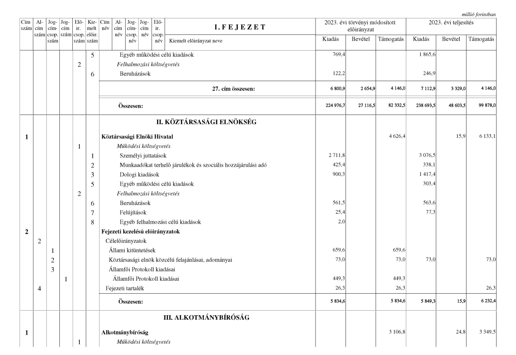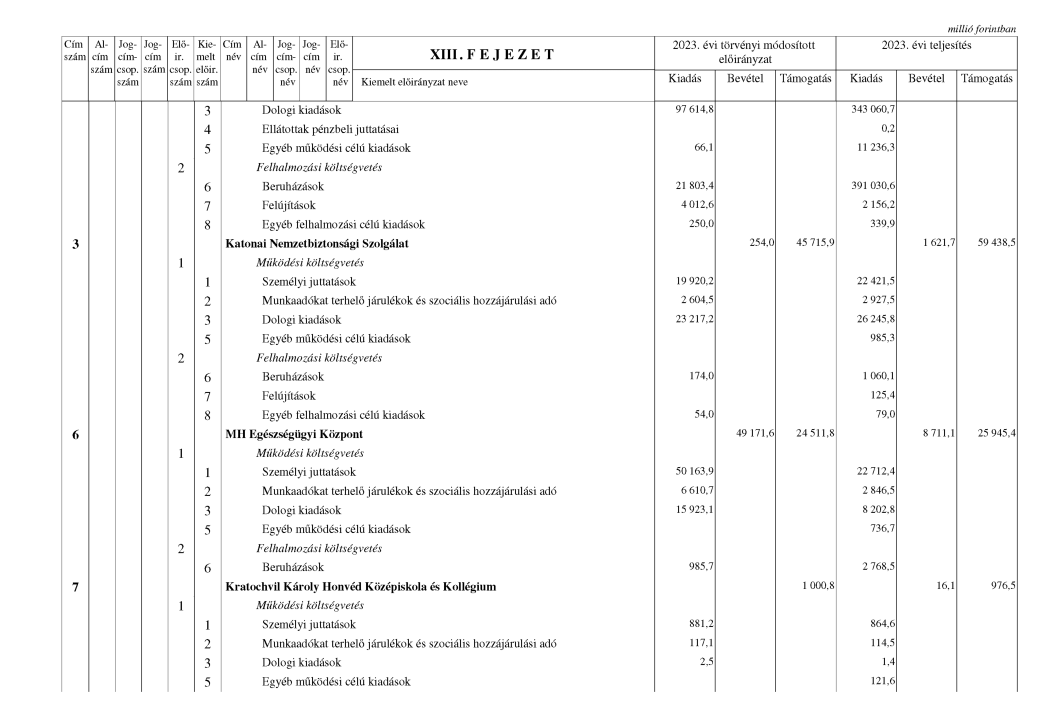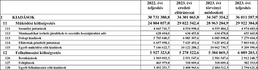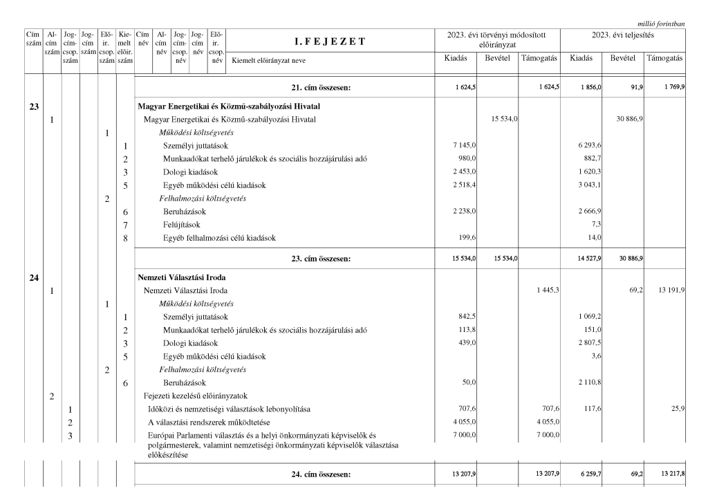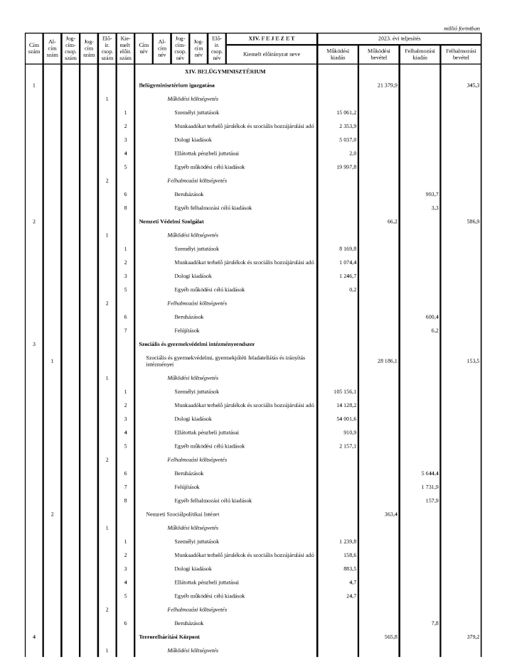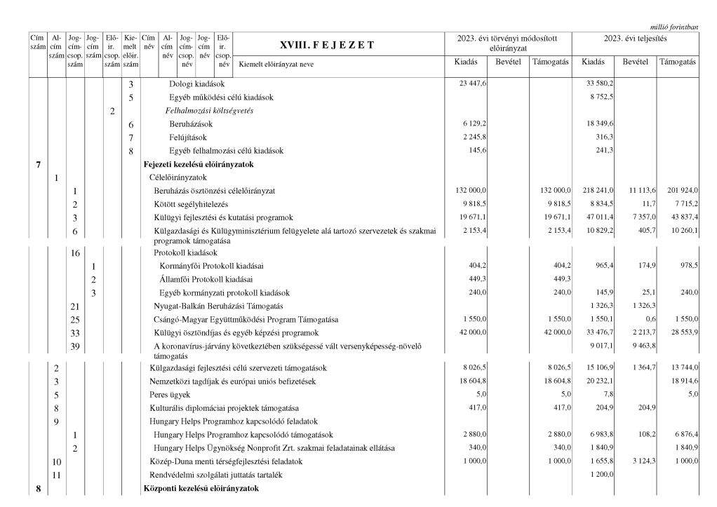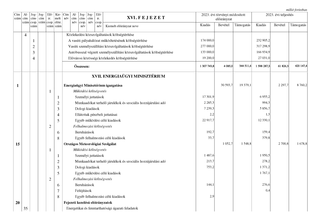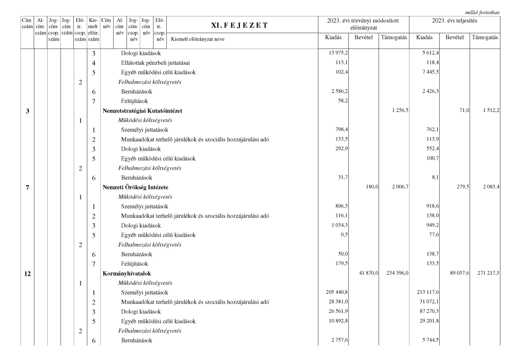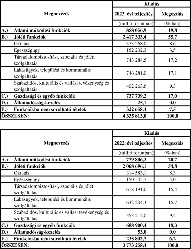 A 2023. ÉVI KÖZPONTI KÖLTSÉGVETÉS VÉGREHAJTÁSA