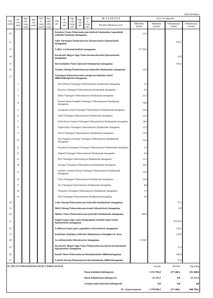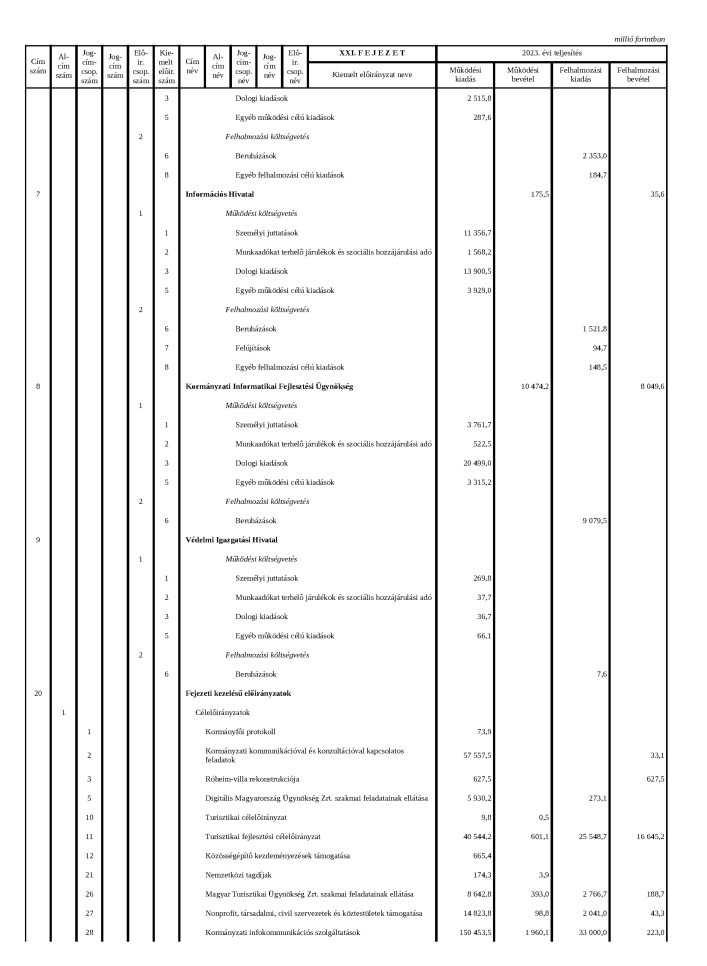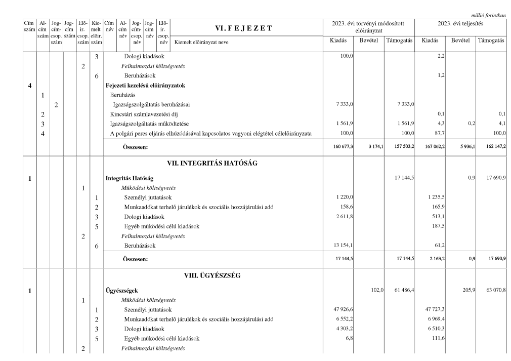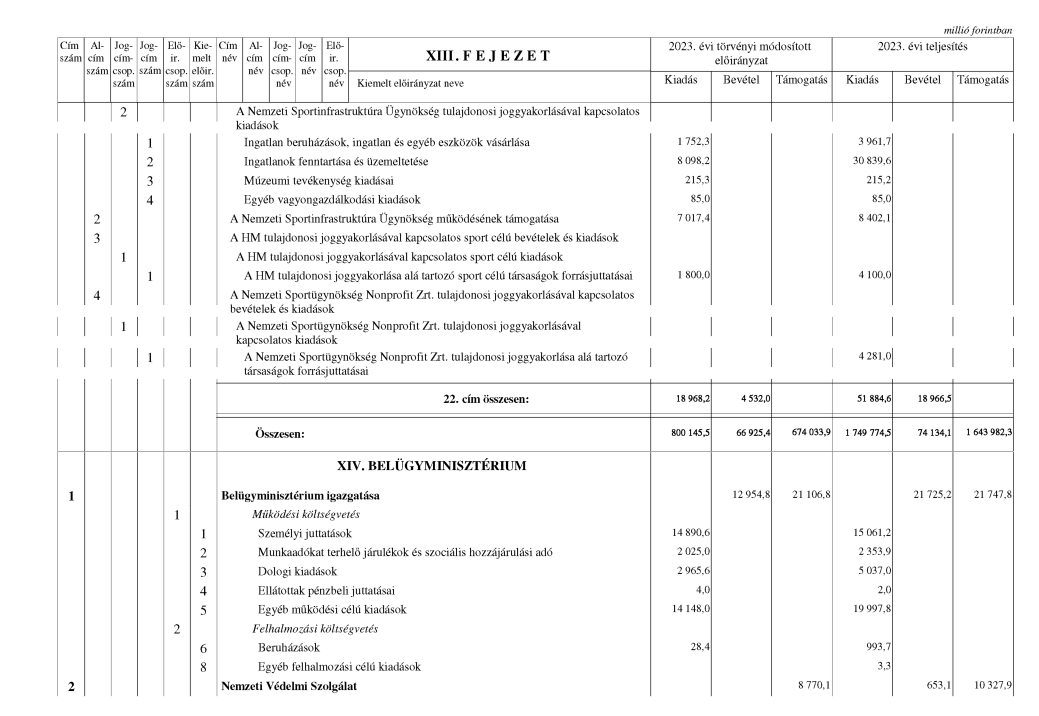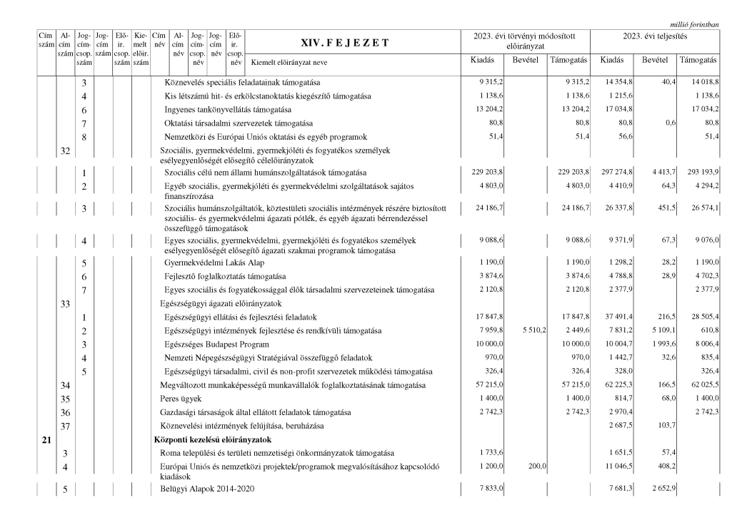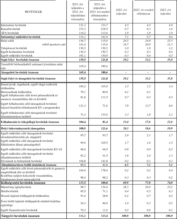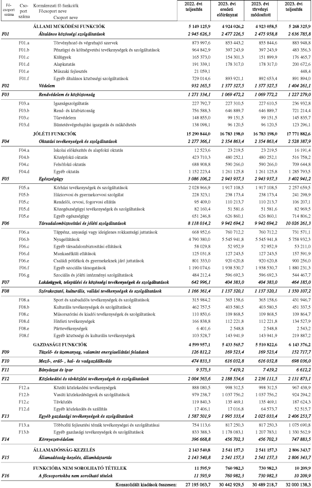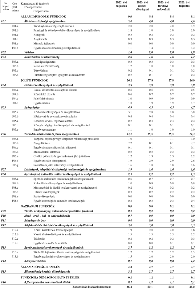 A 2023. ÉVI KÖZPONTI KÖLTSÉGVETÉS VÉGREHAJTÁSA