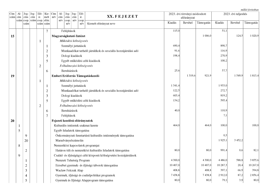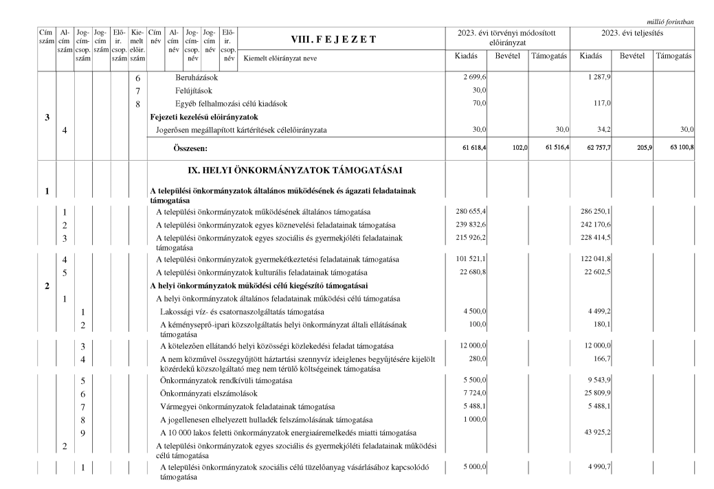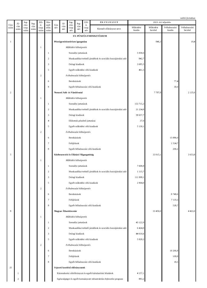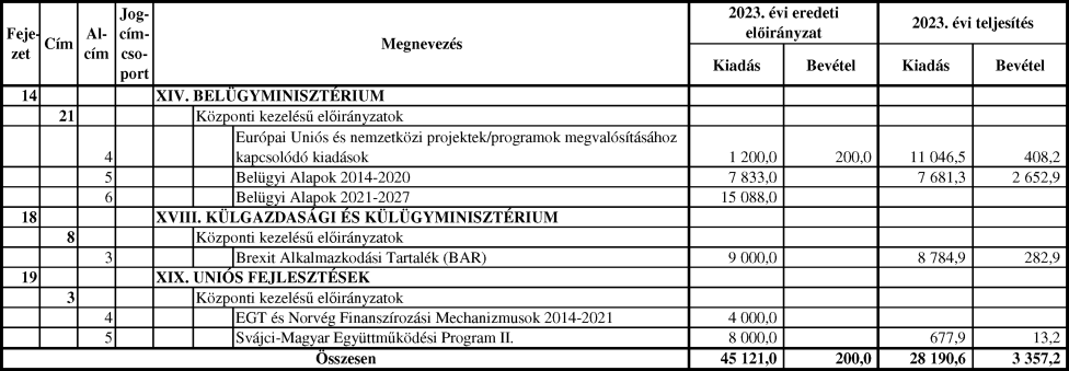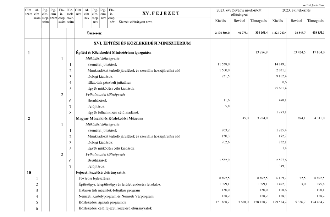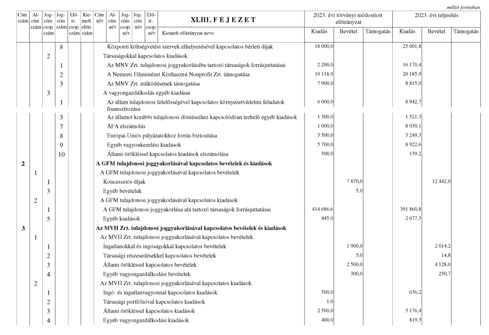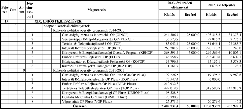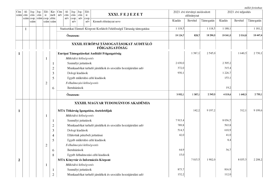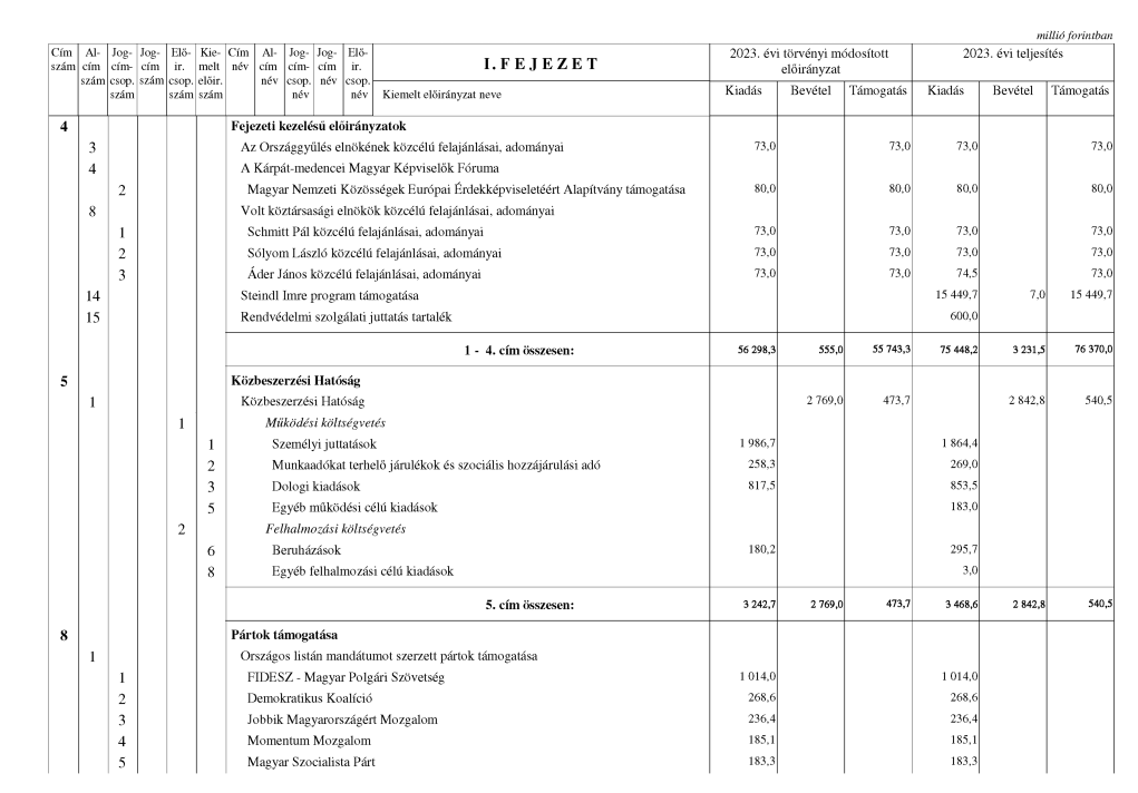 A 2023. ÉVI KÖZPONTI KÖLTSÉGVETÉS VÉGREHAJTÁSA