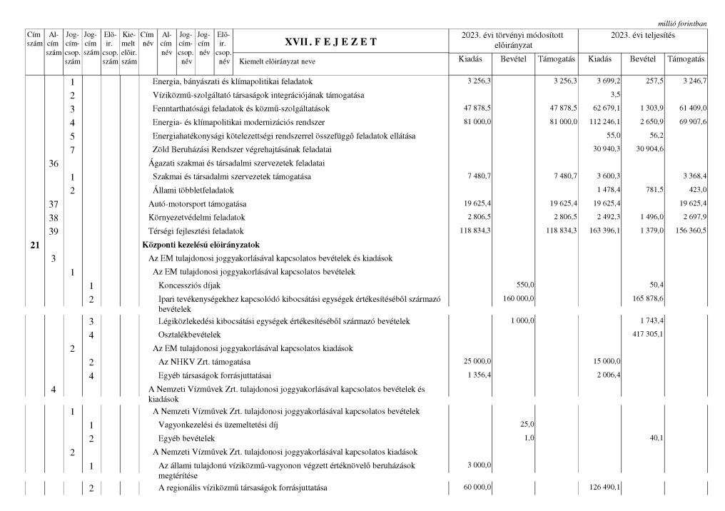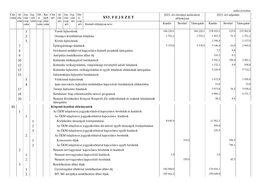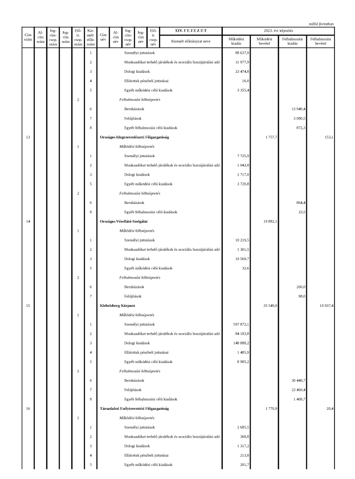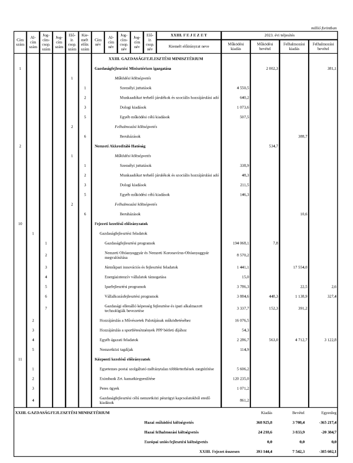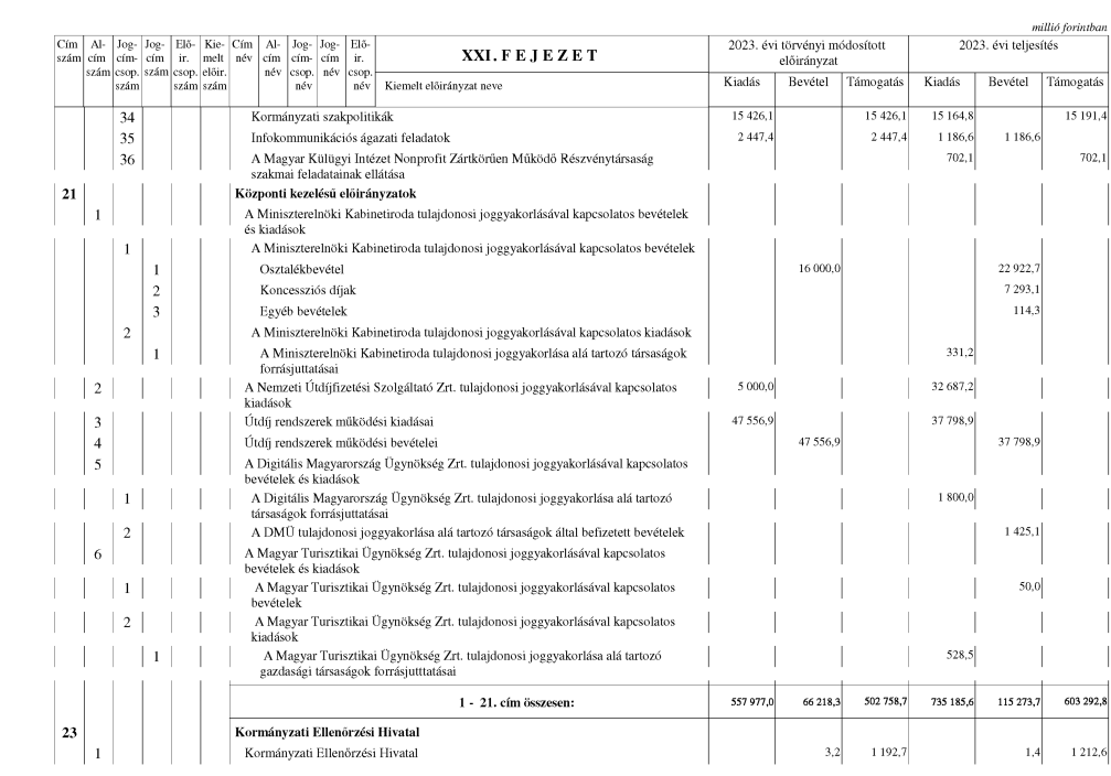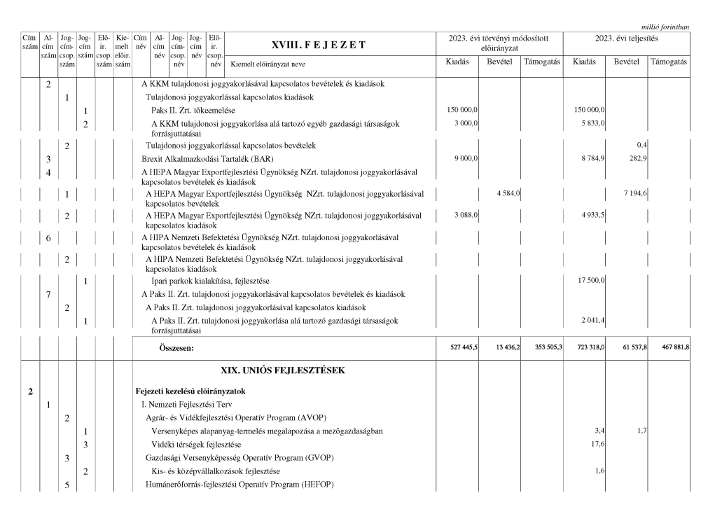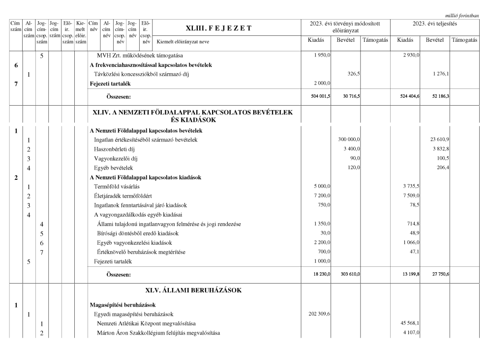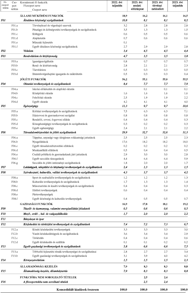 A 2023. ÉVI KÖZPONTI KÖLTSÉGVETÉS VÉGREHAJTÁSA