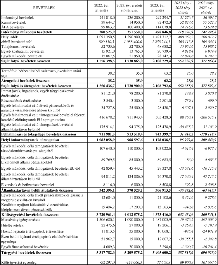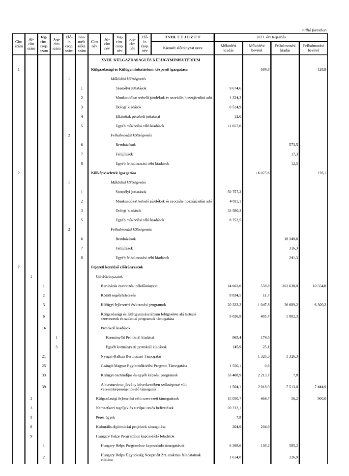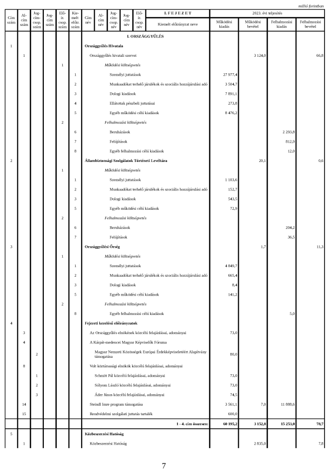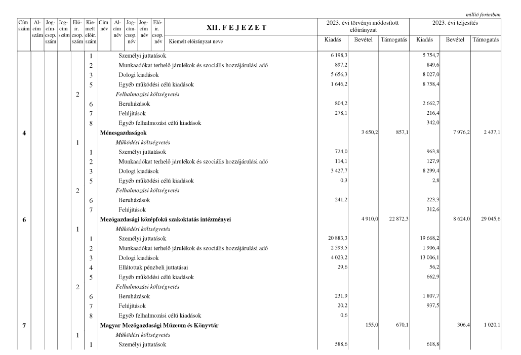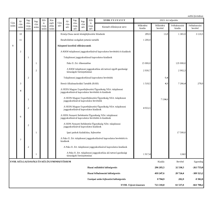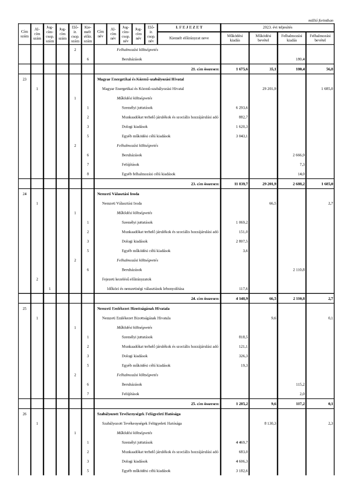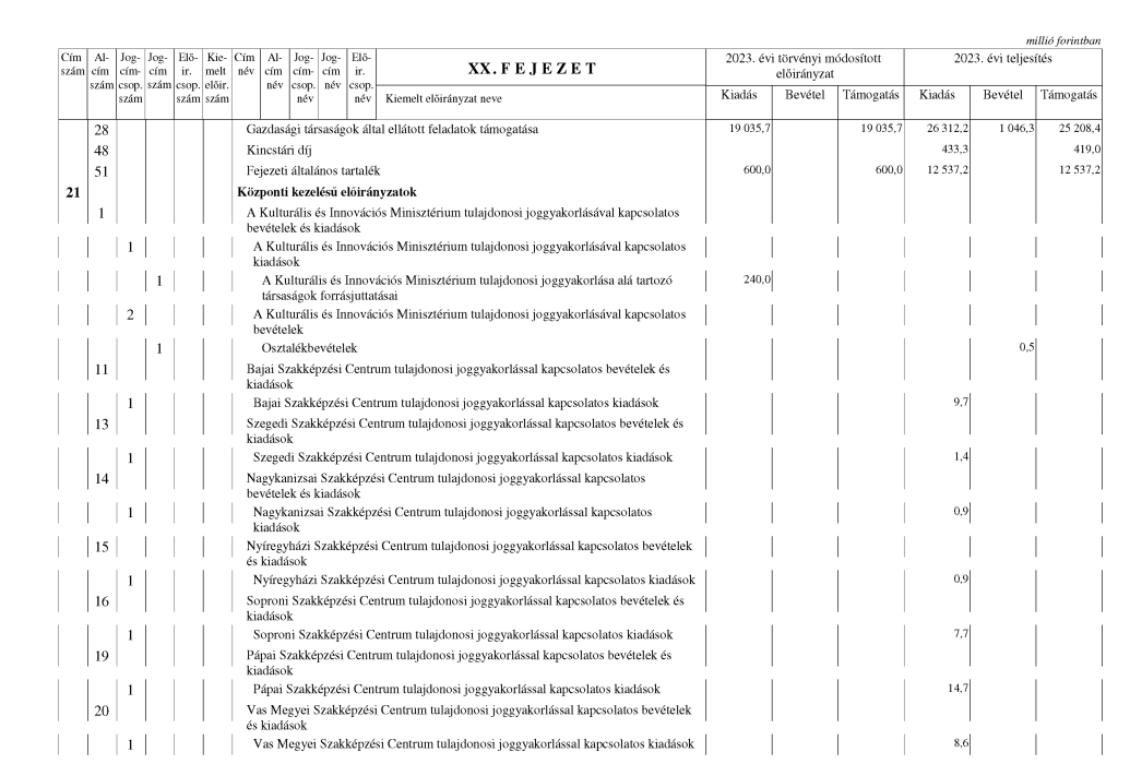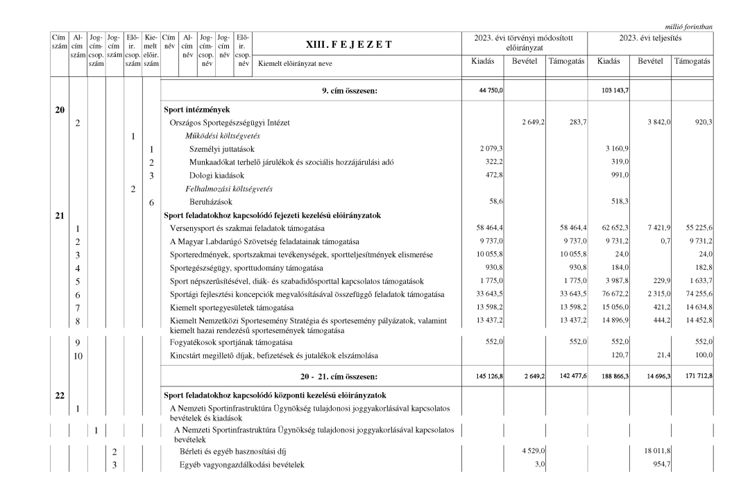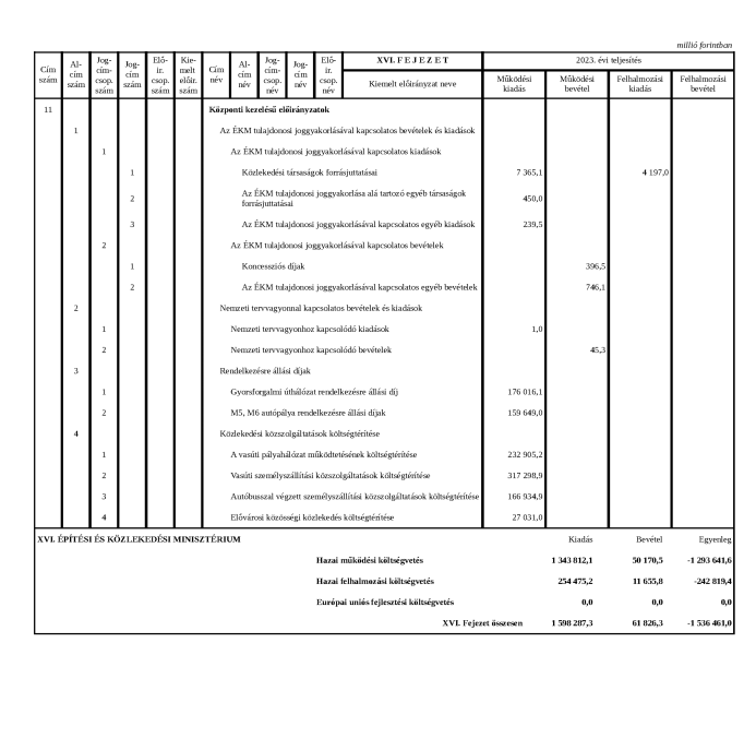 A 2023. ÉVI KÖZPONTI KÖLTSÉGVETÉS VÉGREHAJTÁSA