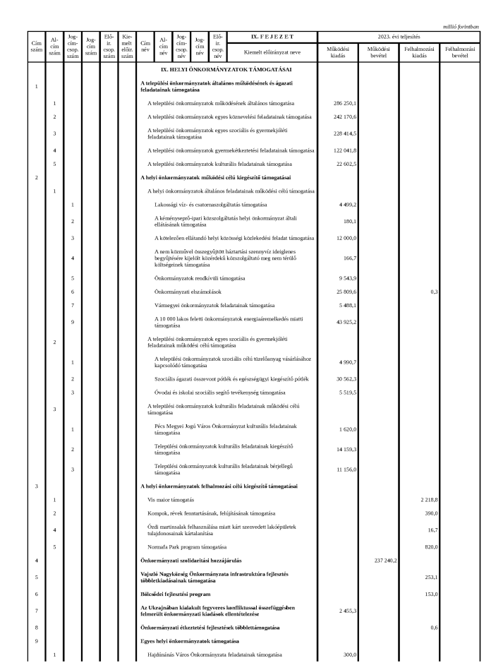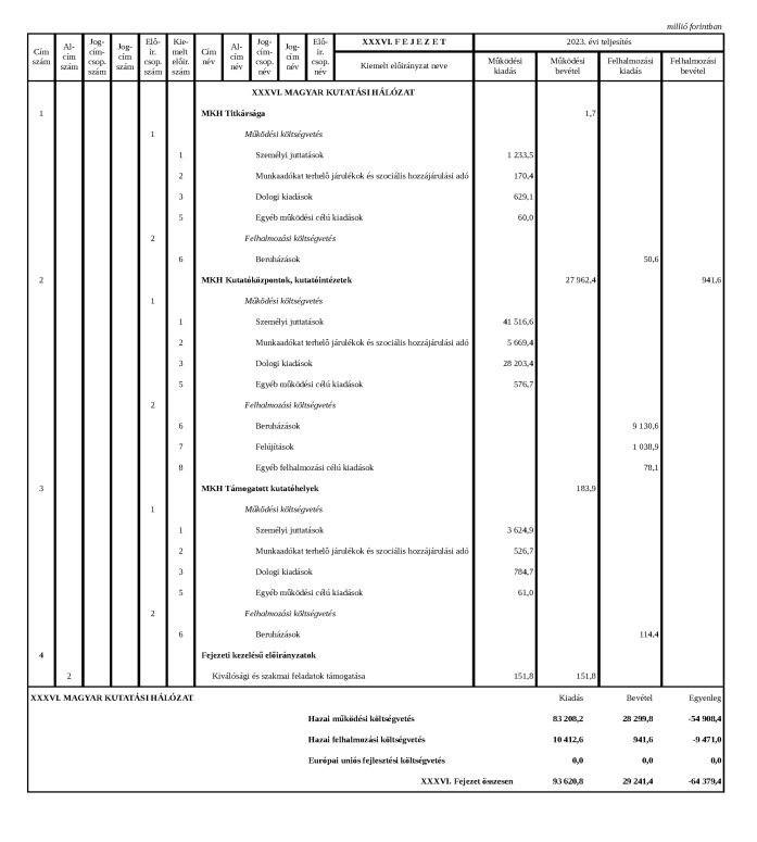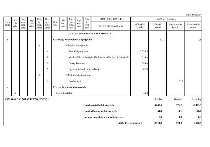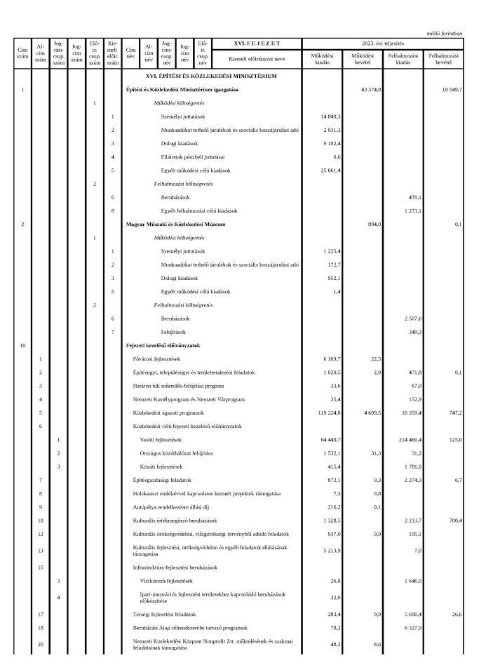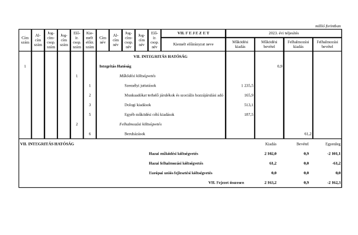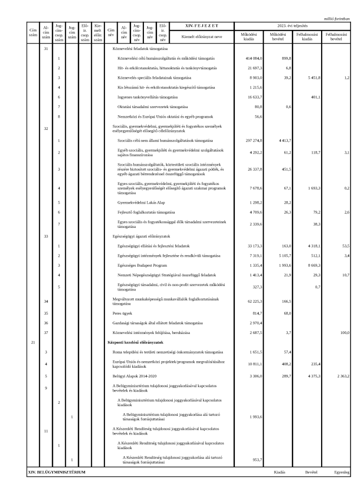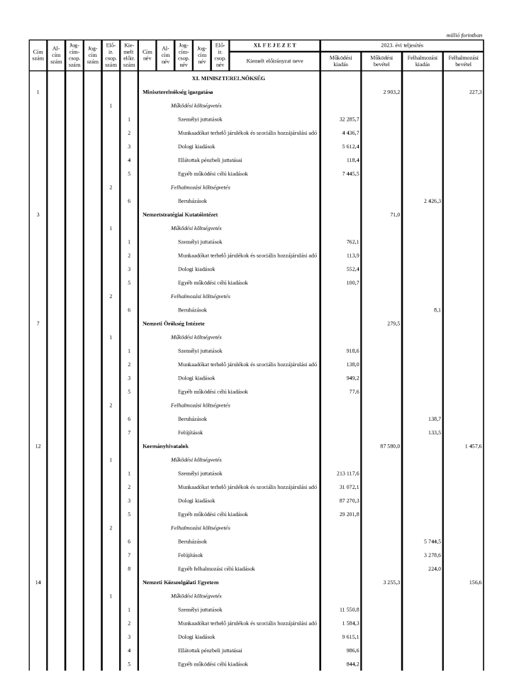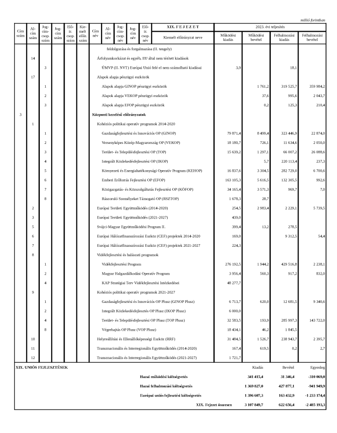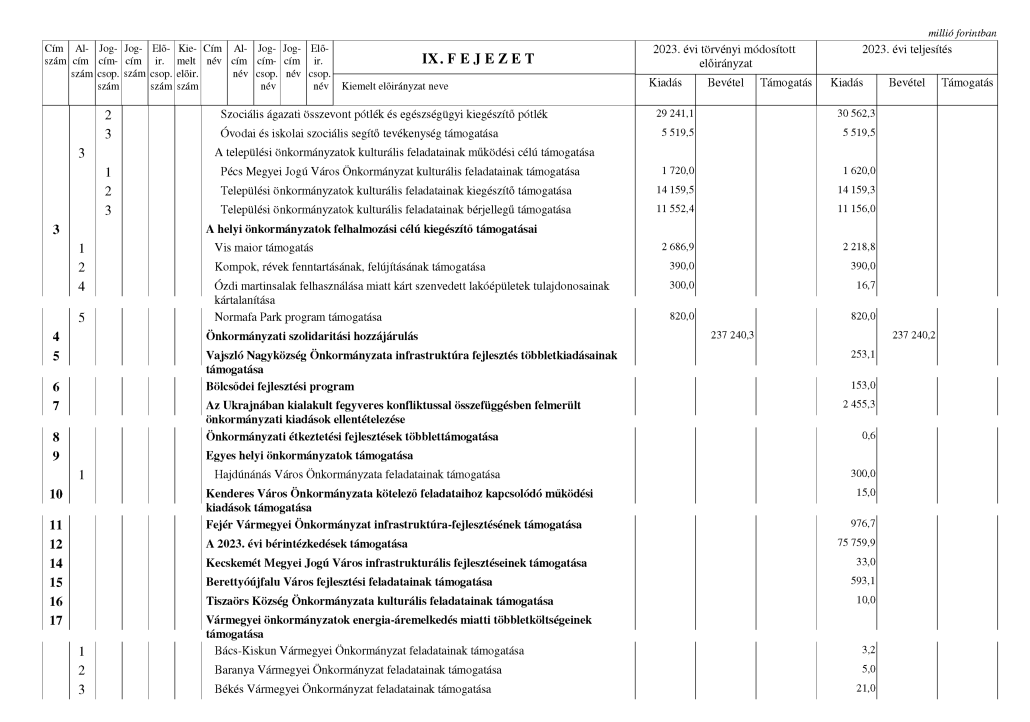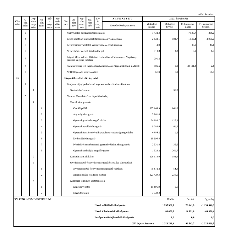 A 2023. ÉVI KÖZPONTI KÖLTSÉGVETÉS VÉGREHAJTÁSA
