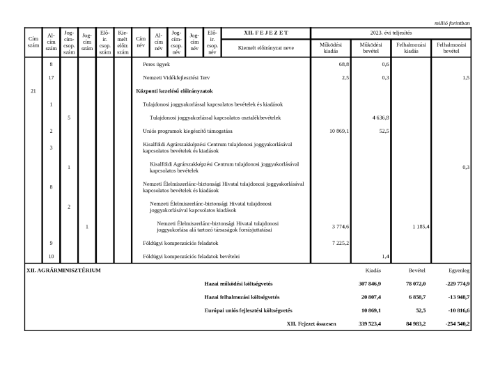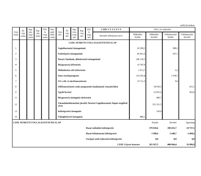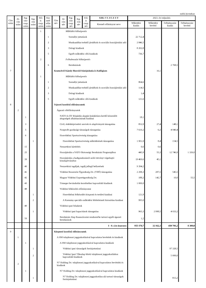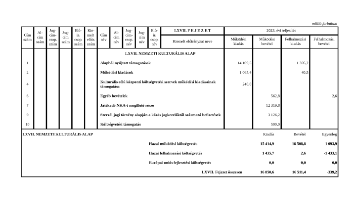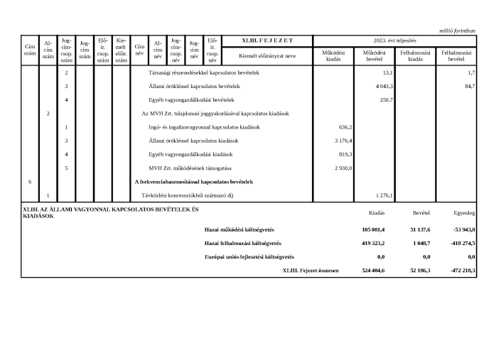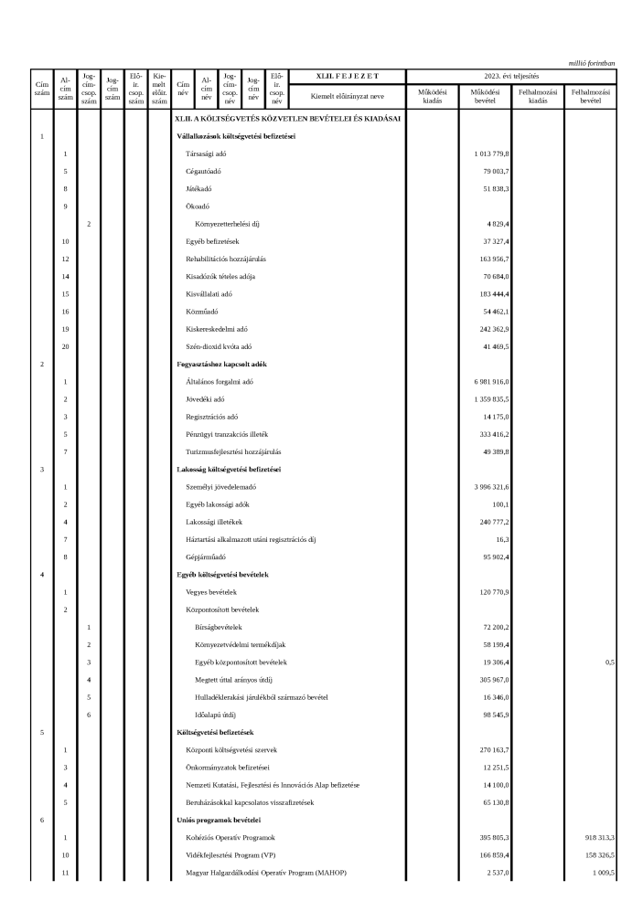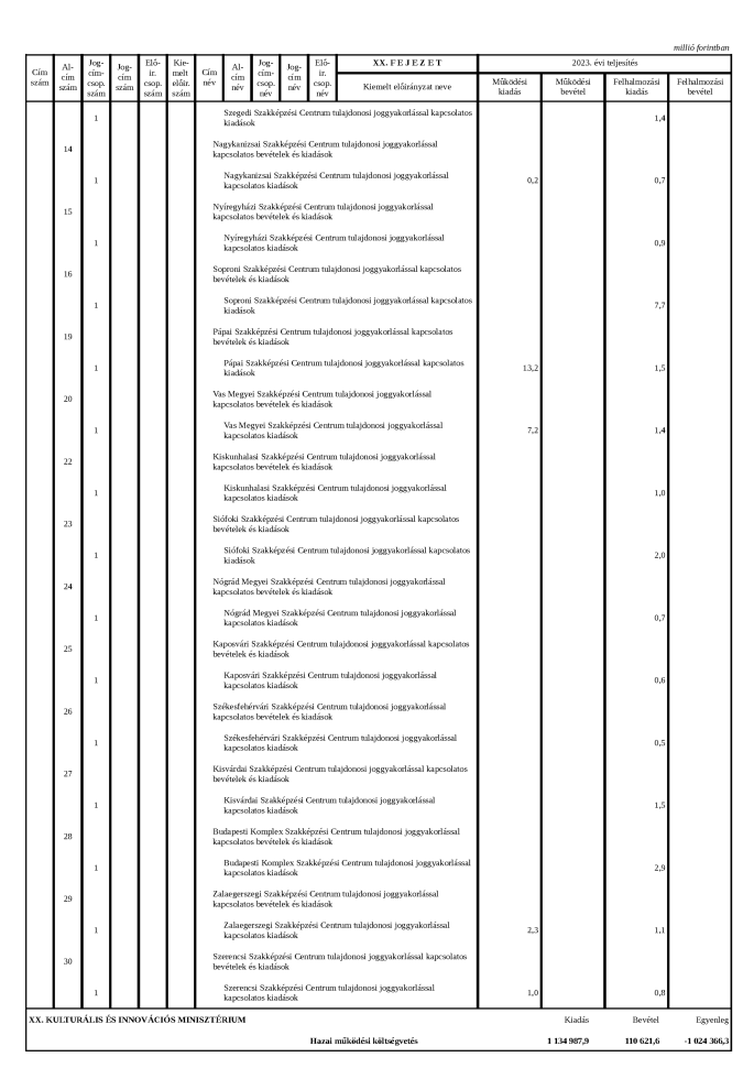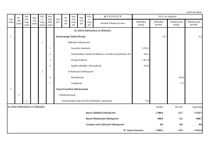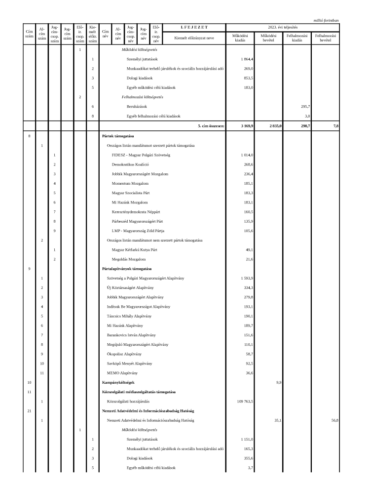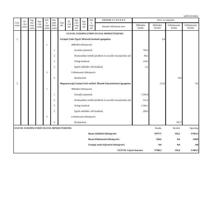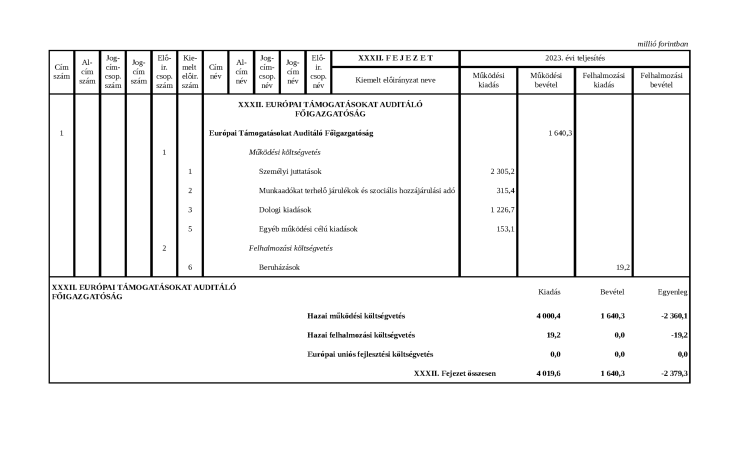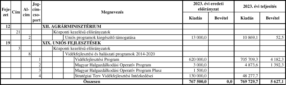 A 2023. ÉVI KÖZPONTI KÖLTSÉGVETÉS VÉGREHAJTÁSA