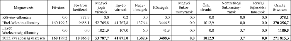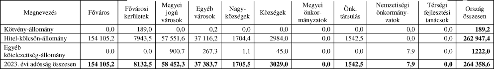 (2) Az Országgyűlés megállapítja, hogy az (1) bekezdés alapján, elszámolási egyenlegként a helyi önkormányzatokat a 2023. év után 134,1 millió forint visszatérítési kötelezettség terheli.