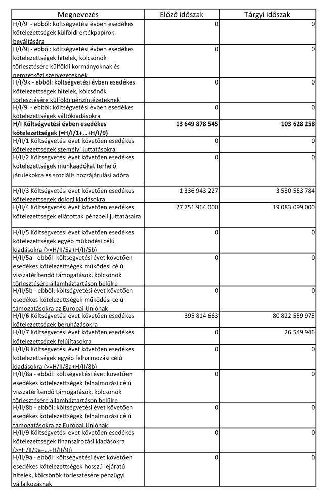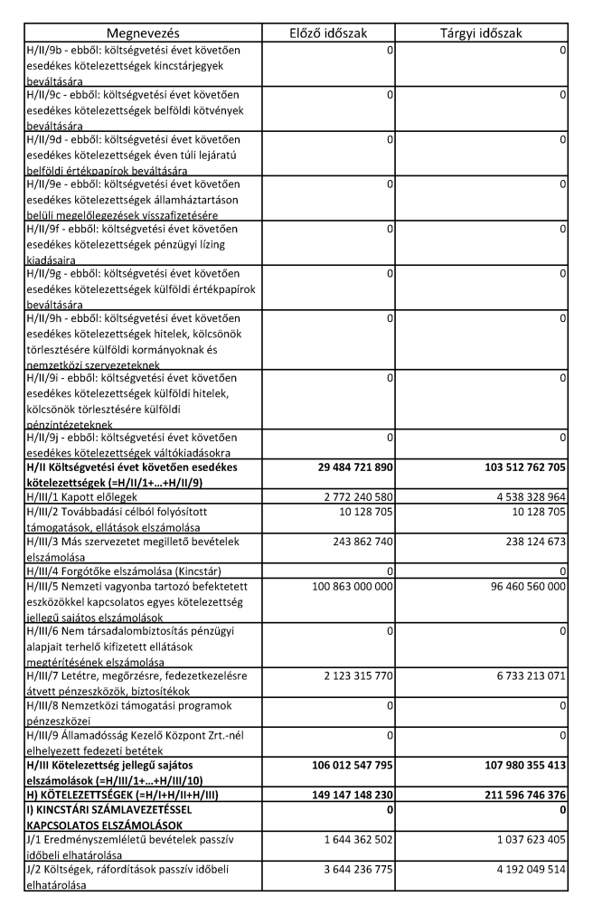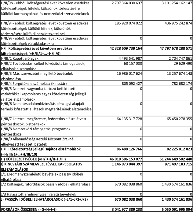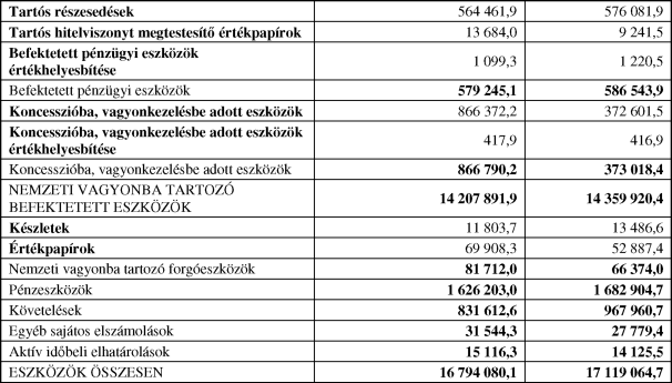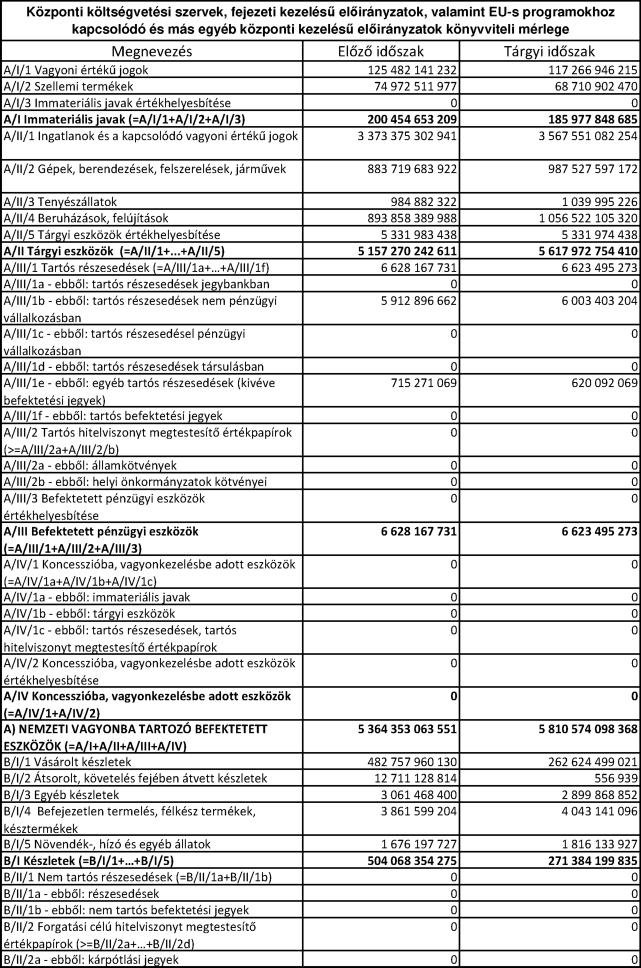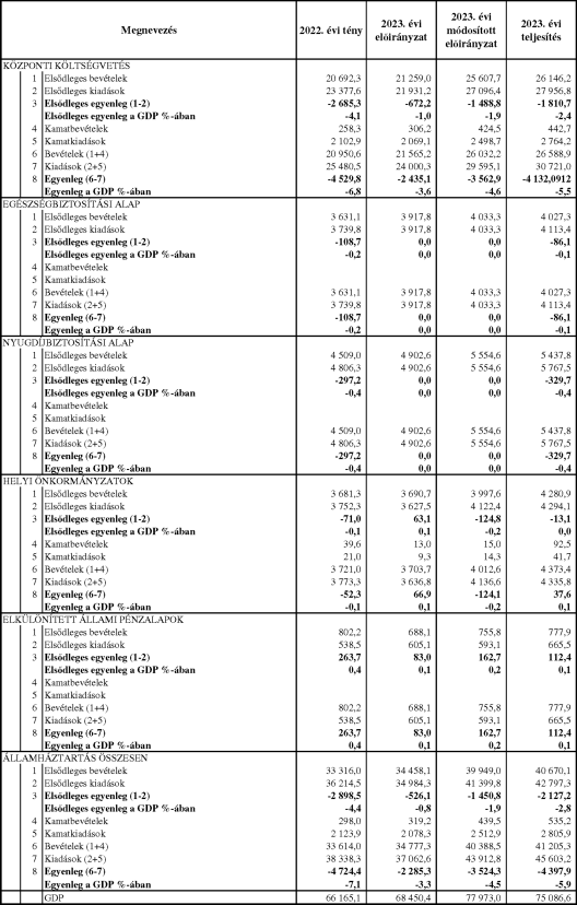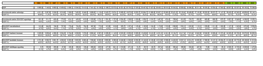 1. A főösszegek, az egyenleg és az államadósság értéke
