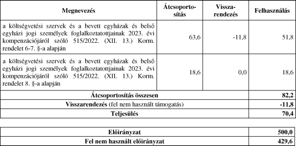 Kimutatás a Rendkívüli kormányzati intézkedések előirányzat 2023. évi felhasználásáról fejezetenként