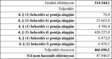 (4) Az Országgyűlés megállapítja, hogy a helyi önkormányzatoknak együttesen - a 2023. december 31-én hatályos Áht. 58. §-a alapján - 4983,9 millió forint visszafizetési kötelezettsége keletkezett, egyúttal a helyi önkormányzatokat együttesen 221,9 millió forint pótlólagos támogatás illeti meg amelyből