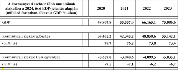 A kormányzati szektor főbb mutatóinak alakulása a 2024. októberi EDP-Jelentés adatai alapján Statisztikai adatszolgáltatás: KSH-MNB-PM