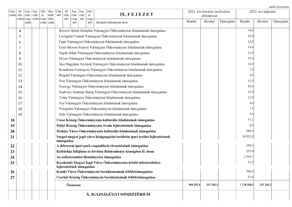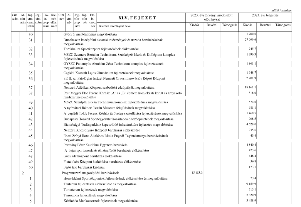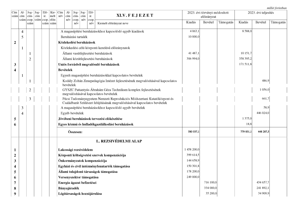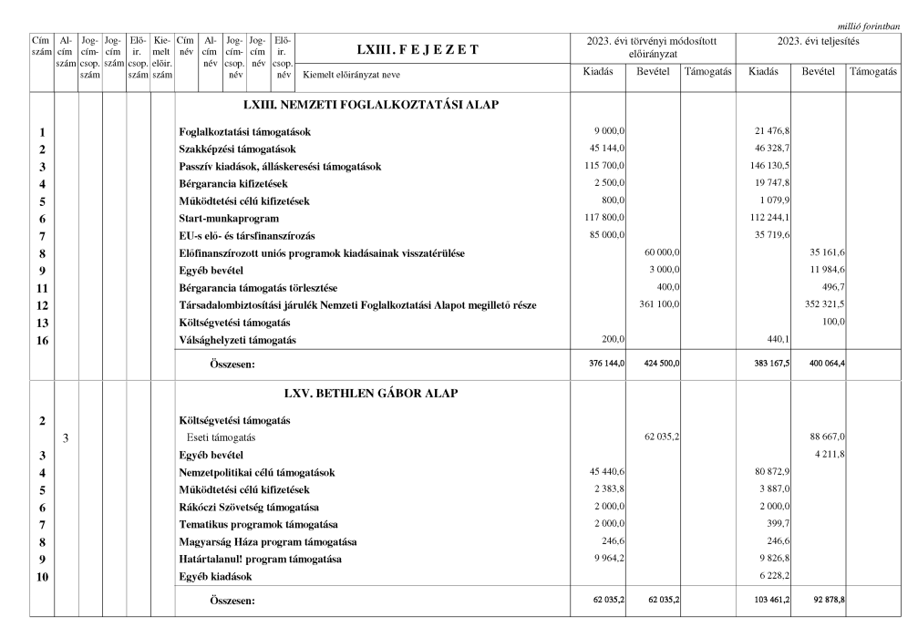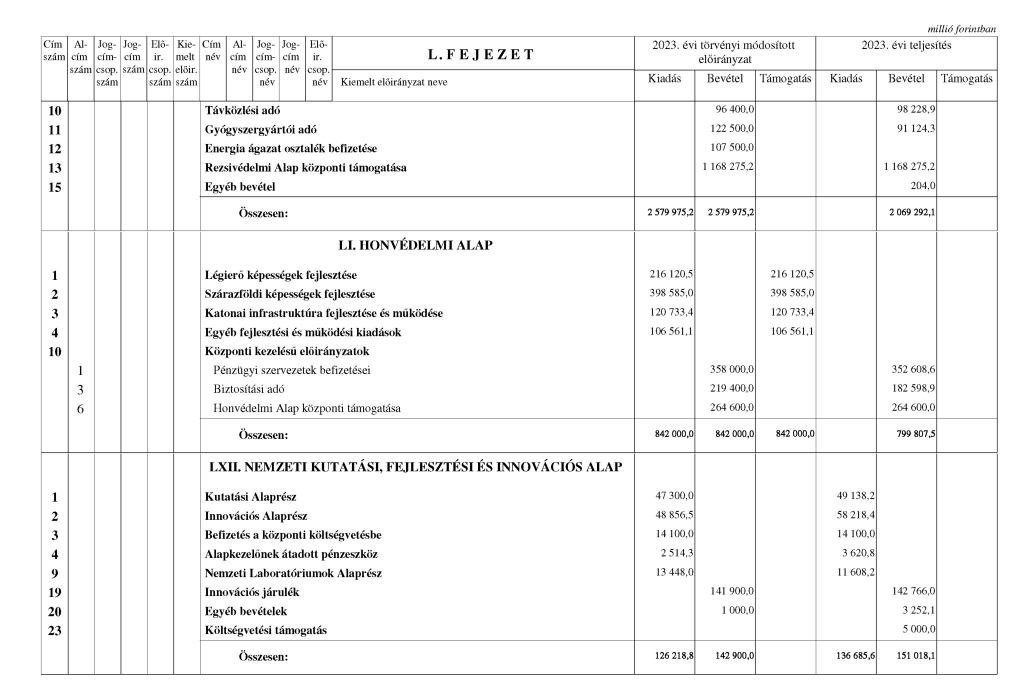 2024. évi XLVIII. törvény a Magyarország 2023. évi központi költségvetéséről szóló 2022. évi XXV. törvény végrehajtásáról