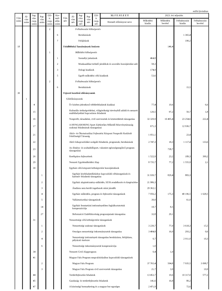 Kimutatás a Megtakarítási Alap előirányzat 2023. évi felhasználásáról fejezetenként